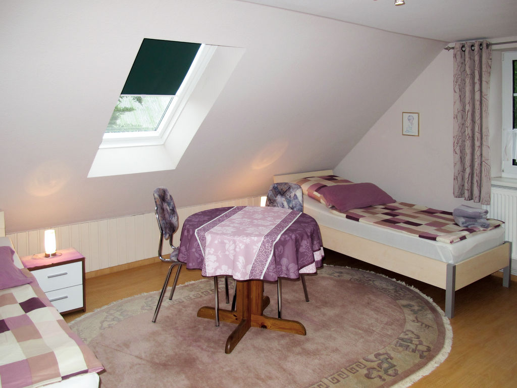 3-Zimmer-Doppelhaushälfte 110 m2 auf 2 Stockwerken. Gemütlich eingerichtet: Wohnzimmer mit Sat-TV, Radio und CD. Ausgang zur Terrasse. Offene Küche (Backofen, Geschirrspüler, 4 Glaskeramikherd Platten, Toaster, Wasserkocher, Mikrowelle, Tiefkühler, elektrische Kaffeemaschine) mit Esstisch. Ausgang zur Terrasse. Dusche/WC. Obergeschoss: 1 abgeschrägtes Zimmer mit 1 Doppelbett. 1 abgeschrägtes Zimmer mit 2 Betten. G-Heizung. Teppichboden. Terrasse, Ostlage, Gartensitzplatz, Südlage. Terrassenmöbel, Gartengrill (mobil), Liegestühle (4). Zur Verfügung: Kinderhochstuhl, Babybett. Internet (Wireless LAN, gratis). Bitte beachten: Nichtraucher-Haus. Rauchmelder, Feuerlöscher.