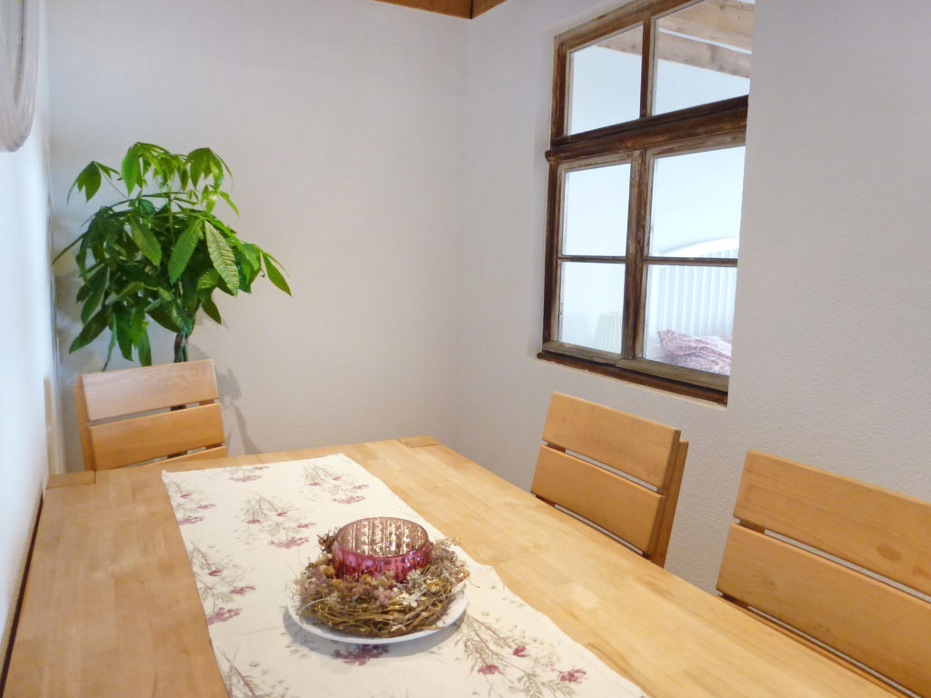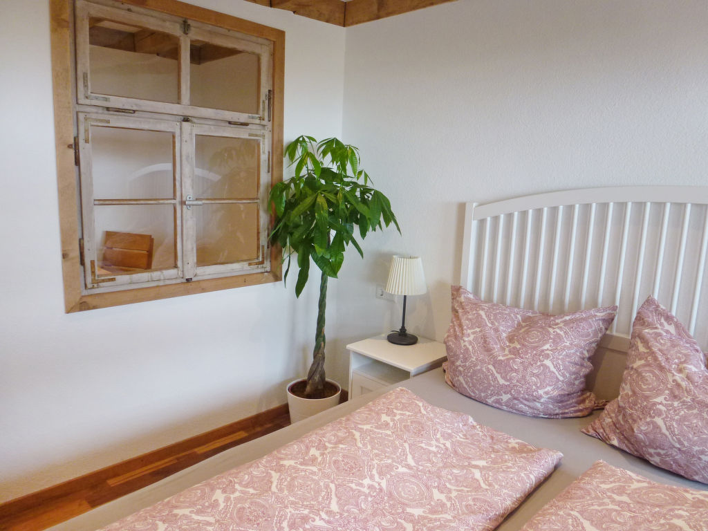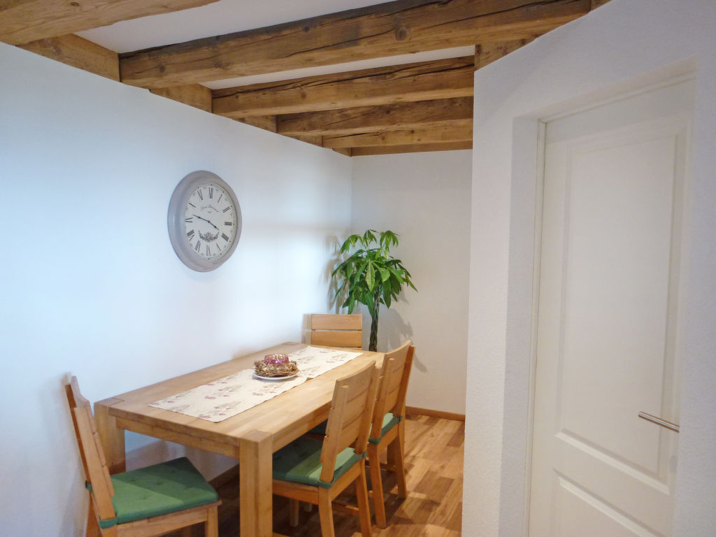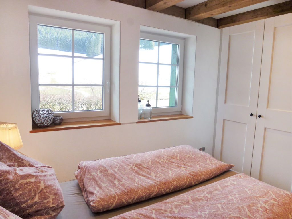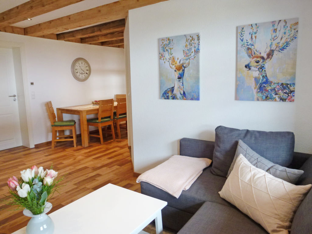 "Wildfang", 2-Zimmer-Wohnung 45 m2 im 2. Stock. Wohn-/Esszimmer mit 1 Diwanbett (140 cm, Länge 210 cm), Sat-TV (Flachbildschirm). 1 Zimmer mit 1 Doppelbett (180 cm, Länge 200 cm). Kochnische (Backofen, 4 Glaskeramikherd Platten, elektrische Kaffeemaschine). Dusche/WC. Fussbodenheizung. Schöne Sicht auf die Landschaft und den Wald. Zur Verfügung: Bügeleisen, Haartrockner. Internet (Wireless LAN, gratis). Parkplatz. Bitte beachten: Nichtraucher-Unterkunft.