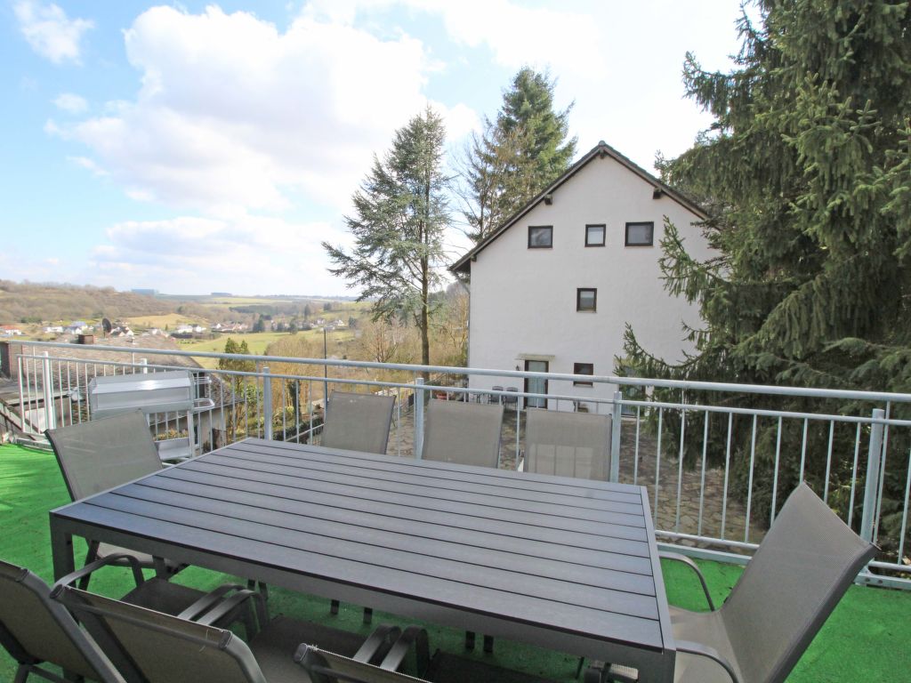 Eine SB Bar befindet sich im Nachbarhaus. Der Freizeitraum / Sauna befindet sich im Haus und steht auch den Gästen aus den anderen zwei Häusern zur Verfügung. Dreifamilienhaus "Eifelnatur (Haus 2)", umgeben von Bäumen und Feldern. Am Ortsrand, 300 m vom Zentrum, ruhige, erhöhte Lage am Hang, 10 m vom Waldrand, in einer Sackgasse, im Grünen. Zur Mitbenutzung: Grundstück 1'350 m2, gepflegter Garten 450 m2 mit Rasen 300 m2, Blumen. Tischtennis, Kinderspielplatz (Rutschbahn, Schaukel, Sandkasten). Im Hause: Sauna (extra). Billard, Tischfussball, Einstellraum für Fahrräder, Zentralheizung, Waschmaschine (zur Mitbenutzung). Wäschewechsel 1 mal wöchentlich. Handtuchwechsel 1 mal wöchentlich. Brötchenservice und Getränkeservice möglich auf Anfrage (extra). Treppenweg (25 Stufen) bis zum Haus. Parkplatz (beschränkte Anzahl) auf dem Grundstück. Lebensmittelgeschäft 5.3 km, Supermarkt 5.3 km, Einkaufszentrum 5 km, Restaurant 150 m, Bar 3.3 km, Bäckerei 5.3 km, Café 3.3 km, Fahrradverleih 10 km, Bushaltestelle "Daun" 10 km, Bahnstation "Gerolstein" 23 km, Freibad 7.6 km, Hallenbad 10 km, Badesee 7.6 km. Golfplatz (18 Loch) 15 km, Tennis 3.5 km, Minigolf 7.8 km, Reitstall 10 km, Wanderwege ab Haus 50 m. Nahe gelegene Sehenswürdigkeiten: Vulkanmaare, Vulkanmuseum, Kreuzweg, Strohner Märchen, Wildpark Daun, Adler- und Wolfspark Kasselburg. Bekannte Seen in der Umgebung sind gut erreichbar: Pulvermaar 1.5 km. Bitte beachten: Fahrzeug empfohlen. Be- und Entladen am Ferienhaus möglich.