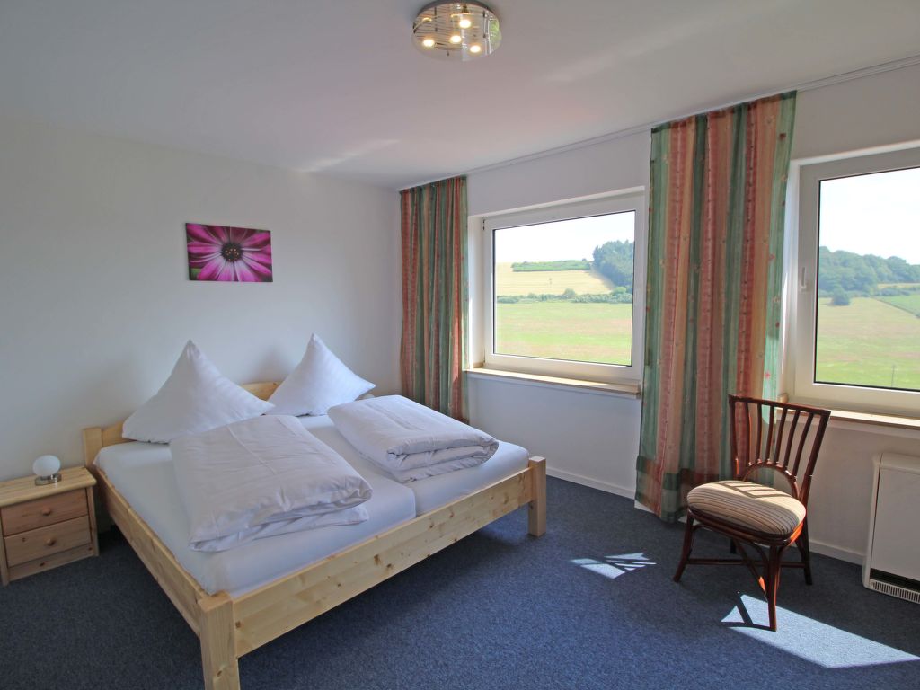 Eine SB Bar befindet sich im Nachbarhaus. Der Freizeitraum / Sauna befindet sich im Nachbarhaus. Doppelhaus "Eifelnatur (Haus 3)", umgeben von Bäumen und Feldern. Am Ortsrand, 300 m vom Zentrum, ruhige, erhöhte Lage am Hang, 50 m vom Waldrand, in einer Sackgasse, im Grünen. Zur Mitbenutzung: Grundstück 500 m2, Garten 200 m2 mit Rasen 50 m2. Im Hause: Zentralheizung. Wäschewechsel 1 mal wöchentlich. Handtuchwechsel 1 mal wöchentlich. Brötchenservice und Getränkeservice möglich auf Anfrage (extra). Parkplatz (beschränkte Anzahl) auf dem Grundstück. Lebensmittelgeschäft 5.3 km, Supermarkt 5.3 km, Einkaufszentrum 5 km, Restaurant 150 m, Bar 3.3 km, Bäckerei 5.3 km, Café 3.3 km, Fahrradverleih 10 km, Bushaltestelle "Daun" 10 km, Bahnstation "Gerolstein" 23 km, Freibad 7.6 km, Hallenbad 10 km, Badesee 7.6 km. Golfplatz (18 Loch) 15 km, Tennis 3.5 km, Minigolf 7.8 km, Reitstall 10 km, Wanderwege ab Haus 50 m. Nahe gelegene Sehenswürdigkeiten: Vulkanmaare, Vulkanmuseum, Kreuzweg, Strohner Märchen, Wildpark Daun, Adler- und Wolfspark Kasselburg. Bekannte Seen in der Umgebung sind gut erreichbar: Pulvermaar 1.5 km. Bitte beachten: Fahrzeug empfohlen. Der Besitzer wohnt im selben Haus.