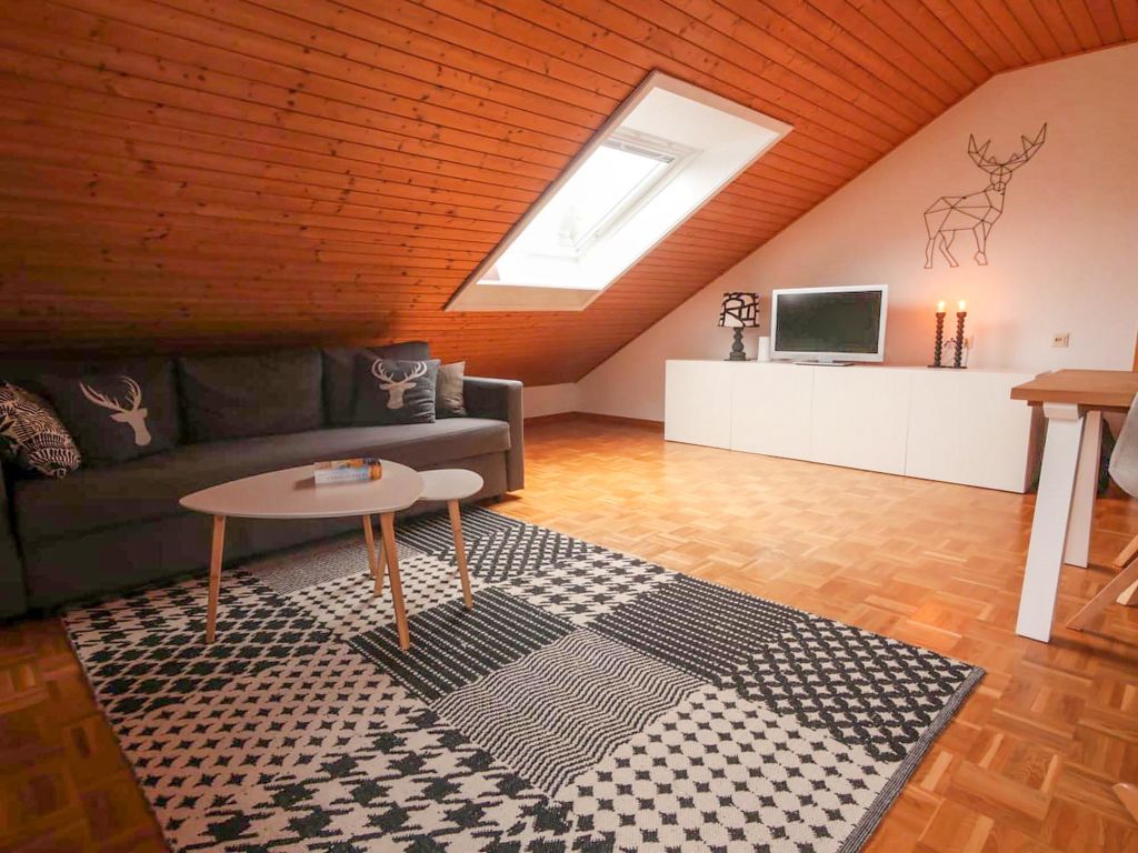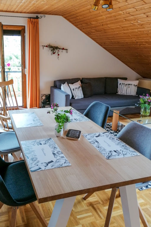 3-Zimmer-Wohnung 85 m2, im Dachgeschoss. Teilweise abgeschrägt: grosses Wohnzimmer mit Sat-TV (Flachbildschirm), Radio und CD. Ausgang zum Balkon. Esszimmer. Ausgang zum Balkon. 1 Zimmer mit 1 Doppelbett (2 x 100 cm, Länge 200 cm). Küche (Backofen, Geschirrspüler, 4 Glaskeramikherd Platten, elektrische Kaffeemaschine). Dusche, sep. WC. Balkon 12 m2. Balkonmöbel. Zur Verfügung: Waschmaschine, Wäschetrockner, Bügeleisen, Haartrockner. Internet (Wireless LAN, gratis). Bitte beachten: Nichtraucher-Unterkunft. Bei Reservierung der Zusatzbetten steht ein Doppeldiwanbett (200 cm, Länge 200 cm) im Wohnzimmer zur Verfügung.