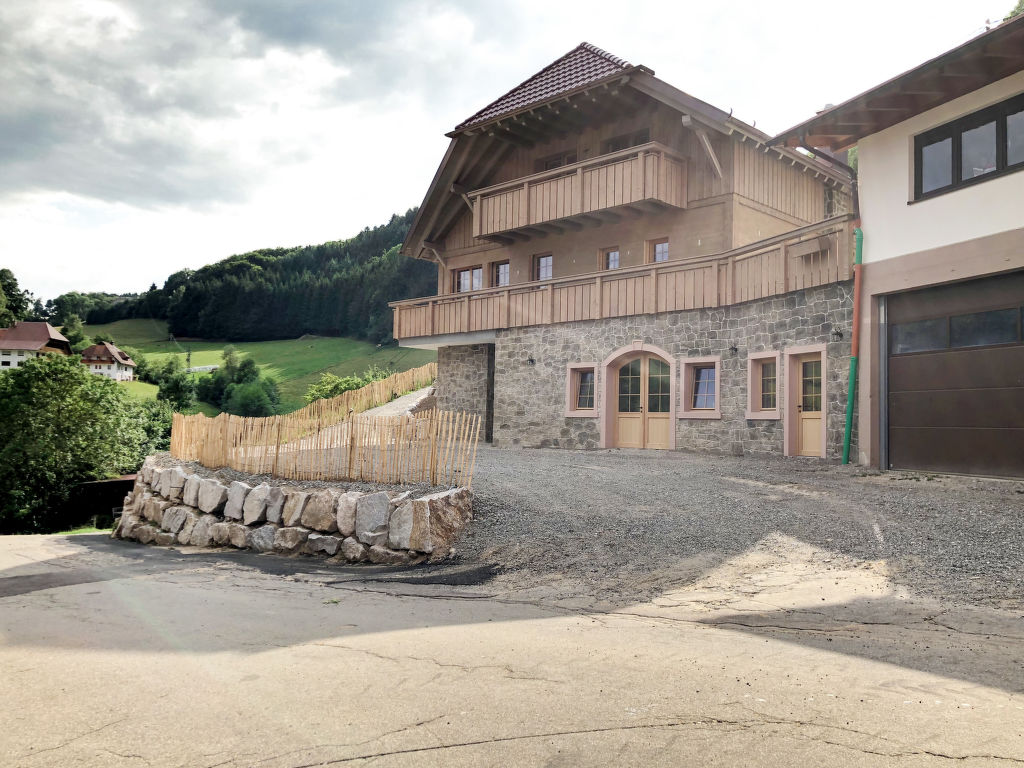 Zweifamilienhaus "Schmalzenhof", 500 m.ü.M., auf 3 Stockwerken. 3 km vom Zentrum von Hofstetten, 5 km vom Zentrum von Haslach, 40 km vom Zentrum von Freiburg. Treppenweg (16 Stufen) bis zum Haus. Supermarkt 5 km, Freibad 3 km, Hallenbad 11 km. Golfplatz 15 km. Bitte beachten: Fahrzeug empfohlen. Ab Hof Verkauf von bäuerlichen Produkten. Der Besitzer wohnt auf dem gleichen Grundstück. Eigentümer hat einen Hund. Tiere in der Umgebung. Die Vermieter halten Pferde und Rinder. In der mittleren Etage des Hauses gibt es eine Vesperstube (kein öffentlicher Betrieb, nur auf Anmeldung).