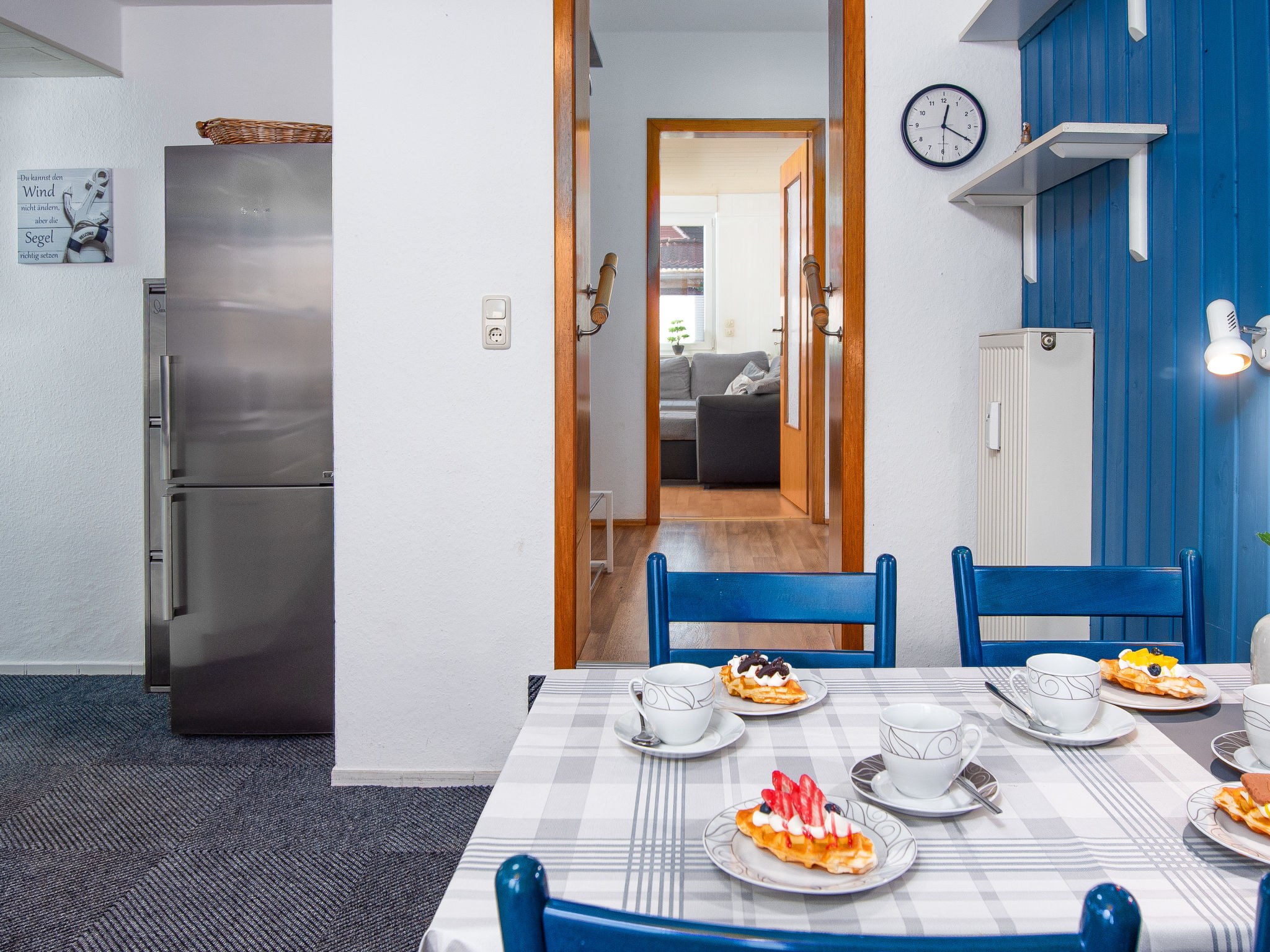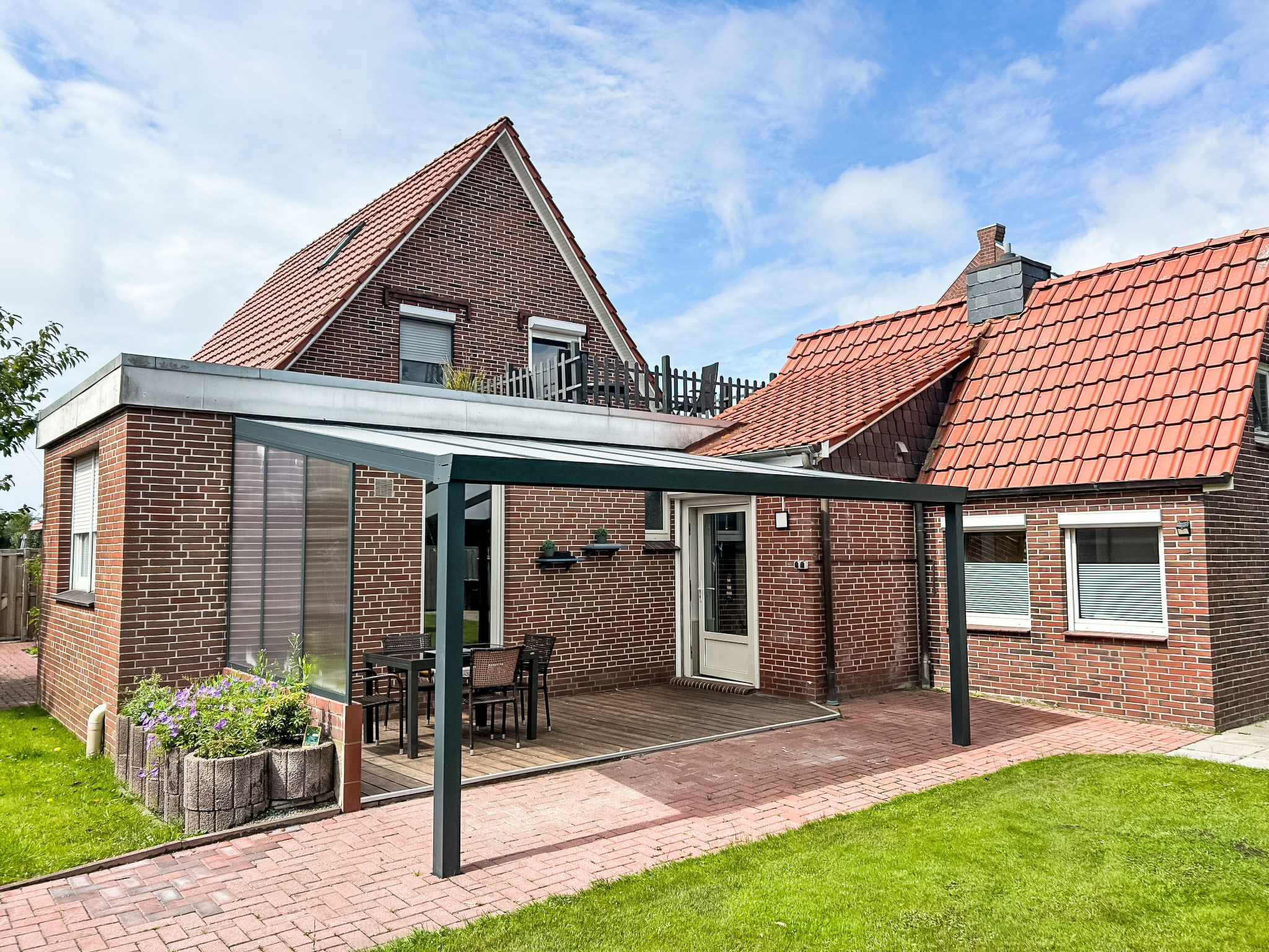 Dreifamilienhaus "Stark". Im Ort, 1 km vom Zentrum, 500 m vom Meer, 1 km vom Strand. Im Hause: Einstellraum für Fahrräder, Zentralheizung. Parkplatz beim Haus. Supermarkt 1.2 km, Restaurant 800 m, Bäckerei 600 m, Café 800 m, Bushaltestelle 1 km, Bahnstation 260 m, Sandstrand 1 km, Freibad 14 km, Hallenbad 2 km. Golfplatz (9 Loch) 8 km, Surfschule 1 km, Tennis 3 km. Bitte beachten: Eisenbahnlinie 10 m vom Haus.