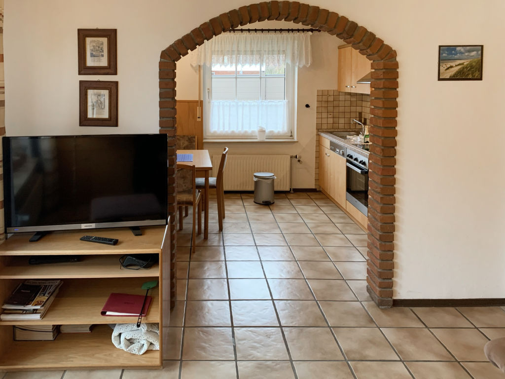 Mehrfamilienhaus "Huus in't Dreih". Im Ort, 500 m vom Zentrum, ruhige Lage, 1.4 km vom Meer, 1.4 km vom Strand. Im Hause: Zentralheizung. Parkplatz beim Haus. Supermarkt 1.2 km, Restaurant, Bäckerei 800 m, Bushaltestelle 500 m, Bahnstation 2 km, Fähre 2 km, Sandstrand 1.4 km, Freibad 14 km, Hallenbad 800 m. Golfplatz (9 Loch) 8 km, Surfschule 1.3 km, Minigolf 800 m.