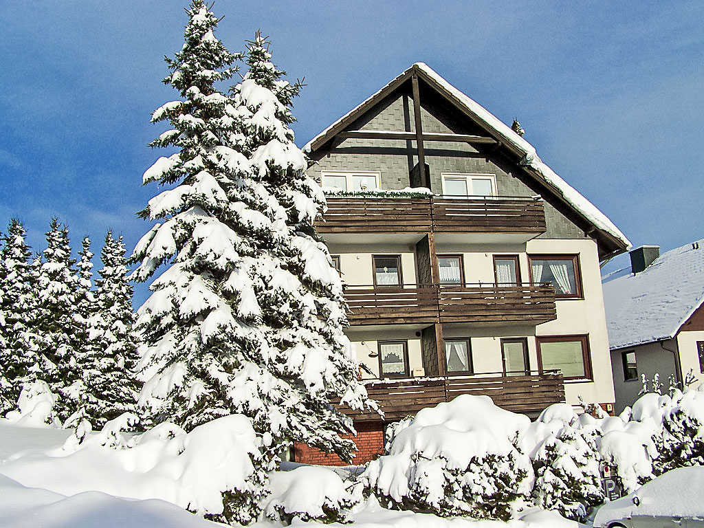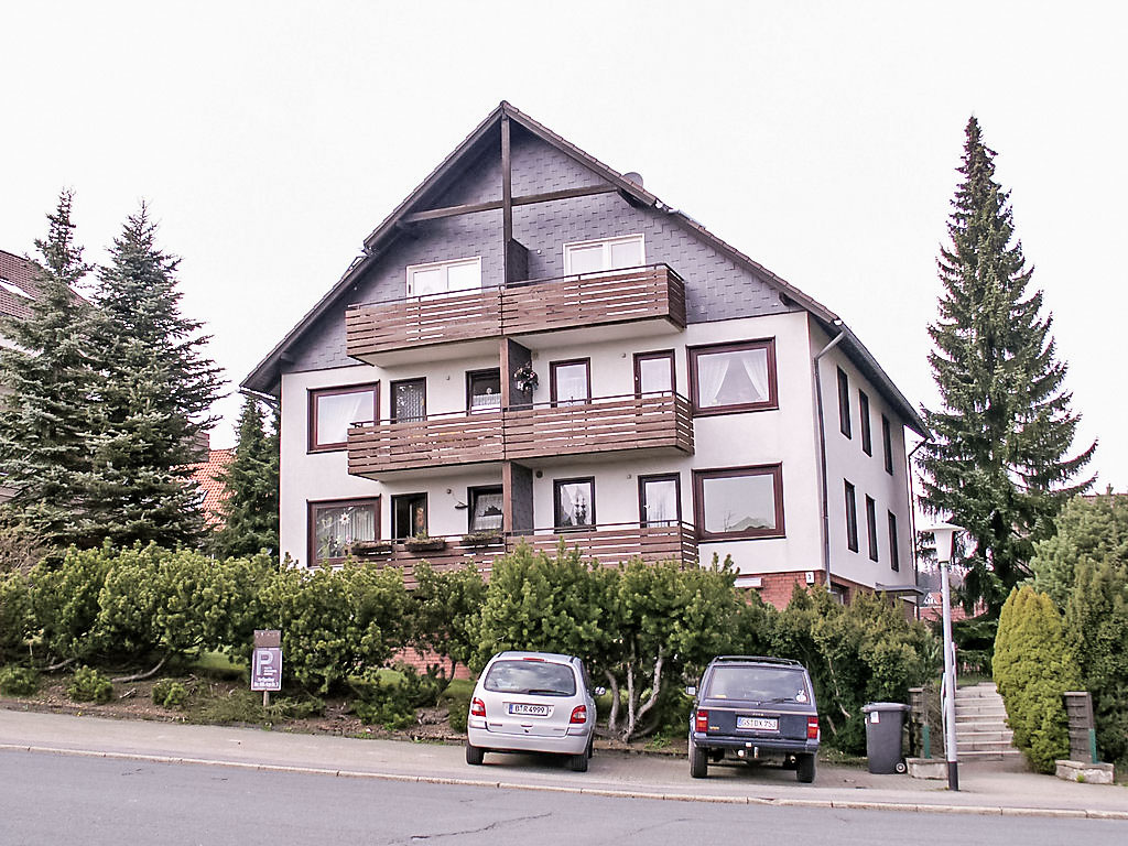 Appartementhaus. 200 m vom Zentrum von Braunlage, sonnige Lage am Hang, in einem Wohnquartier. Im Hause: Zentralheizung. Parkplatz beim Haus. Einkaufsgeschäft 200 m, Lebensmittelgeschäft, Supermarkt 500 m, Restaurant, Bushaltestelle 200 m, Bahnstation "Bad Harzburg" 23 km, Freibad 12 km, Hallenbad 1 km, Thermalbad 23 km. Bergbahn 700 m, Skilift 1 km, Langlaufloipe 500 m.