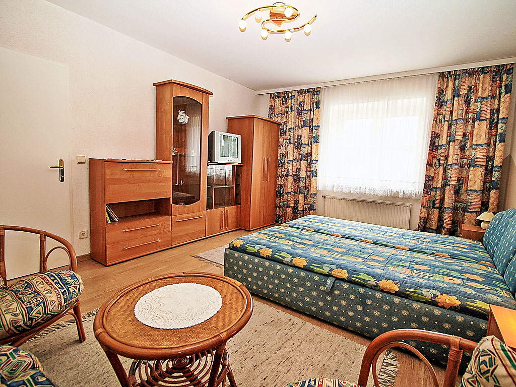 3-Zimmer-Doppelhaushälfte 100 m2. Geräumig und hell, gemütlich eingerichtet: Wohnzimmer mit 1 Doppeldiwanbett, Sat-TV, Flachbildschirm und Stereoanlage. 1 Doppelzimmer mit Sat-TV und Flachbildschirm. 1 Doppelzimmer. Küche (Backofen, Geschirrspüler, 4 Glaskeramikherd Platten, Mikrowelle) mit Esstisch. Ausgang zum Garten. Bad/Dusche, sep. WC, Whirlbadewanne. Gartensitzplatz. Abstellkammer. Zur Verfügung: Waschmaschine. Internet (Wireless LAN, gratis). 1 Haustier/Hund erlaubt.