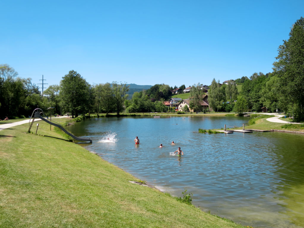 Kinderfreundliches Feriendorf "Am Hohen Bogen". Im Ortsteil Kummersdorf, ausserhalb des Ortes, 3 km vom Zentrum von Arrach, ruhige Lage am Hang, verkehrsberuhigte Zone, 300 m vom Waldrand, 100 m vom See, 9 km vom Skigebiet. Zur Mitbenutzung: Volleyball, Kinderspielplatz (Rutschbahn, Schaukel, Sandkasten). In der Anlage: Empfang, Tischtennis (extra). Einstellraum für Fahrräder, Zentralheizung. Parkplatz beim Haus. Einkaufsgeschäft 3 km, Lebensmittelgeschäft 3 km, Supermarkt 3 km, Bäckerei 3 km, Bahnstation "Hohenwarth" 1.5 km, Freibad 10 km, Thermalbad 10 km. Golfplatz (9 Loch) 6 km, Tennis 6 km, Reitstall 800 m, Sessellift 9 km, Skisportanlagen 9 km, Skipisten 9 km, Skiverleih 11 km, Skischule 9 km, Langlaufloipe 11 km. Nahe gelegene Sehenswürdigkeiten: Bayerwald-Tierpark Lohberg 15 km, Spielbank Bad Kötzting, Hochseilpark Lam, Fun-Park Neukirchen, Tiergarten Straubing, Pullman-City. Bekannte Skigebiete sind gut erreichbar: Eck 6 km, Am Hohen Bogen 9 km, Arber 29 km. Wandergebiete: Arberregion. Bitte beachten: Fahrzeug empfohlen. Angeln (mit Bewilligung) (extra). Bootfahren, Angeln 500 m. Das Feriendorf besteht aus einem Appartementhaus mit sowie zweigeschossigen Ferienhäusern mit gemeinschaftlichen Rasen- und Spielflächen. Die Entfernung der einzelnen Häuser zum Naturbadesee beträgt 50 - 400 m.