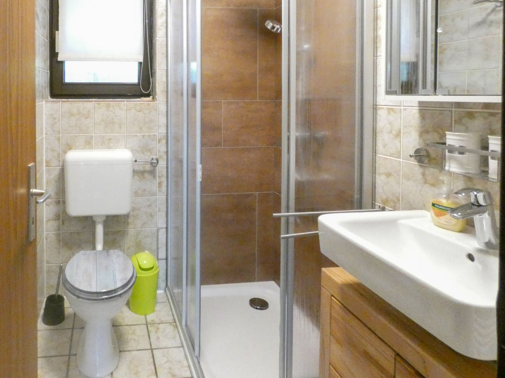 5-Zimmer-Wohnung 113 m2 auf 2 Stockwerken. Schön und gemütlich eingerichtet: Wohn-/Esszimmer 18 m2 mit Esstisch und Sat-TV (Flachbildschirm). 1 Doppelzimmer. Kochnische (4 Kochplatten, Backofen, Geschirrspüler, Toaster, Wasserkocher, Mikrowelle, elektrische Kaffeemaschine). Dusche/WC. Obergeschoss: (Aussentreppe) Wohnzimmer mit Sat-TV (Flachbildschirm). Ausgang zum Balkon. 1 Doppelzimmer. 1 Zimmer mit 2 Betten. Offene Küche (4 Kochplatten, Backofen, Geschirrspüler, Toaster, Wasserkocher, Mikrowelle, elektrische Kaffeemaschine) mit Esstisch. Bad/WC. G-Heizung. Balkon 10 m2, Südlage, Terrasse 10 m2 teilweise überdacht. Terrassenmöbel, Balkonmöbel, Gartengrill (mobil), Liegestühle (2). Schöne Sicht auf die Berge. Zur Verfügung: Internet (Wireless LAN, gratis). Bitte beachten: Nichtraucher-Unterkunft. Eigener Eingang, Rauchmelder. Keine interne Verbindung zwischen den Etagen. Die Ferienwohnung ist die Kombination der beiden Wohnungen DE8491.200.18 und DE8491.200.41 (das Obergeschoss ist nur über eine Aussentreppe erreichbar, der Balkon ist teilweise überdacht). See 100 m.