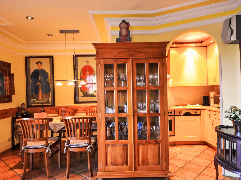 Reihenhaus. Am Ortsrand, 500 m vom Meer, 2 km vom Strand. Zur Mitbenutzung: Sitzplatz, Feuerstelle. Im Hause: Zentralheizung, Fahrräder vorhanden (extra). Parkplatz beim Haus. Lebensmittelgeschäft 800 m, Restaurant, Bushaltestelle 500 m, Bahnstation 20 km, Sandstrand 2 km, Freibad 13 km, Hallenbad 13 km, Badebucht 2 km. Golfplatz 30 km, Reitstall 5 km. Alle sieben reetgedeckten Reihenhäuser sind hochwertig ausgestattet und die Inneneinrichtung ist bis ins Detail abgestimmt. Jedes Haus verfügt über einen mindestens 109 cm grossen TV-Bildschirm im Wohn-/Esszimmer und über ein zweites Sat-TV (72 cm) in einem der Schlafzimmer. Holzkohle- und Gasgrill aus Brandschutzgründen am Haus nicht erlaubt, nur Elektrogrill möglich.