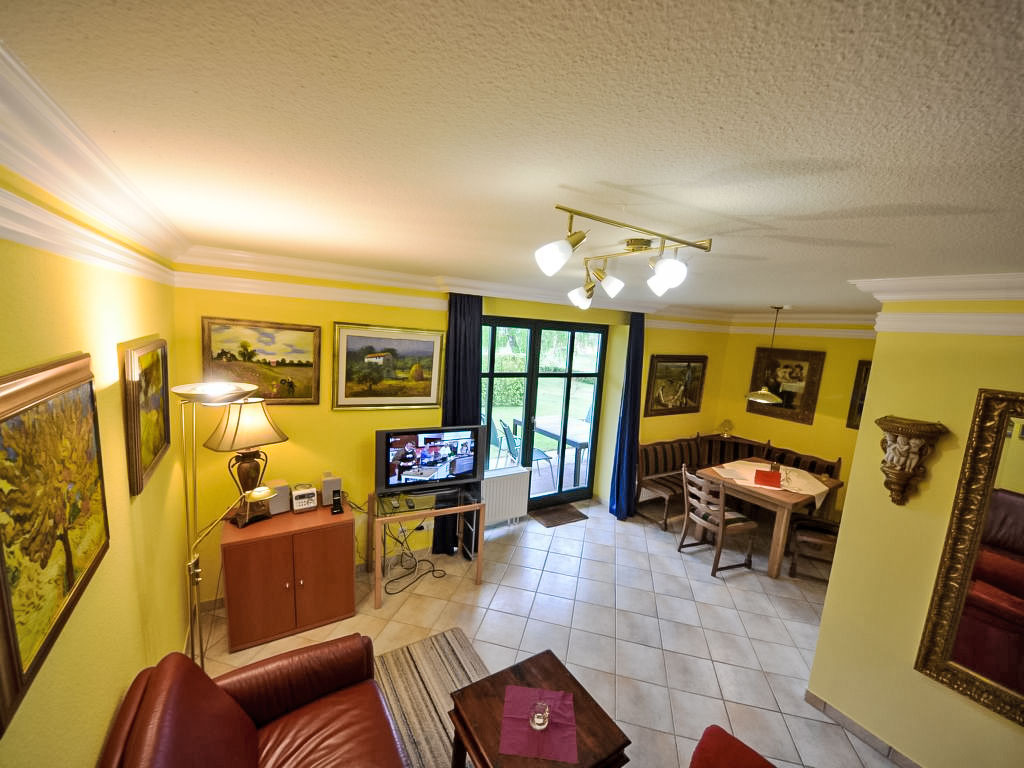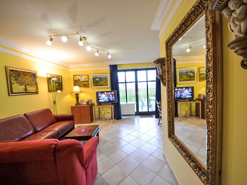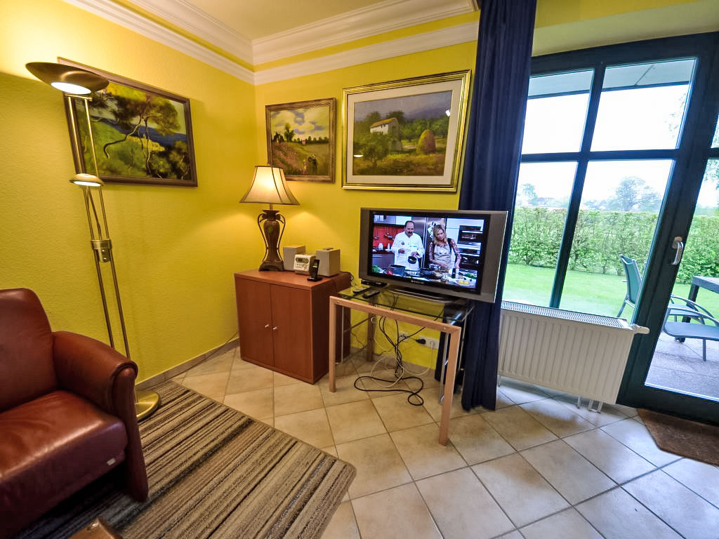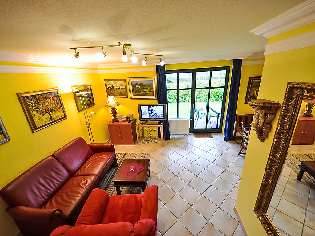 "Hiddensee", 2-Zimmer-Wohnung 59 m2, im Erdgeschoss. Geschmackvoll eingerichtet: Wohn-/Schlafzimmer mit 1 Doppelwandschrankbett, Sat-TV und Stereoanlage. Ausgang zur Terrasse. 1 Doppelzimmer. Offene Küche (Backofen, Geschirrspüler, Mikrowelle, Tiefkühler, elektrische Kaffeemaschine). Dusche/WC. Terrasse teilweise überdacht. Terrassenmöbel, Abstellkammer. Zur Verfügung: Waschmaschine, Wäschetrockner, Telefon, Babybett. Internet (Wireless LAN, gratis). Bitte beachten: Nichtraucher-Unterkunft. Maximal 1 Haustier/Hund erlaubt. 1 kostenloser PKW-Stellplatz vorhanden. Die hinzubuchbaren zwei Extrabetten sind ein Doppelwandschrankbett im Wohnzimmer.