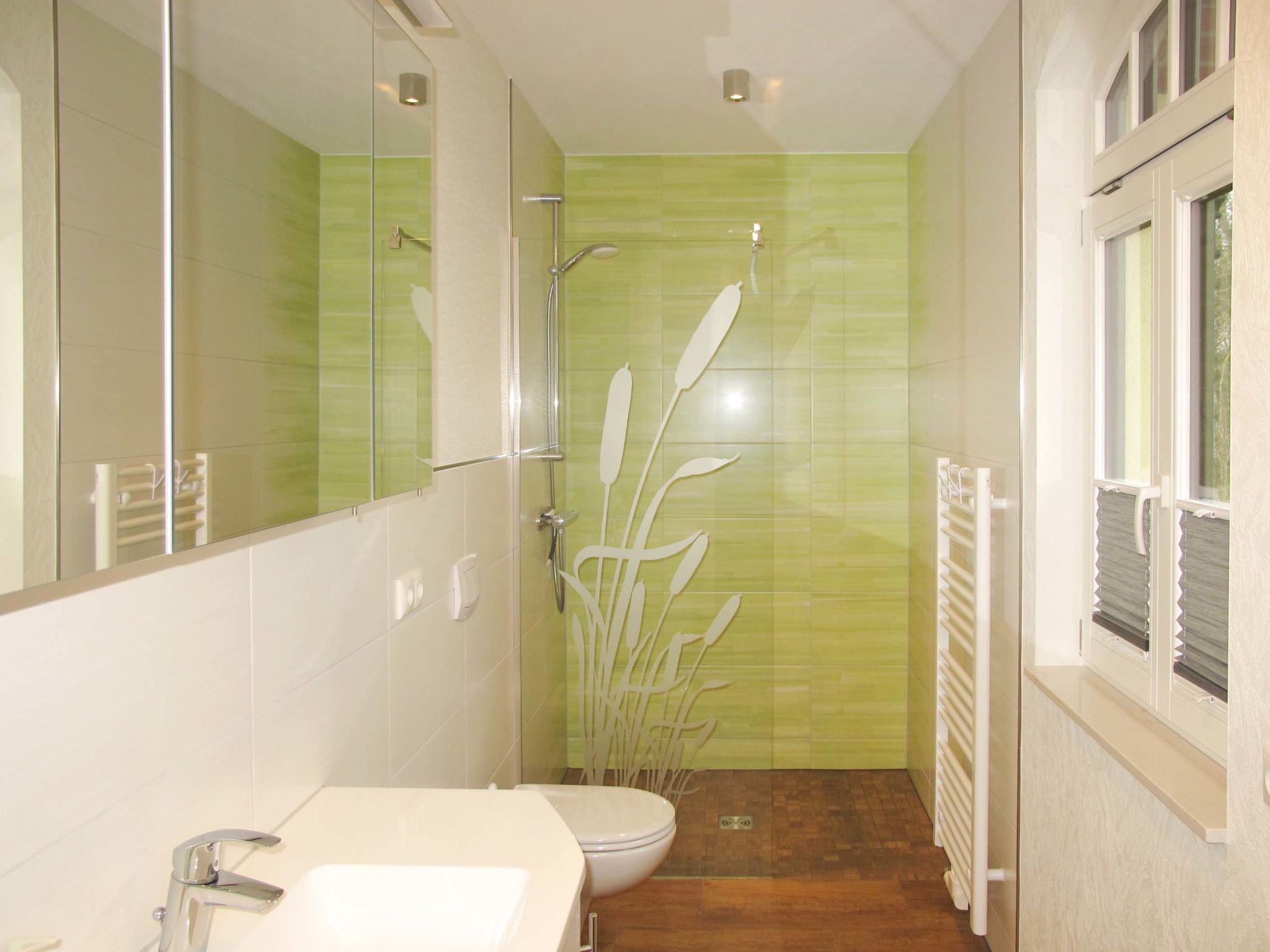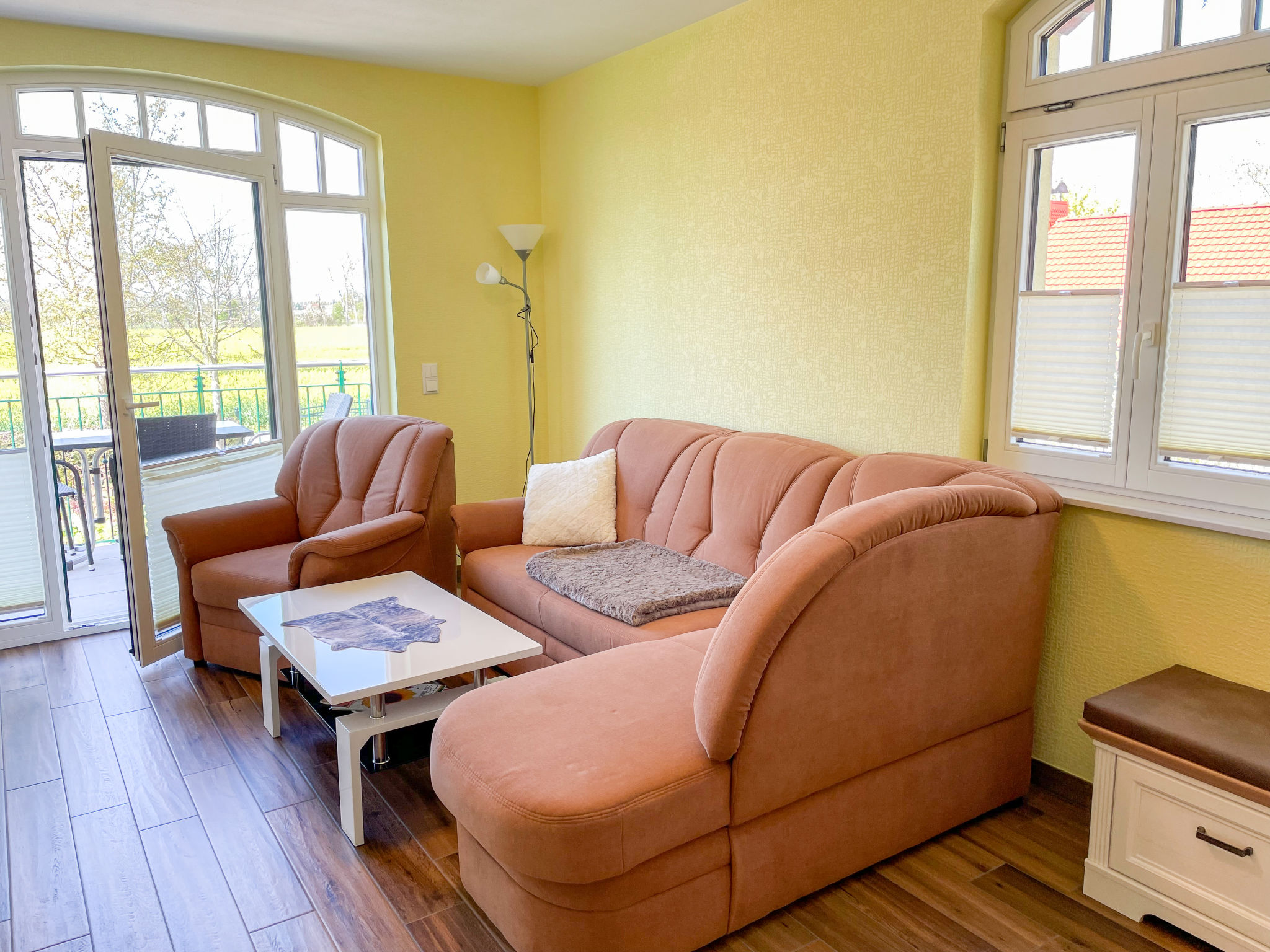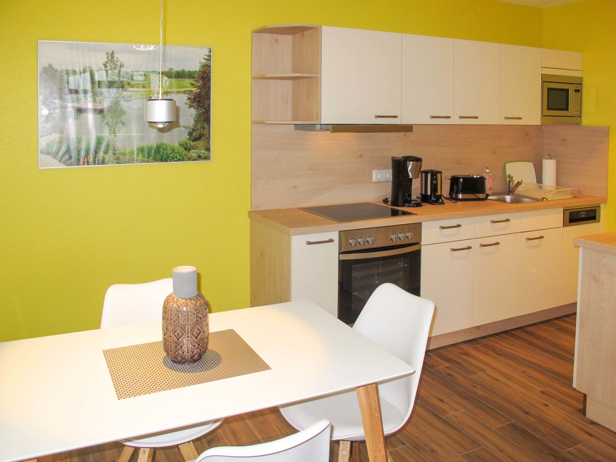 2-Zimmer-Wohnung 50 m2, im Obergeschoss. Objekt geeignet für 2 Erwachsene + 1 Kind. Modern und geschmackvoll eingerichtet: Wohn-/Schlafzimmer mit 1 Diwanbett, Esstisch und Sat-TV (Flachbildschirm), Radio. Ausgang zum Balkon. 1 Doppelzimmer. Kochnische (Geschirrspüler, 4 Glaskeramikherd Platten, Toaster, Wasserkocher, Mikrowelle, Tiefkühler, elektrische Kaffeemaschine). Dusche/WC. Fussbodenheizung. Balkon 5 m2. Balkonmöbel, Gartengrill (mobil). Zur Verfügung: Internet (Wireless LAN, gratis). Bitte beachten: Nichtraucher-Unterkunft. Rauchmelder.