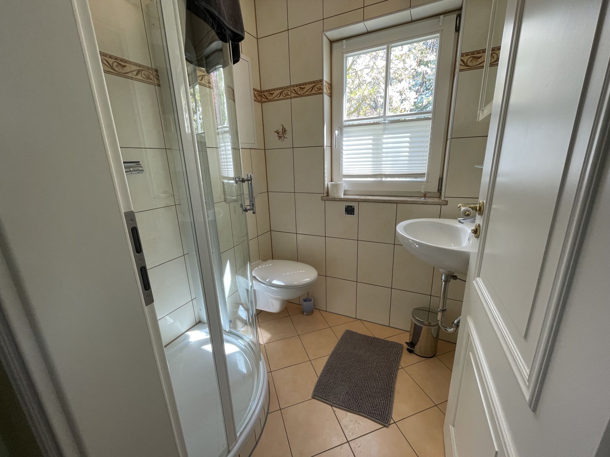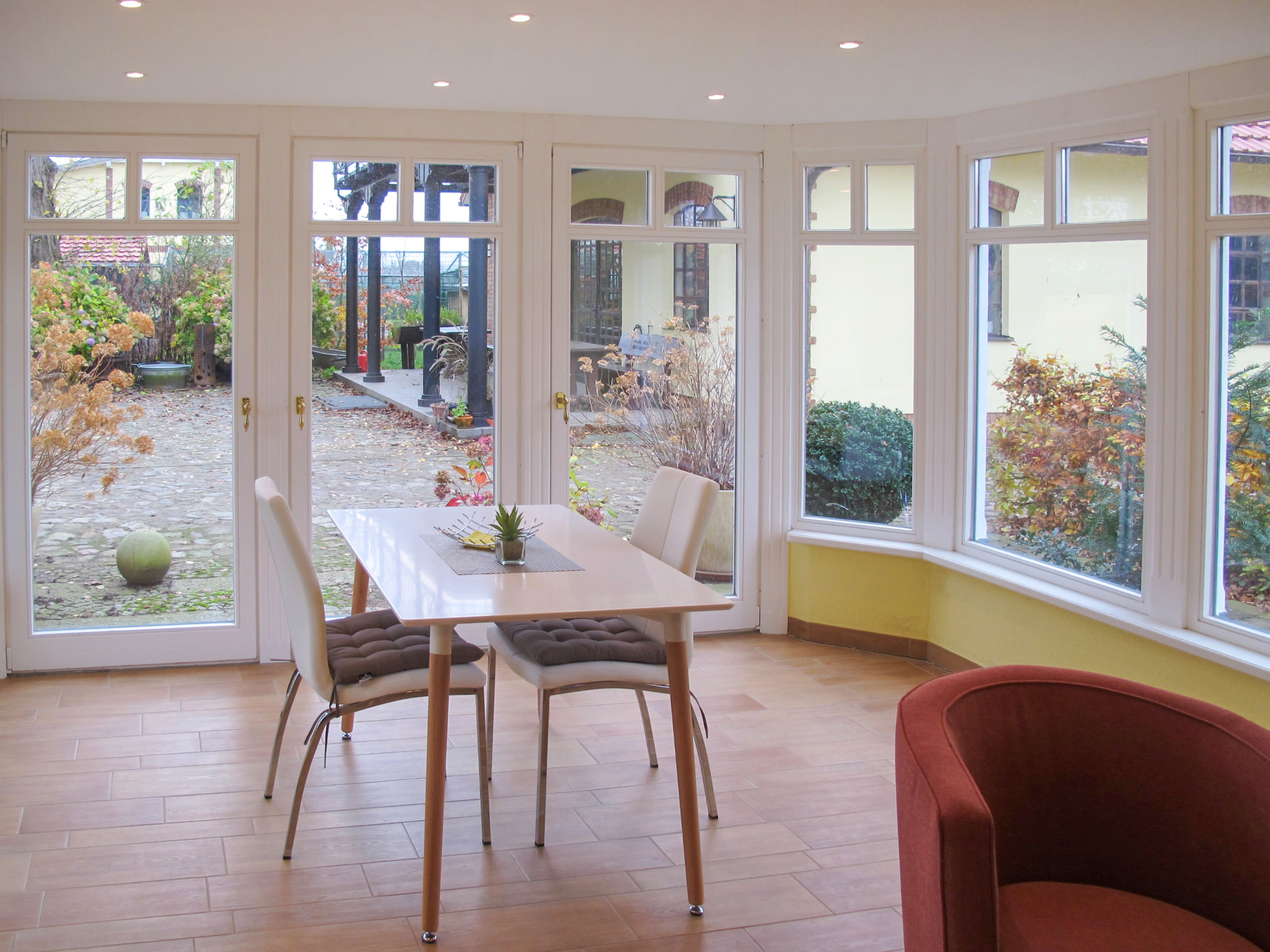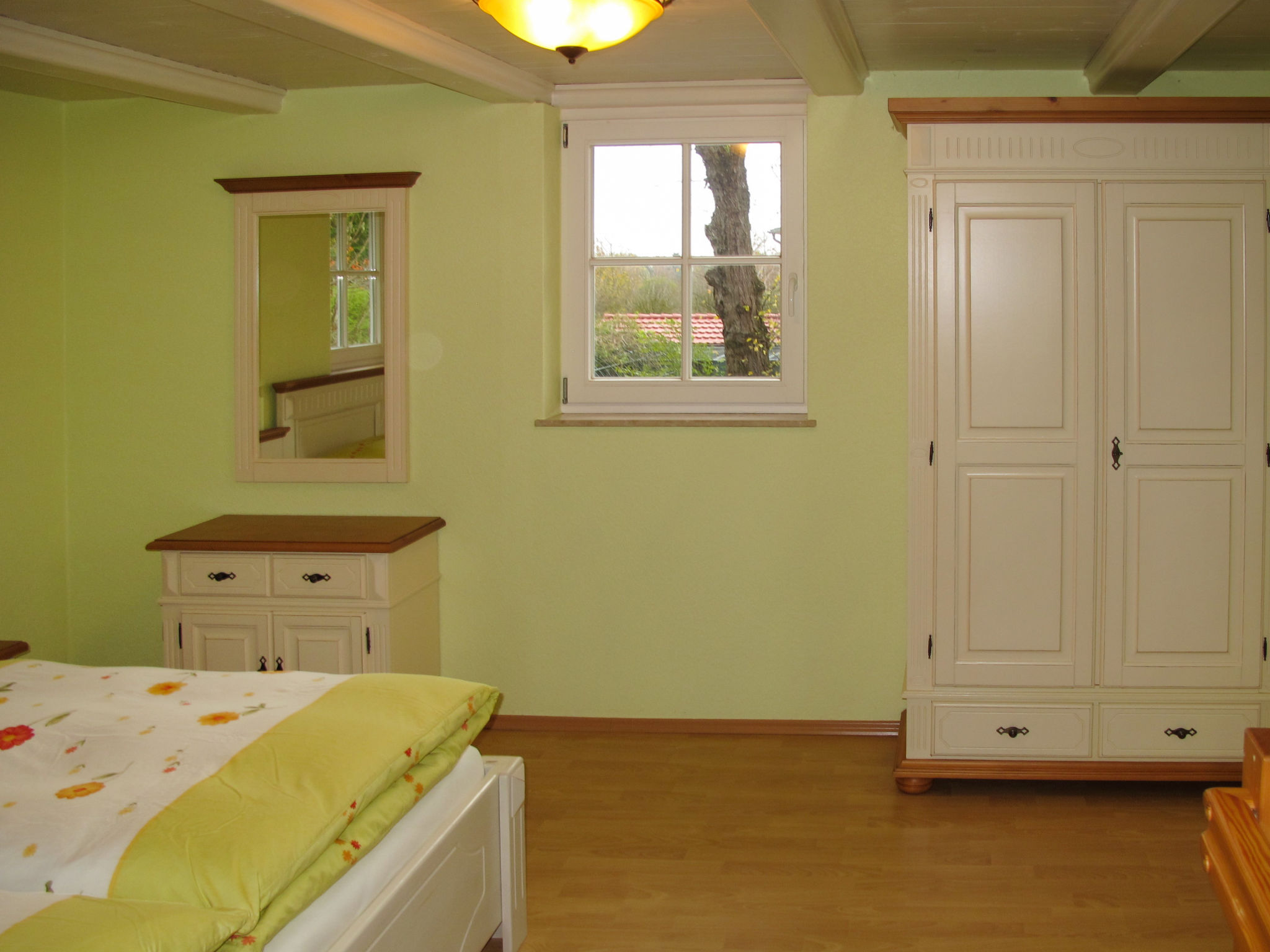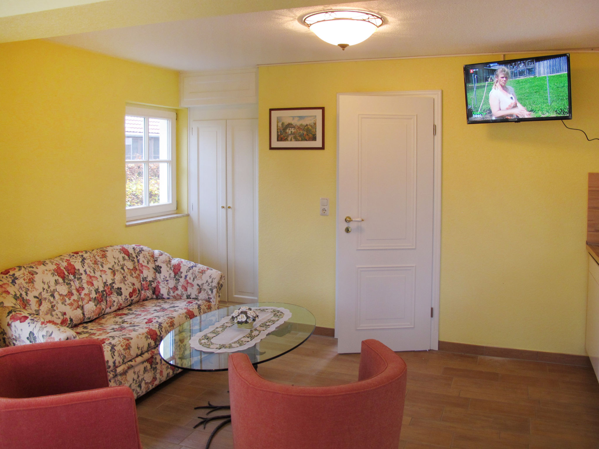 2-Zimmer-Haus 55 m2 auf 3 Stockwerken. Objekt geeignet für 2 Erwachsene + 2 Kinder. Modern und gemütlich eingerichtet: Wohn-/Schlafzimmer mit Wintergarten mit 1 Doppeldiwanbett (130 cm, Länge 200 cm), Esstisch und Sat-TV (Flachbildschirm), Radio. Ausgang zur Terrasse. Kochnische (2 Glaskeramikherd Platten, Toaster, Wasserkocher, Mikrowelle, elektrische Kaffeemaschine). Dusche/WC. Obergeschoss: (steile Treppe) 1 Doppelzimmer. Dachgeschoss: (steile Treppe) abgeschrägte, offene Schlafnische, Deckenhöhe 20 - 180 cm mit 2 Schlafmöglichkeiten (2 x 80 cm, Länge 190 cm). E-Heizung. Terrasse 10 m2. Terrassenmöbel, Gartengrill (mobil). Zur Verfügung: Internet (Wireless LAN, gratis). Bitte beachten: Nichtraucher-Haus. Rauchmelder. Flexibilität bei der Bettenaufteilung: Es stehen mehr Schlafmöglichkeiten zur Verfügung als die maximal zugelassene Personenzahl, diese darf dennoch nicht überschritten werden.