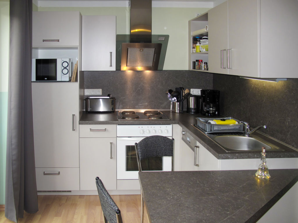 4-Zimmer-Wohnung 63 m2, im Obergeschoss. Gemütlich eingerichtet: Wohn-/Esszimmer mit Esstisch und Sat-TV (Flachbildschirm), Stereoanlage und DVD. Wohn-/Esszimmer mit Esstisch, Küchenblock, Sat-TV, Stereoanlage und DVD. 2 Doppelzimmer. Kochnische (4 Kochplatten, Backofen, Geschirrspüler, Toaster, Wasserkocher, Mikrowelle, elektrische Kaffeemaschine). 2 Duschen/WC. G-Heizung. Zur Verfügung: Internet (Wireless LAN, gratis). Bitte beachten: Nichtraucher-Unterkunft. Rauchmelder. Keine interne Verbindung zwischen den separaten Wohneinheiten.