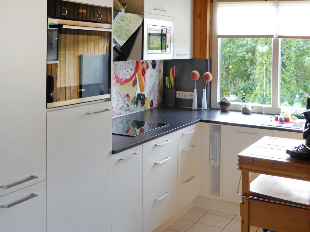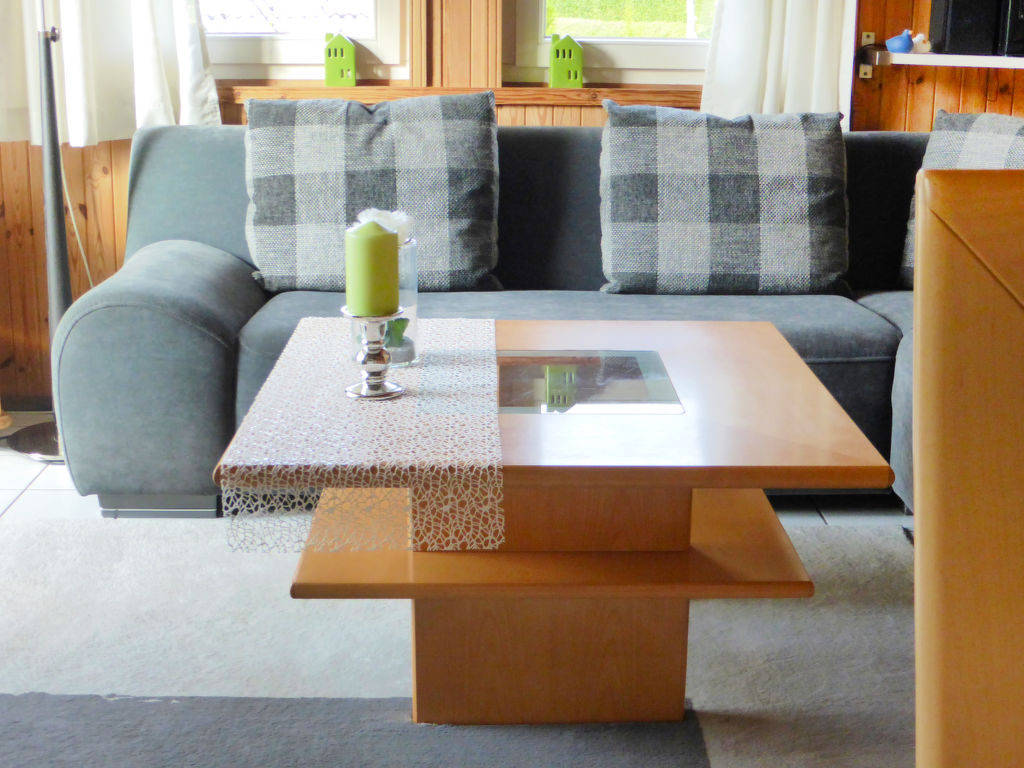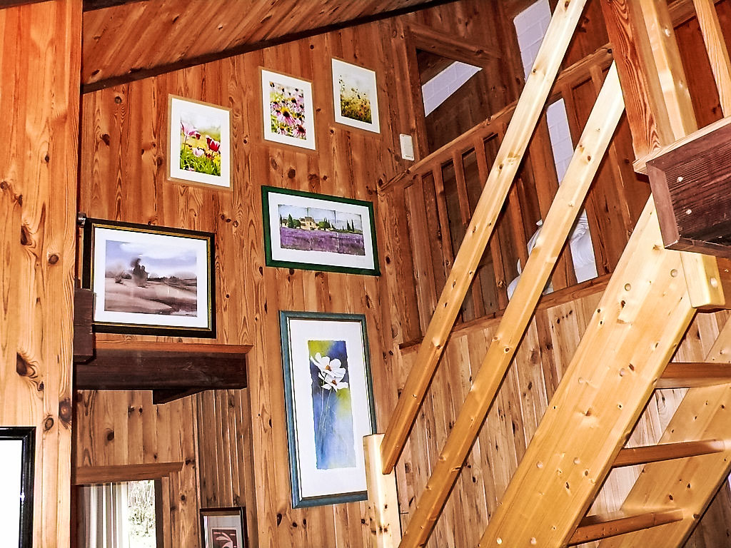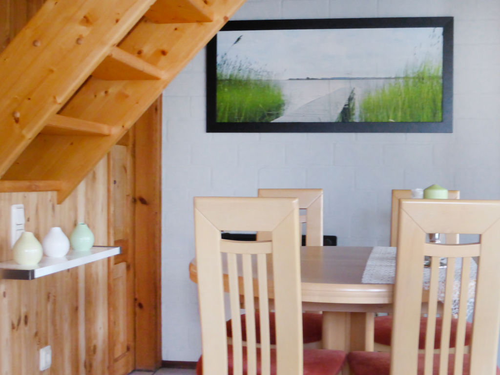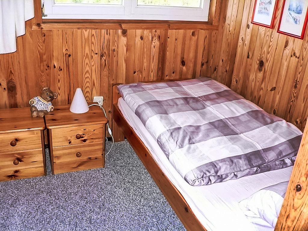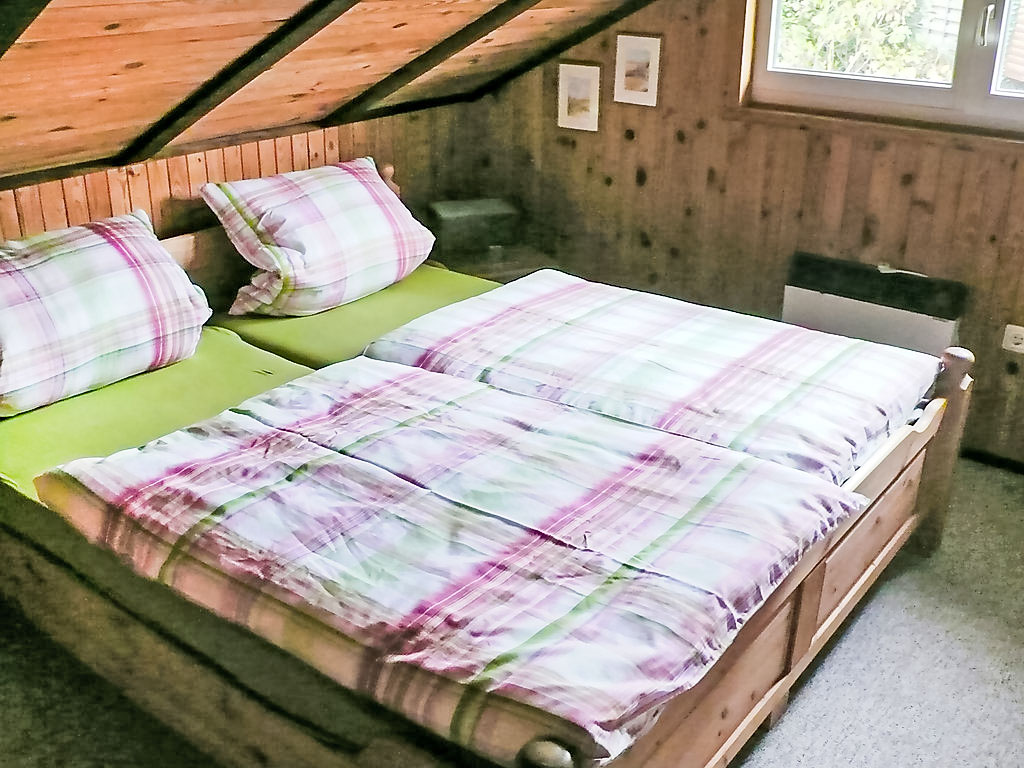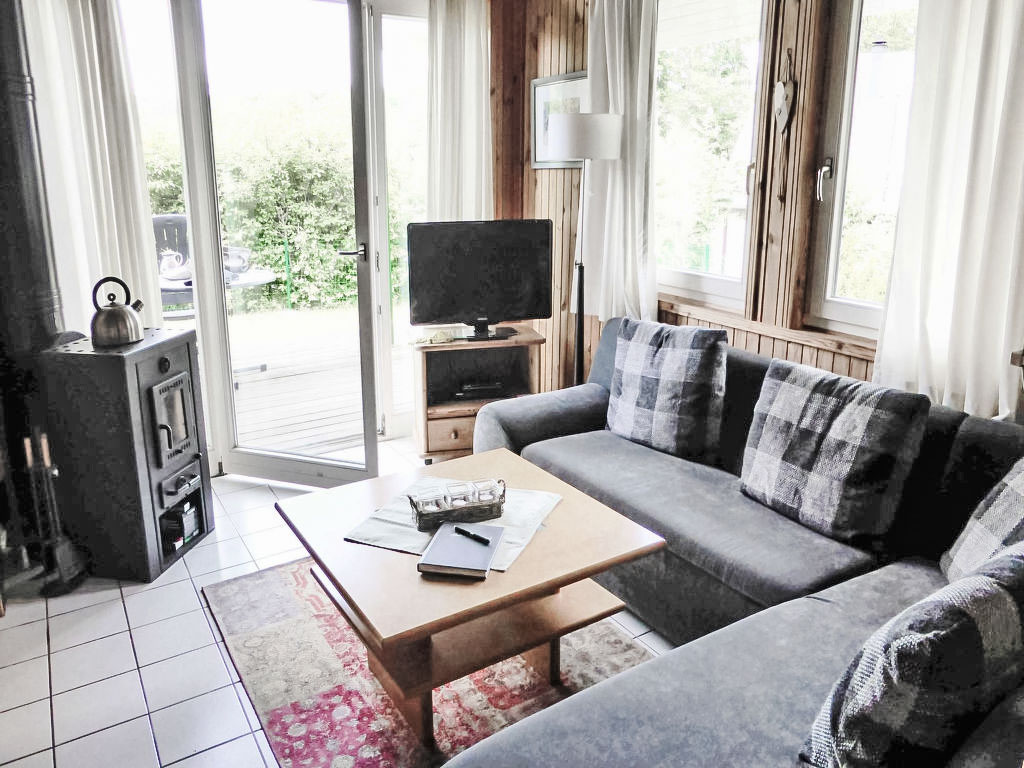 4-Zimmer-Doppelhaushälfte 75 m2 auf 2 Stockwerken, im Erdgeschoss. Wohn-/Esszimmer mit Schwedenofen und Sat-TV (Flachbildschirm), Radio und CD. Ausgang zum Garten, zur Terrasse. 1 Doppelzimmer. Kochnische (4 Kochplatten, Backofen, Mikrowelle, elektrische Kaffeemaschine). Dusche/WC. Obergeschoss: 1 abgeschrägtes Zimmer, ohne Schrank mit 1 Bett. 1 abgeschrägtes Doppelzimmer, ohne Schrank. E-Heizung. Garten 490 m2, Rasen. Terrassenmöbel, Elektrogrill (mobil), Liegestühle. Zur Verfügung: Holz (extra). Bitte beachten: Nichtraucher-Haus. Maximal 1 Haustier/Hund erlaubt. Der gemeinsame Kleiderschrank für das Einzel- und Doppelzimmer befindet sich im kleinen Flur im Obergeschoss. Wohn-/Esszimmer und Badezimmer mit Fussbodenheizung. Zugang vom Parkplatz zum Ferienhaus über 22 Stufen.
