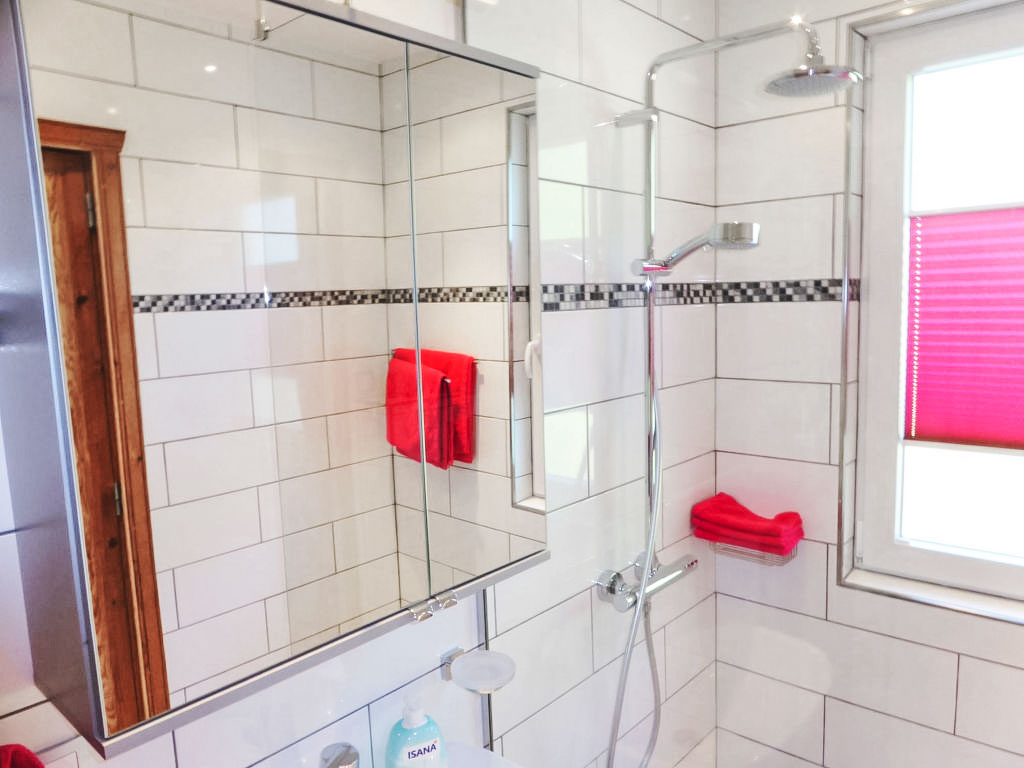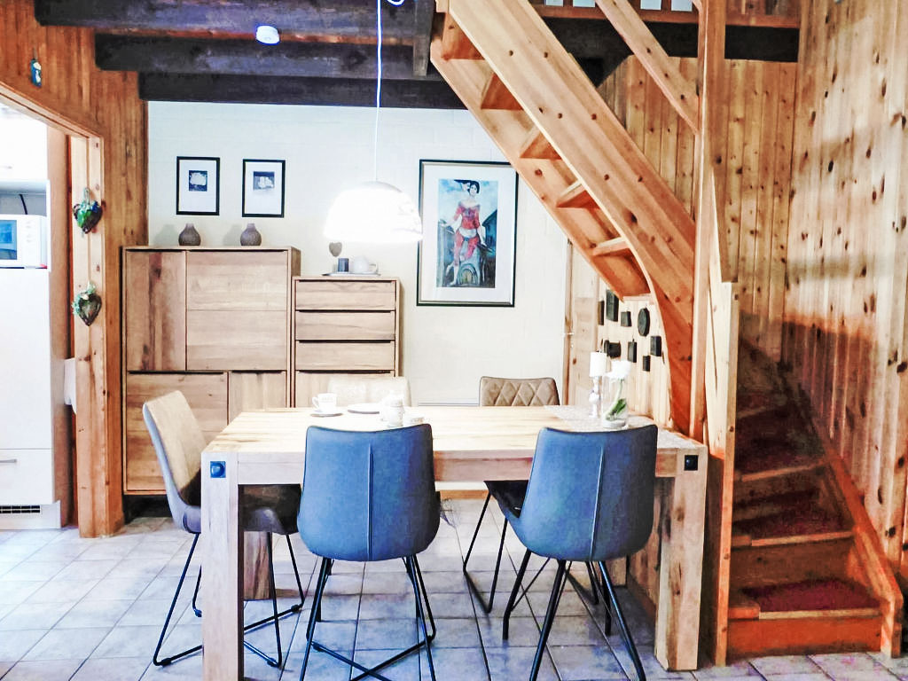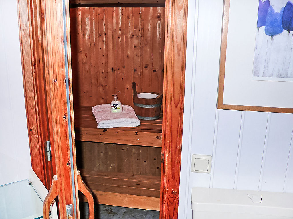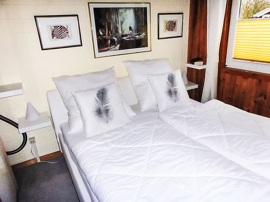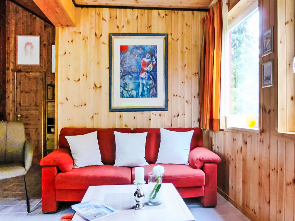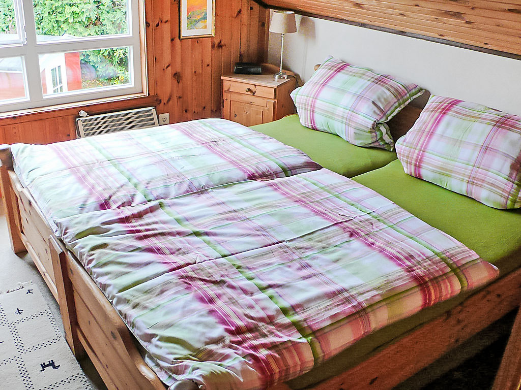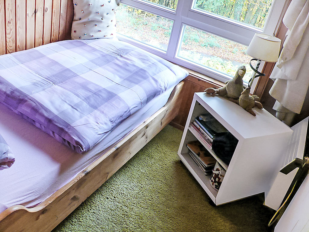 4-Zimmer-Doppelhaushälfte 75 m2 auf 2 Stockwerken, im Erdgeschoss. Teilweise renoviert im Jahre 2015: Wohn-/Esszimmer mit Schwedenofen und Sat-TV (Flachbildschirm), Radio und CD. Ausgang zum Garten, zur Terrasse. 1 Doppelzimmer. Kochnische (Backofen, 4 Glaskeramikherd Platten, Mikrowelle, elektrische Kaffeemaschine). Bad/Dusche/WC. Obergeschoss: 1 abgeschrägtes Zimmer, ohne Schrank mit 1 Bett und Radio. 1 abgeschrägtes Doppelzimmer, ohne Schrank mit Radio. E-Heizung. Terrasse 30 m2 teilweise überdacht, Garten 510 m2, Rasen. Terrassenmöbel, Elektrogrill (mobil), Liegestühle. Zur Verfügung: Sauna, Kinderhochstuhl, Holz (extra). Internet (Wireless LAN, gratis). Bitte beachten: Nichtraucher-Haus. Maximal 1 Haustier/Hund erlaubt. Der gemeinsame Kleiderschrank für das Einzel- und Doppelzimmer befindet sich im kleinen Flur im Obergeschoss. Wohn-/Esszimmer mit Fussbodenheizung. Badezimmer mit Fussbodenheizung und Zugang zur Sauna. Gartenhaus (Abstellkammer) vorhanden.