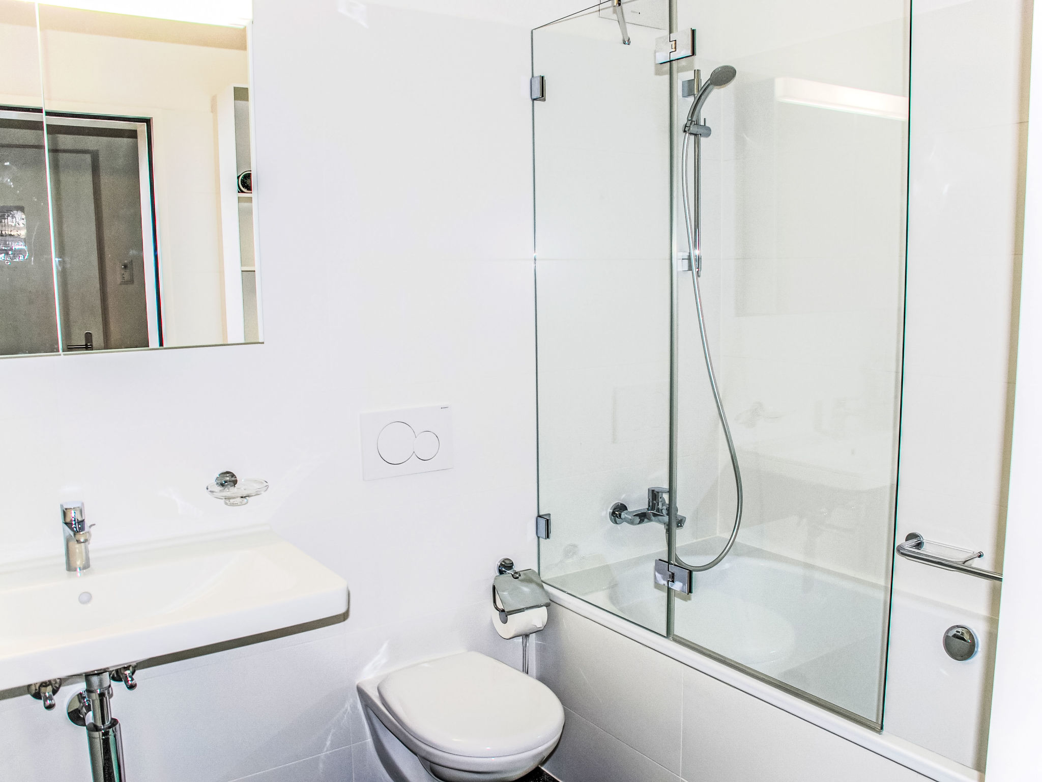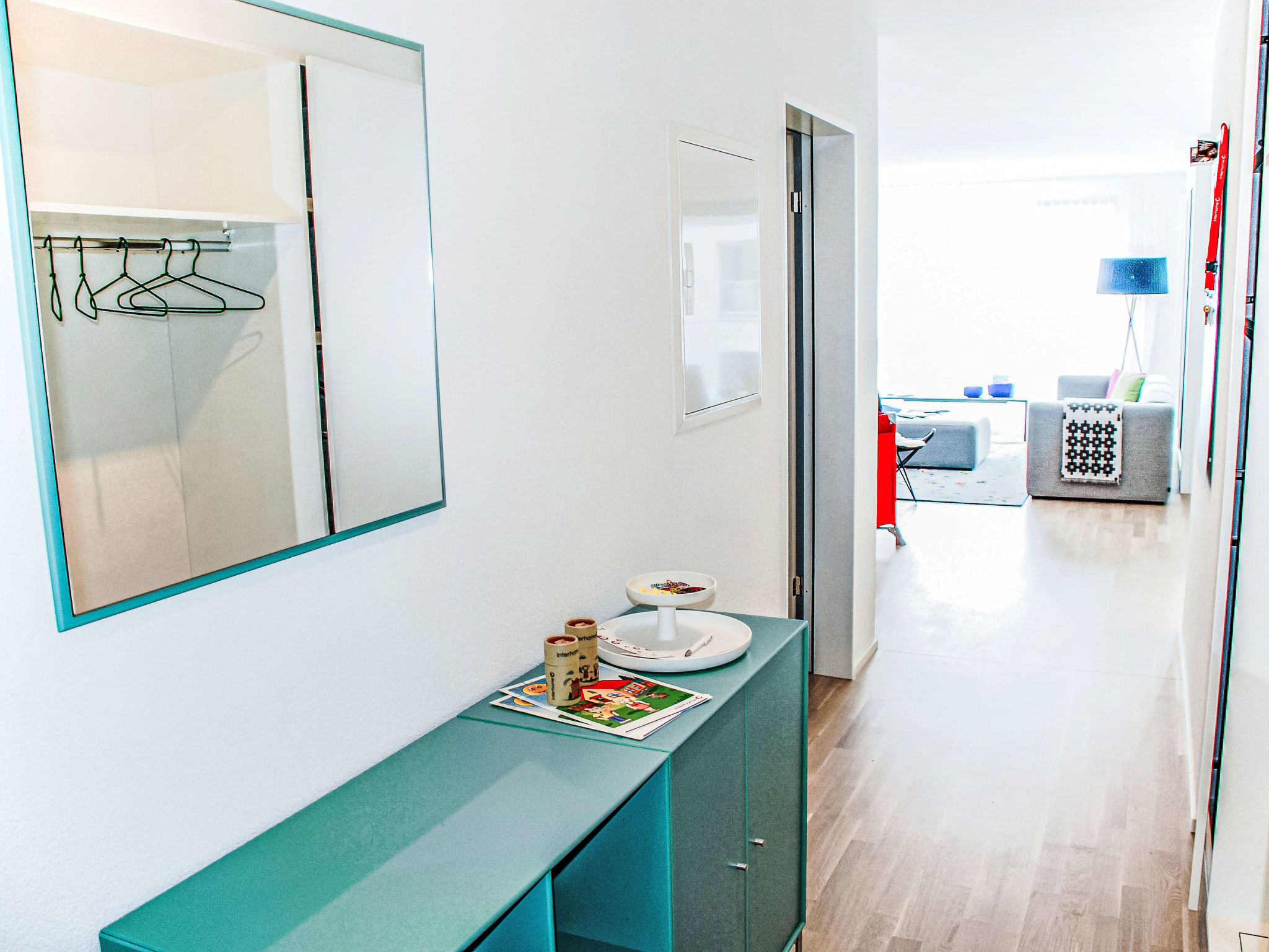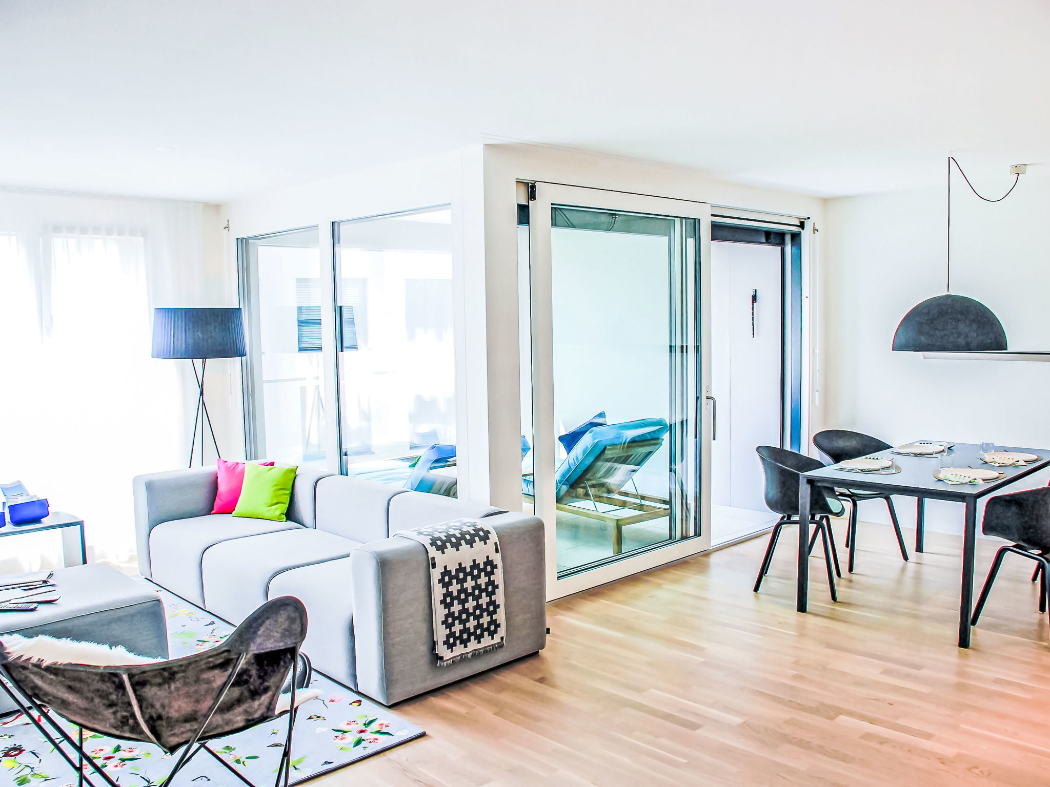 "LaVille A-3-3", 3-Zimmer-Wohnung 89 m2 im 3. Stock, Südwestlage. Geräumig und hell, modern und geschmackvoll eingerichtet: offenes grosses Wohn-/Esszimmer mit Sat-TV und Flachbildschirm. 1 Doppelzimmer mit 1 Doppelbett (2 x 90 cm, Länge 200 cm). 1 Zimmer mit 2 Betten (90 cm, Länge 200 cm). Offene Küche (Backofen, Geschirrspüler, 4 Induktionskochplatten, Tiefkühler, elektrische Kaffeemaschine, Kapseln für die Kaffeemaschine (Nespresso) extra) mit Esstisch. Ausgang zum Balkon. Bad/WC, Dusche/WC. Bodenheizung. Balkon 9 m2, Südlage und Westlage. Balkonmöbel, Liegestühle (1). Sicht auf die Berge und die Landschaft. Zur Verfügung: Waschmaschine, Wäschetrockner, Bügeleisen, Kinderhochstuhl, Babybett bis 2 Jahre (extra), Haartrockner. Internet (Wireless LAN, gratis). Parkplatz Nr. 50, Höhe 210 cm, Breite 230 cm. Bitte beachten: Nichtraucher-Unterkunft.