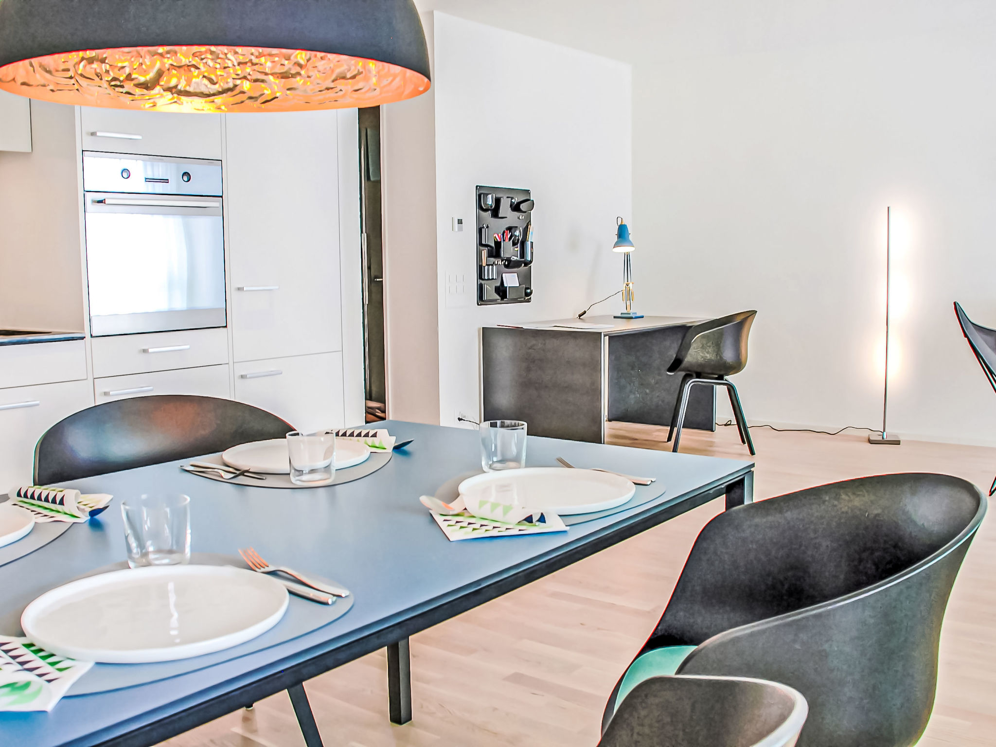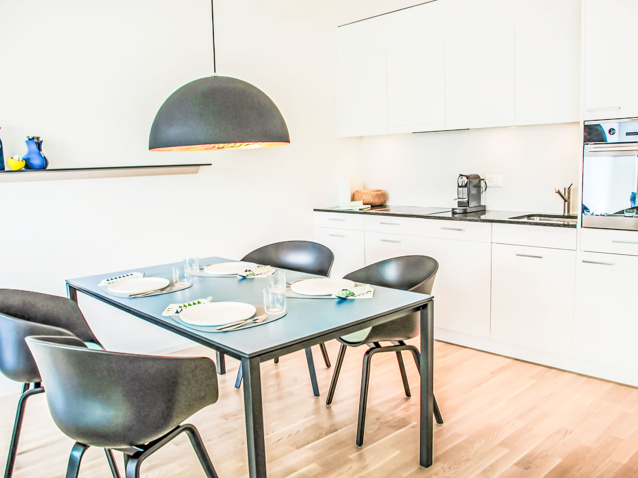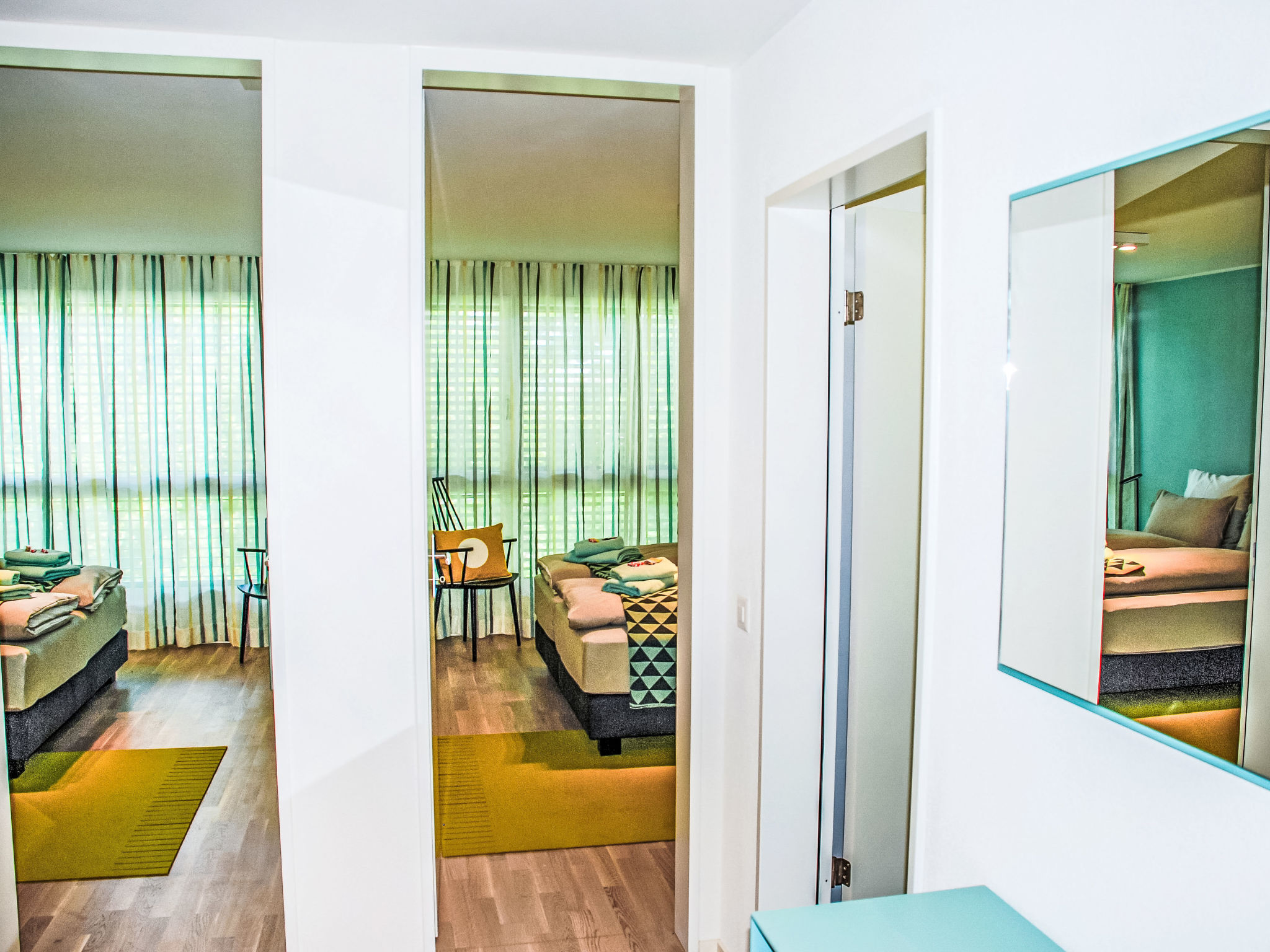 "LaVille A-3-3", 3-Zimmer-Wohnung 89 m2 im 3. Stock, Südwestlage. Geräumig und hell, modern und geschmackvoll eingerichtet: offenes grosses Wohn-/Esszimmer mit Sat-TV und Flachbildschirm. 1 Doppelzimmer mit 1 Doppelbett (2 x 90 cm, Länge 200 cm). 1 Zimmer mit 2 Betten (90 cm, Länge 200 cm). Offene Küche (Backofen, Geschirrspüler, 4 Induktionskochplatten, Tiefkühler, elektrische Kaffeemaschine, Kapseln für die Kaffeemaschine (Nespresso) extra) mit Esstisch. Ausgang zum Balkon. Bad/WC, Dusche/WC. Bodenheizung. Balkon 9 m2, Südlage und Westlage. Balkonmöbel, Liegestühle (1). Sicht auf die Berge und die Landschaft. Zur Verfügung: Waschmaschine, Wäschetrockner, Bügeleisen, Kinderhochstuhl, Babybett bis 2 Jahre (extra), Haartrockner. Internet (Wireless LAN, gratis). Parkplatz Nr. 50, Höhe 210 cm, Breite 230 cm. Bitte beachten: Nichtraucher-Unterkunft.