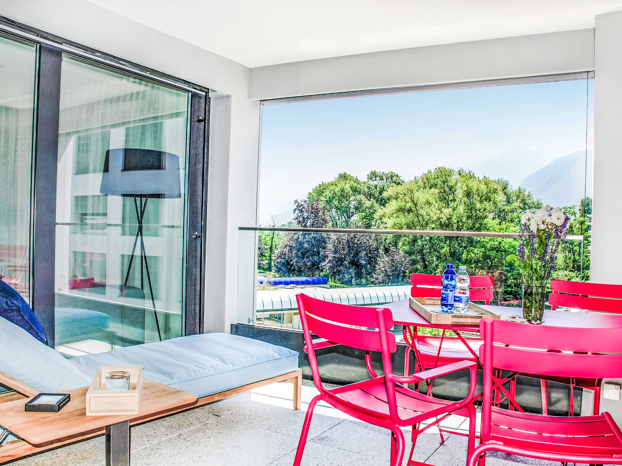 Locarno: Modernes, komfortables Mehrfamilienhaus auf 6 Stockwerken, Baujahr 2015. Im Ort, 700 m vom Zentrum von Piazza Grande - Locarno, sonnige Lage, exzellente Lage: Absolut zentral und dennoch ruhig, 1 km vom See, im Grünen. Im Hause: Fahrstuhl, Einstellraum für Fahrräder, Zentralheizung. Wäschewechsel (zusätzlich extra). Handtuchwechsel (zusätzlich extra). Wohnungsreinigung möglich (extra). Zufahrt bis zum Haus. Gemeinschaftsgarage beim Haus. Maße: Höhe 210 cm Breite 300 cm. Einkaufsgeschäft, Lebensmittelgeschäft, Supermarkt 500 m, Restaurant 350 m, Bar 50 m, Fußgängerzone 700 m, Fahrradverleih 400 m, Zentrum zu Fuss in 6 Minuten erreichbar, Bushaltestelle 250 m, Freibad 1 km, Hallenbad 1 km, Thermalbad "Termali Salini & Spa Lido" 1 km, Badesee "Lago Maggiore" 1 km. Golfplatz (18 Loch) 5.1 km, Tennis 900 m, Minigolf 700 m, Kinderspielplatz 1 m. Nahe gelegene Sehenswürdigkeiten: Falconeria Locarno 350 m, Piazza Grande (Events) 900 m, Lido Locarno, Parco Camelie 1 km, Madonna del Sasso 2.6 km, Lido di Ascona 4.7 km, Splash and SPA. Rivera 25.4 km. Bekannte Skigebiete sind gut erreichbar: Cardada, Bosco Gurin, Airolo, Amici del NARA, Campo Blenio, Campra. Bekannte Seen in der Umgebung sind gut erreichbar: Lago Maggiore, Lago di Como, Lago di Lugano. Wandergebiete: Cardada - Cimetta, Valle Verzasca, Monte Ceneri, Monte Verità, Centovalli, Monte Tamaro. Bitte beachten: geeignet für Familien, Babyausstattung auf Anfrage (extra). In diesem Haus sind weitere Ferienwohnungen mietbar. Ferienwohnung Ref. CH6600.75.2 -.7 befindet sich auf dem gleichen Grundstück.