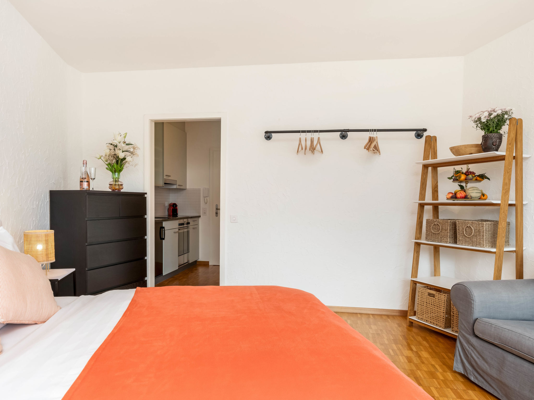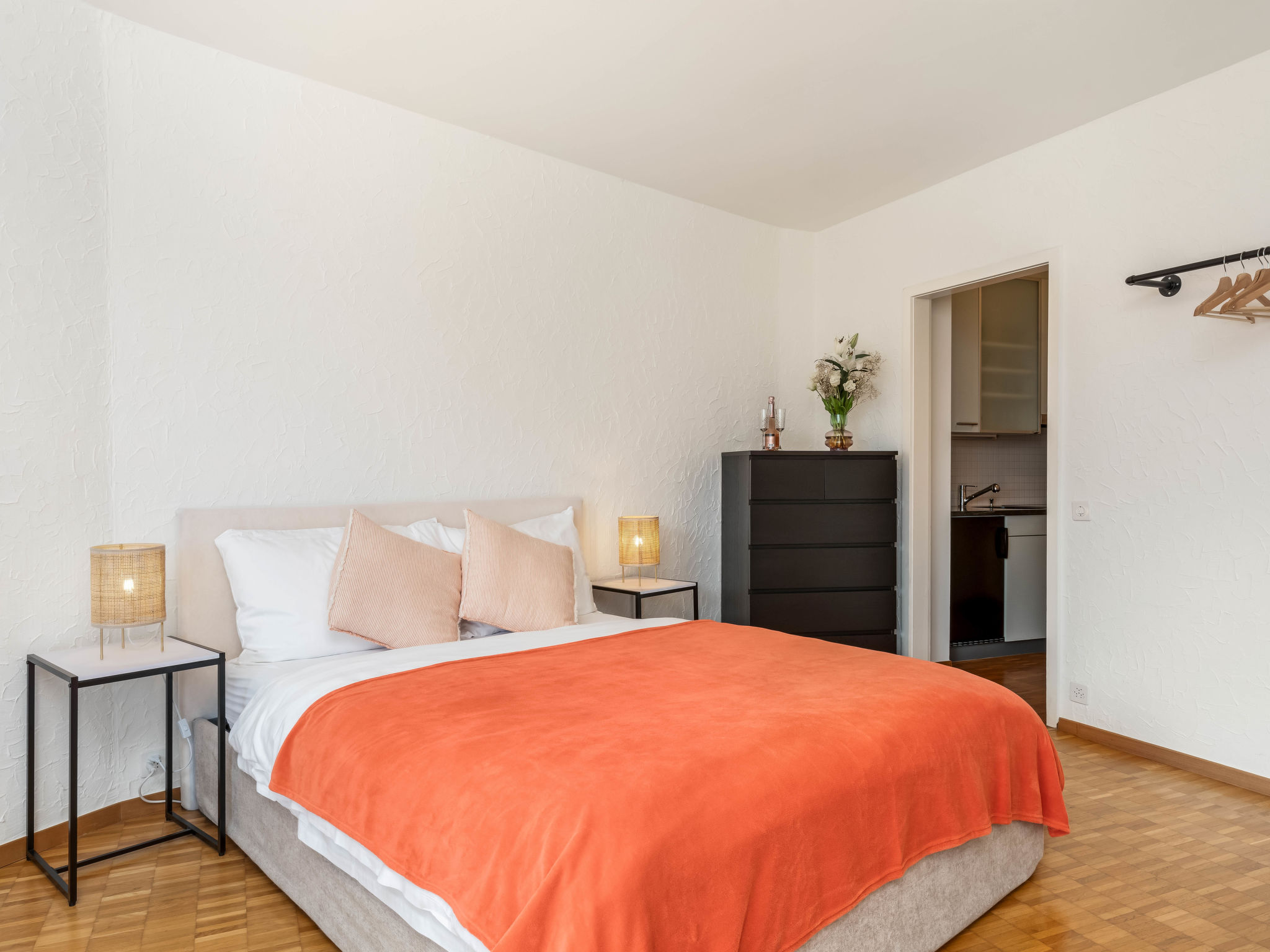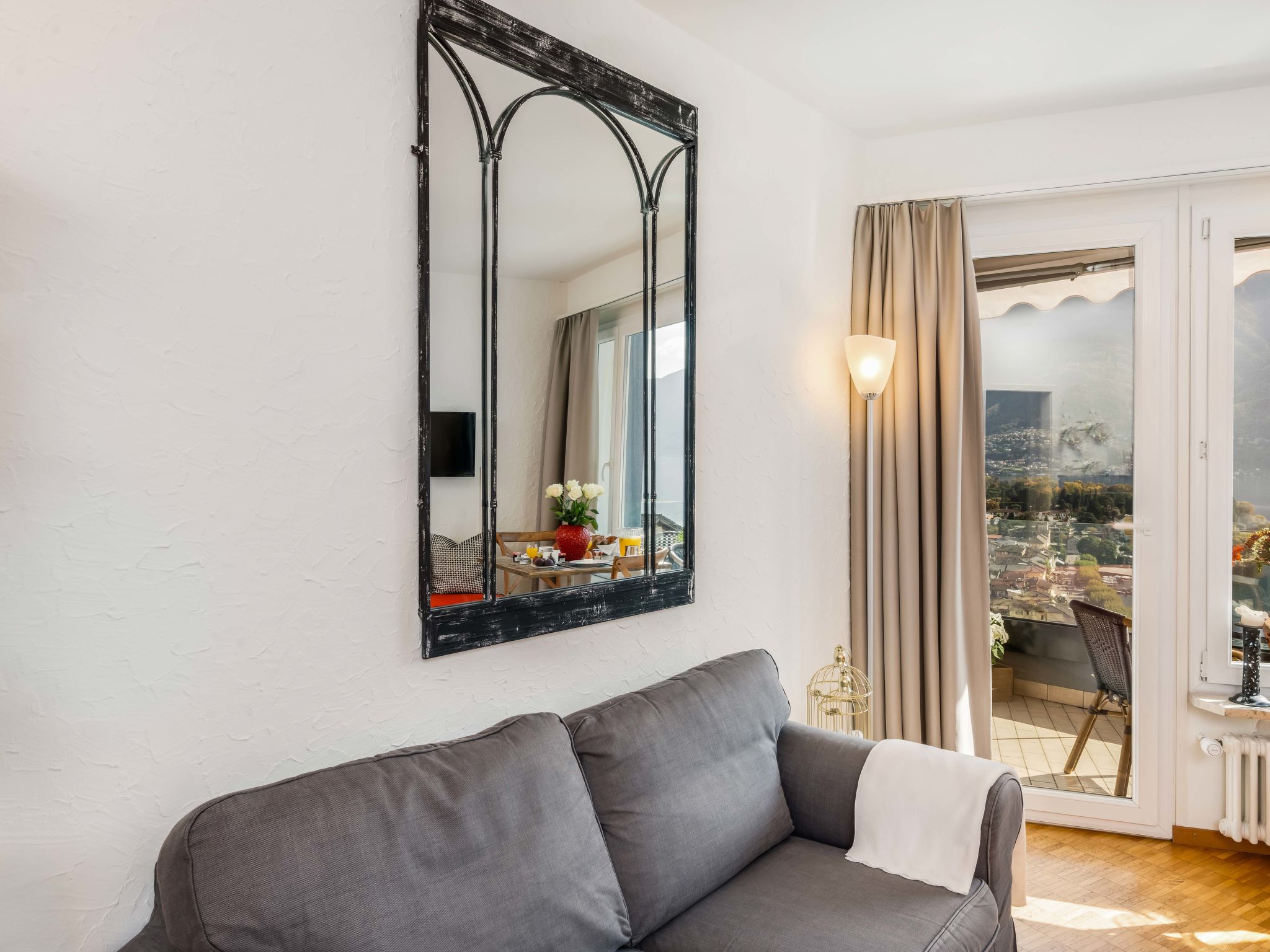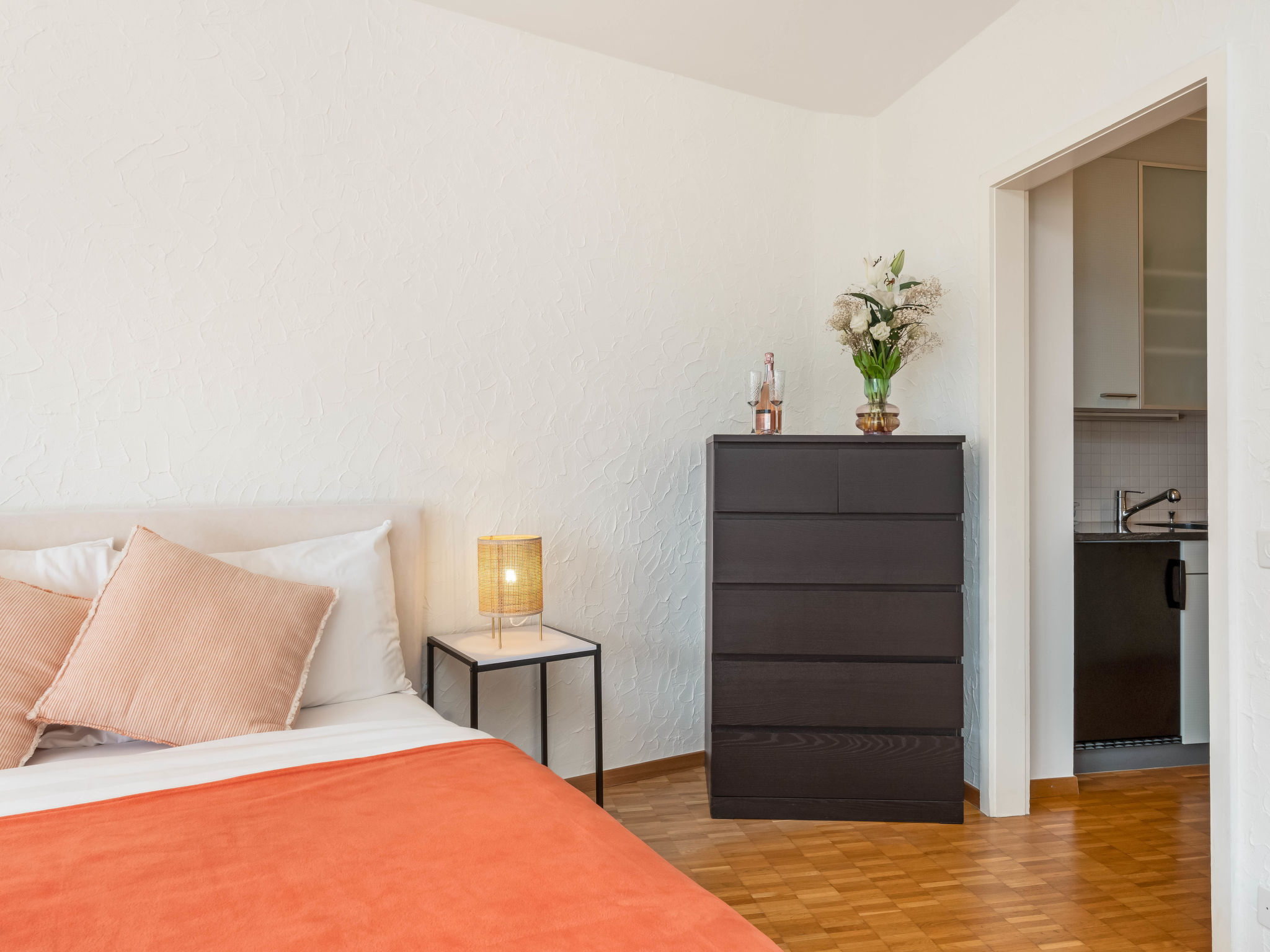 "Double Room Modern", 1-Zimmer-Wohnung 35 m2 im 2. Stock, Südlage. Renoviert: Wohn-/Esszimmer mit 2 Wandschrankbetten, Sat-TV und Radio. Kochnische (Backofen, elektrische Kaffeemaschine, Kapseln für die Kaffeemaschine (Nespresso) extra). Bad/WC. Balkon, Südlage. Herrliche Sicht auf den See, die Berge und die Ortschaft. Zur Verfügung: Internet (Wireless LAN, gratis). Bitte beachten: Nichtraucher-Unterkunft. Maximal 1 Haustier/Hund erlaubt.