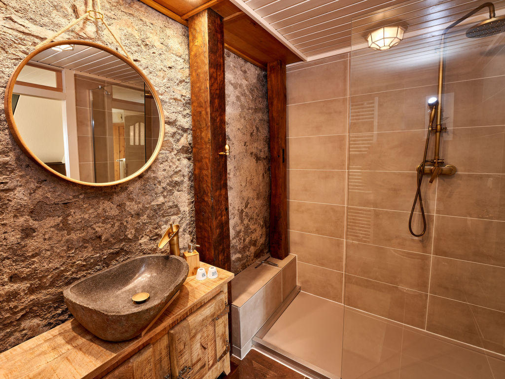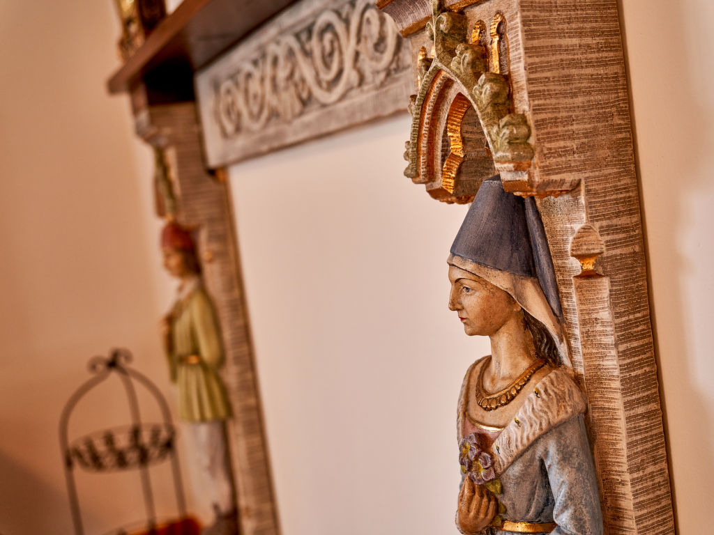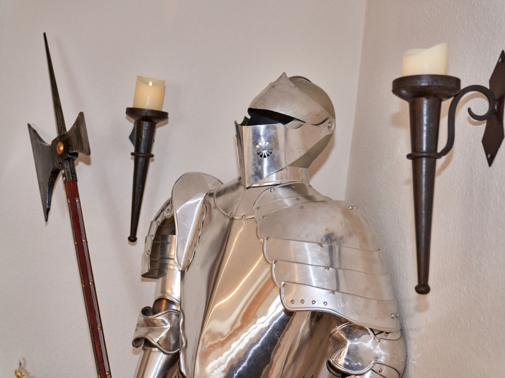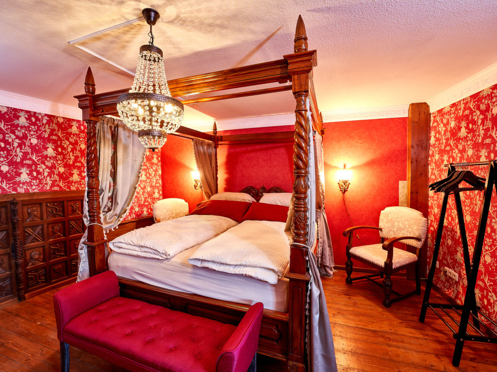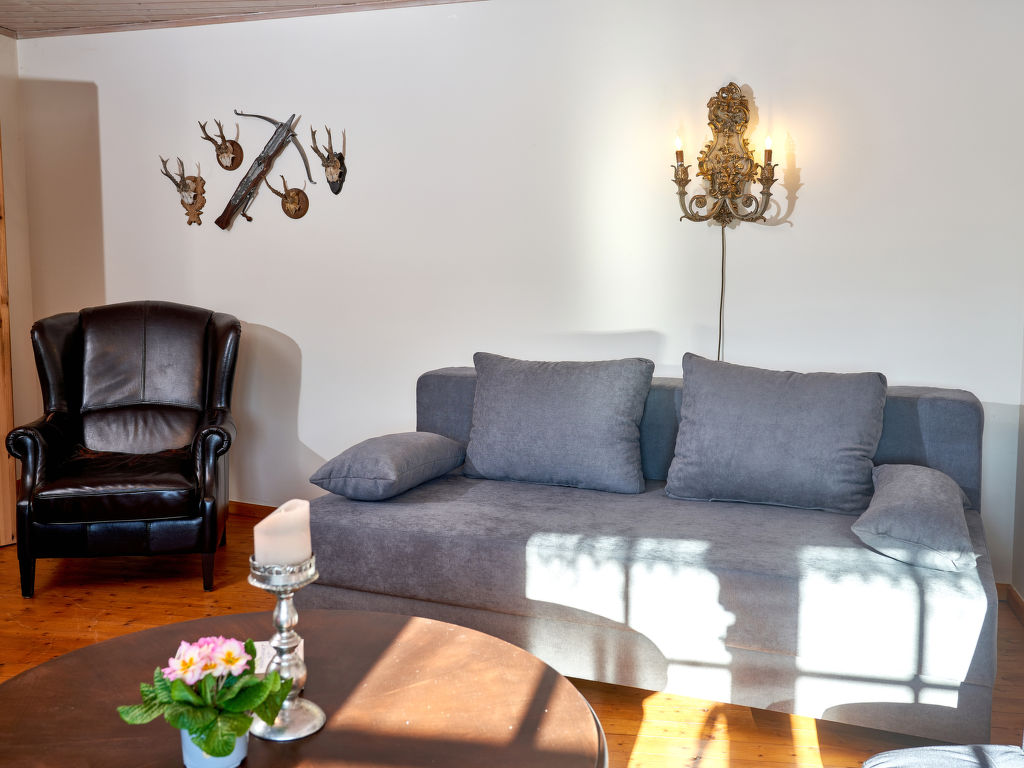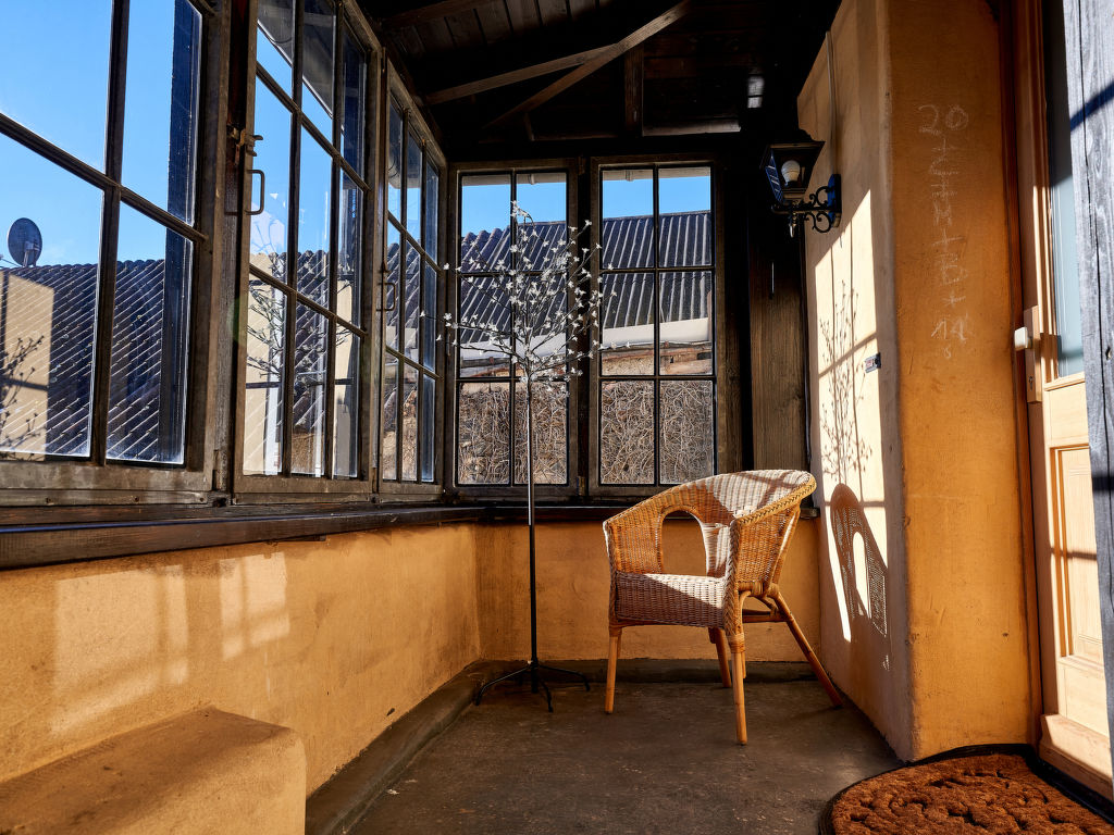 "Ritterstube", 3-Zimmer-Haus 100 m2 auf 2 Stockwerken. 1 Zimmer mit 1 franz. Bett (160 cm, Länge 200 cm). Küche (Backofen, Geschirrspüler, 4 Glaskeramikherd Platten, Toaster, Wasserkocher, Mikrowelle, elektrische Kaffeemaschine) mit Esstisch. Dusche/WC. Obergeschoss: Wohn-/Schlafzimmer mit 1 Doppeldiwanbett (160 cm, Länge 200 cm), Sat-TV und G-Heizung. 1 Zimmer mit 1 franz. Bett (160 cm, Länge 200 cm). Holzböden. Terrassenmöbel, Elektrogrill. Zur Verfügung: Internet (Wireless LAN, gratis). Bitte beachten: Nichtraucher-Haus. Rauchmelder, Feuerlöscher. Zwischen den Etagen sehr steile Treppe. Bluetooth Radio.