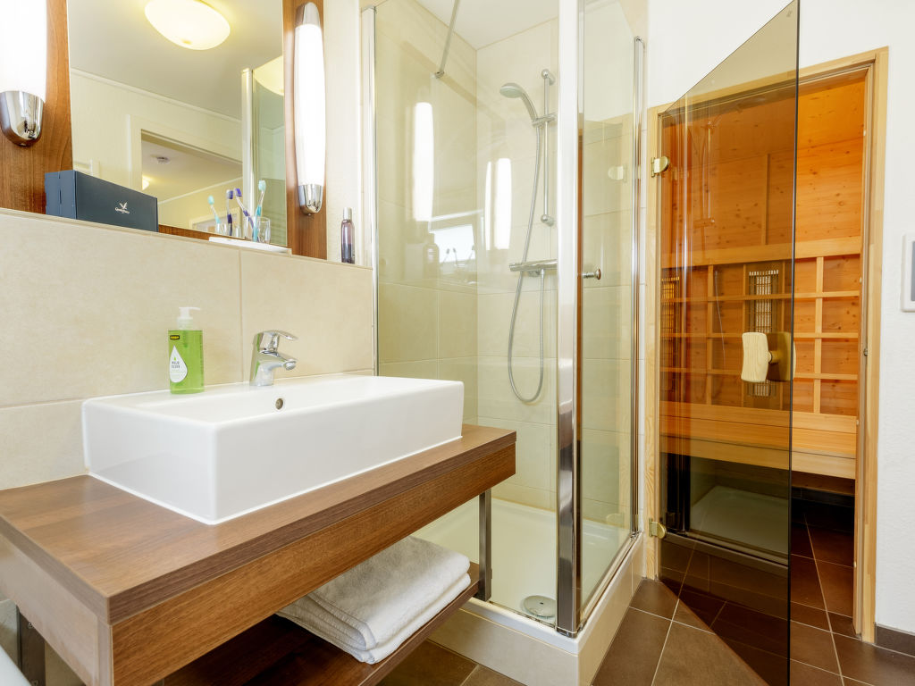 4-Zimmer-Reihenhaus 97 m2 auf 2 Stockwerken, im Erdgeschoss. Wohn-/Esszimmer mit Schwedenofen und Sat-TV (Flachbildschirm). Ausgang zur Terrasse. Küche (Geschirrspüler, 4 Glaskeramikherd Platten, Toaster, Wasserkocher, Mikrowelle, elektrische Kaffeemaschine, Kapseln für die Kaffeemaschine (Nescafe Dolce Gusto) extra). Dusche/WC. Obergeschoss: 1 Zimmer mit 2 Betten und Sat-TV (Flachbildschirm). 2 Zimmer, jedes Zimmer mit 2 Betten. Bad/Dusche/WC, Whirlbadewanne, Sauna. Terrassenmöbel, Gartengrill. Zur Verfügung: Safe, Kinderhochstuhl, Babybett, Haartrockner, Holz (extra). Internet (Wireless LAN, gratis). Bitte beachten: Nichtraucher-Haus. Maximal 2 Haustiere/Hunde erlaubt. Rauchmelder. Bluetooth-Soundbar im Wohn-/Esszimmer. Regendusche. Die Sauna ist eine Infrarotkabine. EUR 19.50 pro Haustier bei Kurzaufenthalten unter 1 Woche (zahlbar vor Ort).