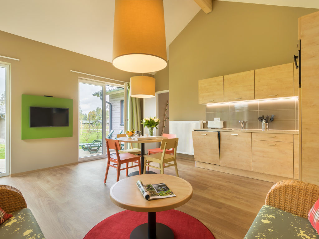Kinderfreundliche Ferienanlage "Center Parcs Park Allgäu". Ausserhalb des Ortes, 7 km vom Zentrum von Leutkirch, ruhige Lage am Hang, im Grünen. Zur Mitbenutzung: Hallenbad beheizt. Dusche/WC im Poolbereich, Kinderbecken, Rutschbahn, Volleyball, Badminton (extra), Kinderspielplatz, Streichelzoo. In der Anlage: Empfang, Restaurant, Bar, Frühstücksraum, Sauna (extra). Massage (extra). Dampfbad (extra). Hamam Tischtennis, Billard, Trampolin, Einkaufsmöglichkeit, Zentralheizung, Fahrradverleih. Zur Verfügung: Bowling (extra). Brötchenservice und Frühstück möglich (extra). Zentralparkplätze. Skischule 20 km, Kinderskischule 20 km. Nahe gelegene Sehenswürdigkeiten: Barockes Rathaus, Heimatmuseum, spätgotische Leutekirche St. Martin und das Gotische Haus aus dem 14. Jahrhundert in Leutkirch. Bekannte Skigebiete sind gut erreichbar: Ski-Arena Oberstaufen-Steibis 40 km. Wandergebiete: Altusried 18 km. Bitte beachten: autofreie Ferienanlage. Der Besitzer akzeptiert keine Jugendgruppen. Be- und Entladen am Ferienhaus möglich. Das Foto ist nur ein Hausbeispiel. Alle Häuser/Wohnungen sind individuell eingerichtet. Mittelpunkt des beliebten Ferienparkes ist der "Market Dome" mit Geschäften, Cafe, Supermarkt, sechs Restaurants, House of Games und Kids Factory. Besonders für Kinder geeignet ist das subtropische Spassbad «Aqua Mundo» (kostenlos) mit Innen- und Aussenbecken, fünf Rutschen, Wildwasserbahn, Planschbecken und Babyschwimmen. Verschiedene Spielplätze, Minigolf, Bogenschiessen, Ponyreiten, Tret- und E-Boote-Verleih, Fitnessraum, zwei wetterunabhängige Spielwelten, Spa und Country Club, organisierte Ausflüge sowie das Kinder-Aktivitätenprogramm "Wannabe" sind weitere Bestandteile des umfangreichen Freizeitangebotes. Einrichtungen teilweise extra. Langzeitaufenthalte (mehr als 21 Tage) und Firmenbuchungen sind nur auf Anfrage möglich.
