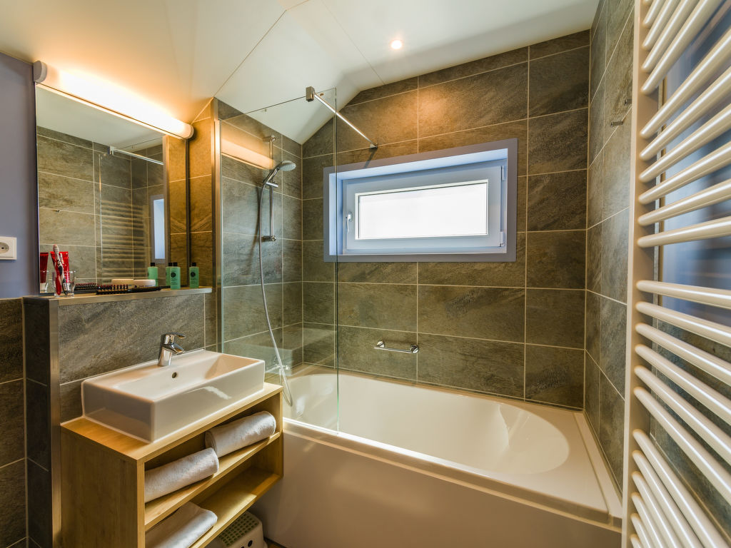 4-Zimmer-Reihenhaus 89 m2 auf 2 Stockwerken, im Erdgeschoss. Wohn-/Esszimmer mit offenem Kamin und Sat-TV (Flachbildschirm). Ausgang zur Terrasse. Küche (Geschirrspüler, 4 Glaskeramikherd Platten, Toaster, Wasserkocher, Mikrowelle, elektrische Kaffeemaschine, Kapseln für die Kaffeemaschine (Nescafe Dolce Gusto) extra). Sep. WC. Obergeschoss: 1 Zimmer mit 2 Betten (90 cm, Länge 210 cm), Sat-TV (Flachbildschirm). 1 Zimmer mit 2 Betten (90 cm, Länge 210 cm), Dusche. 1 Zimmer mit 2 Betten (90 cm, Länge 210 cm). Bad/WC. Terrassenmöbel, Abstellkammer. Zur Verfügung: Safe, Kinderhochstuhl, Babybett, Haartrockner, Holz (extra). Internet (Wireless LAN, gratis). Bitte beachten: Nichtraucher-Haus. Maximal 2 Haustiere/Hunde erlaubt. Rauchmelder. Regendusche. Fahrradparkplatz vor dem Haus. EUR 19.50 pro Haustier bei Kurzaufenthalten unter 1 Woche (zahlbar vor Ort).