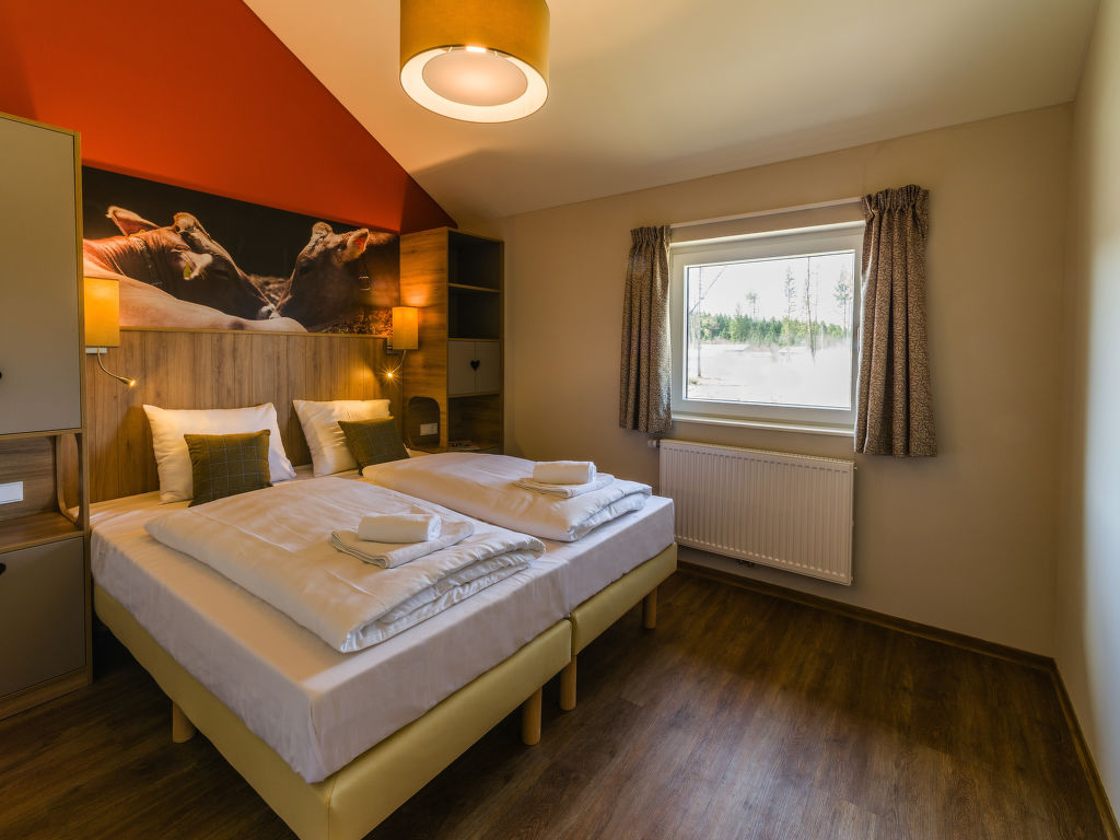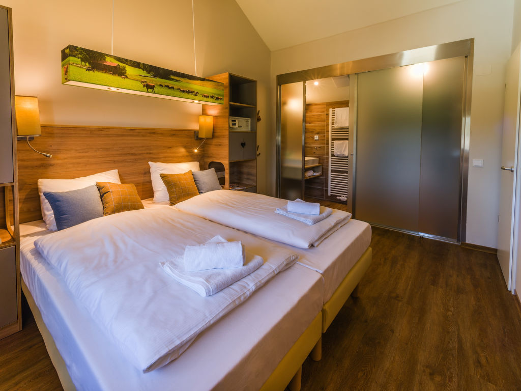 Kinderfreundliche Ferienanlage "Center Parcs Park Allgäu". Ausserhalb des Ortes, 7 km vom Zentrum von Leutkirch, ruhige Lage am Hang, im Grünen. Zur Mitbenutzung: Hallenbad beheizt. Dusche/WC im Poolbereich, Kinderbecken, Rutschbahn, Volleyball, Badminton (extra), Kinderspielplatz, Streichelzoo. In der Anlage: Empfang, Restaurant, Bar, Frühstücksraum, Sauna (extra). Massage (extra). Dampfbad (extra). Hamam Tischtennis, Billard, Trampolin, Einkaufsmöglichkeit, Zentralheizung, Fahrradverleih. Zur Verfügung: Bowling (extra). Brötchenservice und Frühstück möglich (extra). Zentralparkplätze. Skischule 20 km, Kinderskischule 20 km. Nahe gelegene Sehenswürdigkeiten: Barockes Rathaus, Heimatmuseum, spätgotische Leutekirche St. Martin und das Gotische Haus aus dem 14. Jahrhundert in Leutkirch. Bekannte Skigebiete sind gut erreichbar: Ski-Arena Oberstaufen-Steibis 40 km. Wandergebiete: Altusried 18 km. Bitte beachten: autofreie Ferienanlage. Der Besitzer akzeptiert keine Jugendgruppen. Be- und Entladen am Ferienhaus möglich. Das Foto ist nur ein Hausbeispiel. Alle Häuser/Wohnungen sind individuell eingerichtet. Mittelpunkt des beliebten Ferienparkes ist der "Market Dome" mit Geschäften, Cafe, Supermarkt, sechs Restaurants, House of Games und Kids Factory. Besonders für Kinder geeignet ist das subtropische Spassbad «Aqua Mundo» (kostenlos) mit Innen- und Aussenbecken, fünf Rutschen, Wildwasserbahn, Planschbecken und Babyschwimmen. Verschiedene Spielplätze, Minigolf, Bogenschiessen, Ponyreiten, Tret- und E-Boote-Verleih, Fitnessraum, zwei wetterunabhängige Spielwelten, Spa und Country Club, organisierte Ausflüge sowie das Kinder-Aktivitätenprogramm "Wannabe" sind weitere Bestandteile des umfangreichen Freizeitangebotes. Einrichtungen teilweise extra. Langzeitaufenthalte (mehr als 21 Tage) und Firmenbuchungen sind nur auf Anfrage möglich.