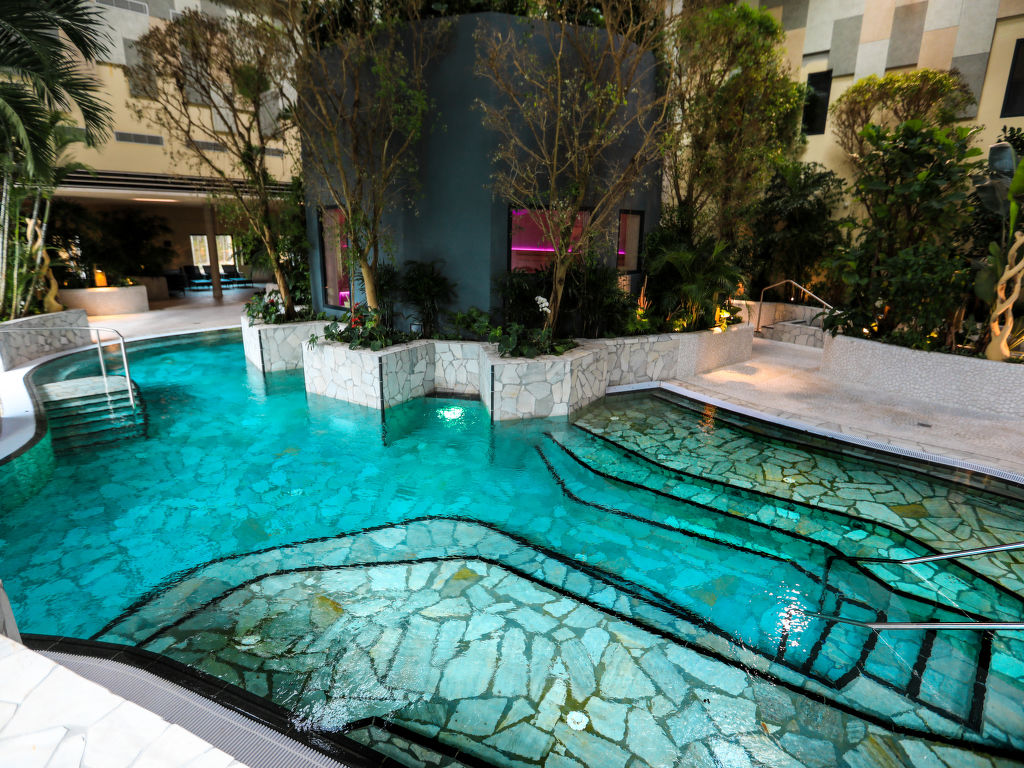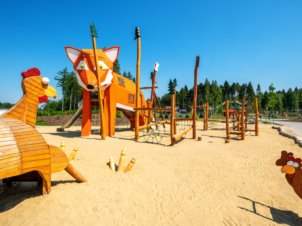 Kinderfreundliche Ferienanlage "Center Parcs Park Allgäu". Ausserhalb des Ortes, 7 km vom Zentrum von Leutkirch, ruhige Lage am Hang, im Grünen. Zur Mitbenutzung: Hallenbad beheizt. Dusche/WC im Poolbereich, Kinderbecken, Rutschbahn, Volleyball, Badminton (extra), Kinderspielplatz, Streichelzoo. In der Anlage: Empfang, Restaurant, Bar, Frühstücksraum, Sauna (extra). Massage (extra). Dampfbad (extra). Hamam Tischtennis, Billard, Trampolin, Einkaufsmöglichkeit, Zentralheizung, Fahrradverleih. Zur Verfügung: Bowling (extra). Brötchenservice und Frühstück möglich (extra). Zentralparkplätze. Skischule 20 km, Kinderskischule 20 km. Nahe gelegene Sehenswürdigkeiten: Barockes Rathaus, Heimatmuseum, spätgotische Leutekirche St. Martin und das Gotische Haus aus dem 14. Jahrhundert in Leutkirch. Bekannte Skigebiete sind gut erreichbar: Ski-Arena Oberstaufen-Steibis 40 km. Wandergebiete: Altusried 18 km. Bitte beachten: autofreie Ferienanlage. Der Besitzer akzeptiert keine Jugendgruppen. Be- und Entladen am Ferienhaus möglich. Das Foto ist nur ein Hausbeispiel. Alle Häuser/Wohnungen sind individuell eingerichtet. Mittelpunkt des beliebten Ferienparkes ist der "Market Dome" mit Geschäften, Cafe, Supermarkt, sechs Restaurants, House of Games und Kids Factory. Besonders für Kinder geeignet ist das subtropische Spassbad «Aqua Mundo» (kostenlos) mit Innen- und Aussenbecken, fünf Rutschen, Wildwasserbahn, Planschbecken und Babyschwimmen. Verschiedene Spielplätze, Minigolf, Bogenschiessen, Ponyreiten, Tret- und E-Boote-Verleih, Fitnessraum, zwei wetterunabhängige Spielwelten, Spa und Country Club, organisierte Ausflüge sowie das Kinder-Aktivitätenprogramm "Wannabe" sind weitere Bestandteile des umfangreichen Freizeitangebotes. Einrichtungen teilweise extra. Langzeitaufenthalte (mehr als 21 Tage) und Firmenbuchungen sind nur auf Anfrage möglich.