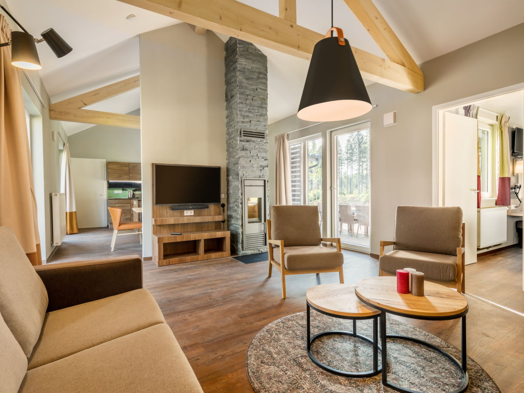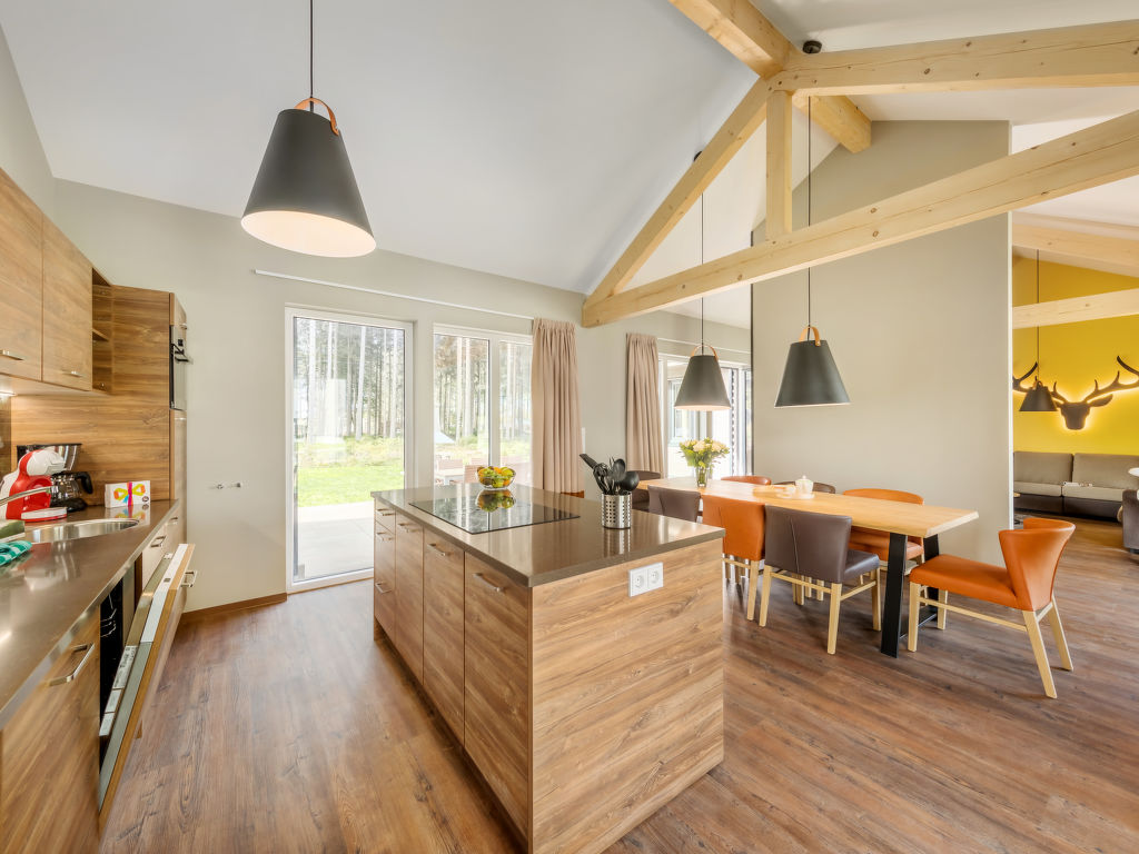 5-Zimmer-Reihenhaus 125 m2, im Erdgeschoss. Wohn-/Esszimmer mit offenem Kamin und Sat-TV (Flachbildschirm). Ausgang zur Terrasse. 1 Zimmer mit 2 Betten (90 cm, Länge 210 cm), Dusche und Sat-TV (Flachbildschirm). 1 Zimmer mit 2 Betten (90 cm, Länge 210 cm), Dusche. 2 Zimmer, jedes Zimmer mit 2 Betten (90 cm, Länge 210 cm). Küche (Geschirrspüler, 4 Glaskeramikherd Platten, Toaster, Wasserkocher, Mikrowelle, elektrische Kaffeemaschine, Kapseln für die Kaffeemaschine (Nescafe Dolce Gusto) extra). Bad/Dusche, Dusche/WC, sep. WC, Whirlbadewanne, Sauna. Terrassenmöbel, Gartengrill, Abstellkammer. Zur Verfügung: Safe, Kinderhochstuhl, Babybett, Haartrockner, Holz (extra). Internet (Wireless LAN, gratis). Bitte beachten: Nichtraucher-Haus. Maximal 2 Haustiere/Hunde erlaubt. Rauchmelder. Bluetooth-Soundbar im Wohn-/Esszimmer. Regendusche. Die Sauna ist eine Infrarotkabine. Fahrradparkplatz vor dem Haus. EUR 19.50 pro Haustier bei Kurzaufenthalten unter 1 Woche (zahlbar vor Ort).
