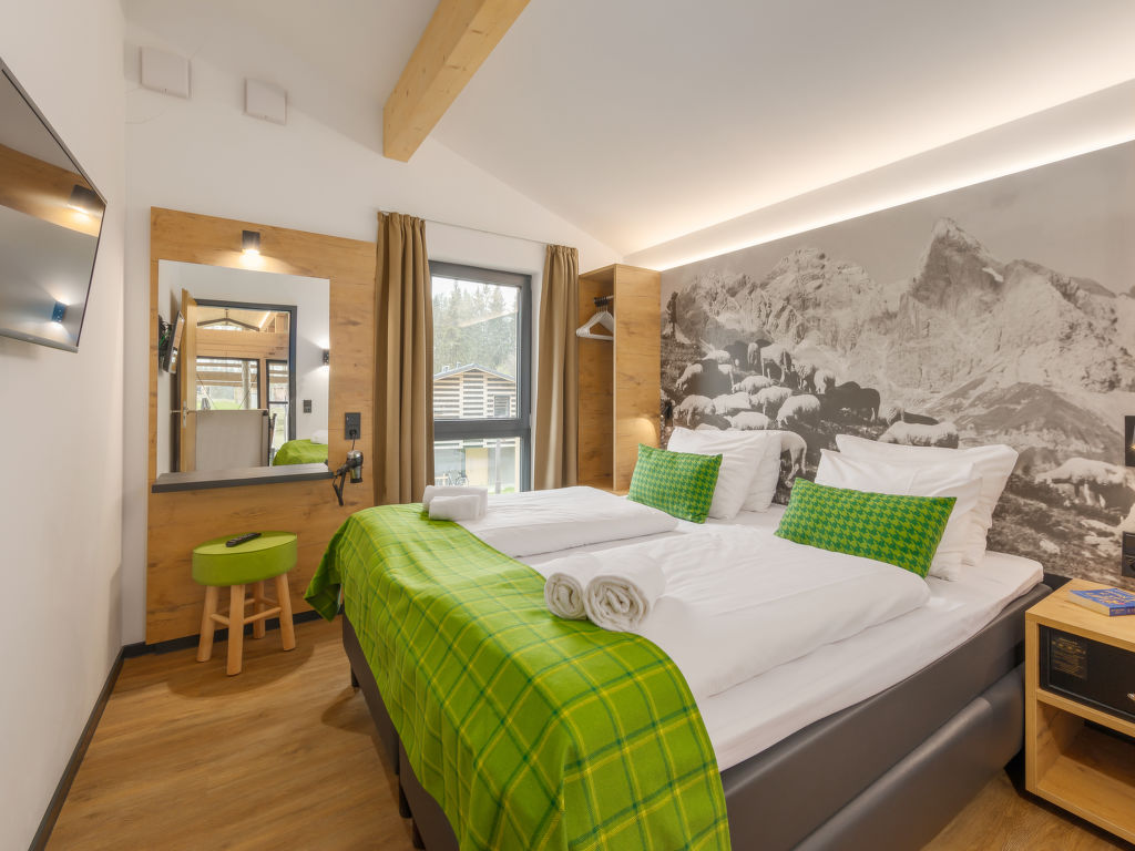 3-Zimmer-Chalet 78 m2 auf 2 Stockwerken, im Erdgeschoss. Wohn-/Esszimmer mit offenem Kamin und Sat-TV (Flachbildschirm). Ausgang zur Terrasse. 1 Zimmer mit 2 Betten (90 cm, Länge 210 cm), Dusche und Sat-TV (Flachbildschirm). Küche (Geschirrspüler, 4 Induktionskochplatten, Toaster, Wasserkocher, Mikrowelle, elektrische Kaffeemaschine, Kapseln für die Kaffeemaschine (Nescafe Dolce Gusto) extra). Sep. WC. Obergeschoss: 1 Zimmer mit 2 Betten (90 cm, Länge 210 cm), Sat-TV (Flachbildschirm). Bad/Dusche, sep. WC, Whirlbadewanne, Sauna. Fussbodenheizung. Terrassenmöbel, Balkonmöbel, Gartengrill, Loggia, Abstellkammer. Zur Verfügung: Waschmaschine, Wäschetrockner, Safe, Kinderhochstuhl, Babybett, Haartrockner, Holz (extra). Internet (Wireless LAN, gratis). Bitte beachten: Nichtraucher-Haus. Maximal 2 Haustiere/Hunde erlaubt. Rauchmelder. Relaxsessel im Wohn-/Esszimmer. Bluetooth-Soundbar im Wohn-/Ess-und Badezimmer. Regendusche. Fahrradparkplatz vor dem Haus. Ferienhaus in Holzbauweise mit offener Loggia im Obergeschoss. EUR 19.50 pro Haustier bei Kurzaufenthalten unter 1 Woche (zahlbar vor Ort).