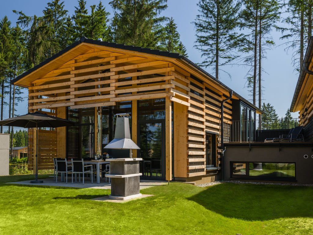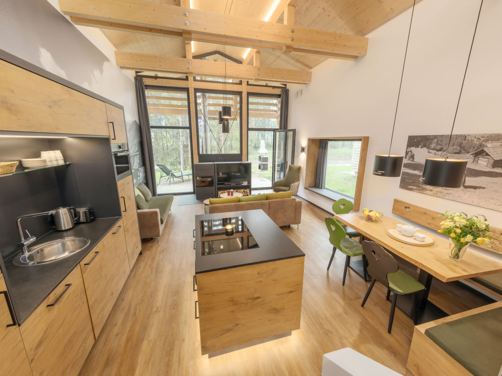 4-Zimmer-Chalet 103 m2 auf 2 Stockwerken, im Erdgeschoss. Wohn-/Esszimmer mit offenem Kamin und Sat-TV (Flachbildschirm). Ausgang zur Terrasse. 2 Zimmer, jedes Zimmer mit 2 Betten (90 cm, Länge 210 cm), Dusche und Sat-TV (Flachbildschirm). Küche (Geschirrspüler, 4 Induktionskochplatten, Toaster, Wasserkocher, Mikrowelle, elektrische Kaffeemaschine, Kapseln für die Kaffeemaschine (Nescafe Dolce Gusto) extra). Sep. WC. Obergeschoss: 1 Zimmer mit 2 Betten (90 cm, Länge 210 cm), Sat-TV (Flachbildschirm). Bad/Dusche, sep. WC, Whirlbadewanne, Sauna. Fussbodenheizung. Terrassenmöbel, Balkonmöbel, Gartengrill, Loggia, Abstellkammer. Zur Verfügung: Waschmaschine, Wäschetrockner, Safe, Kinderhochstuhl, Babybett, Haartrockner, Holz (extra). Internet (Wireless LAN, gratis). Bitte beachten: Nichtraucher-Haus. Maximal 2 Haustiere/Hunde erlaubt. Rauchmelder. Relaxsessel im Wohn-/Esszimmer. Bluetooth-Soundbar im Wohn-/Ess- und Badezimmer. Regendusche. Fahrradparkplatz vor dem Haus. Ferienhaus in Holzbauweise mit offener Loggia im Obergeschoss. EUR 19.50 pro Haustier bei Kurzaufenthalten unter 1 Woche (zahlbar vor Ort).