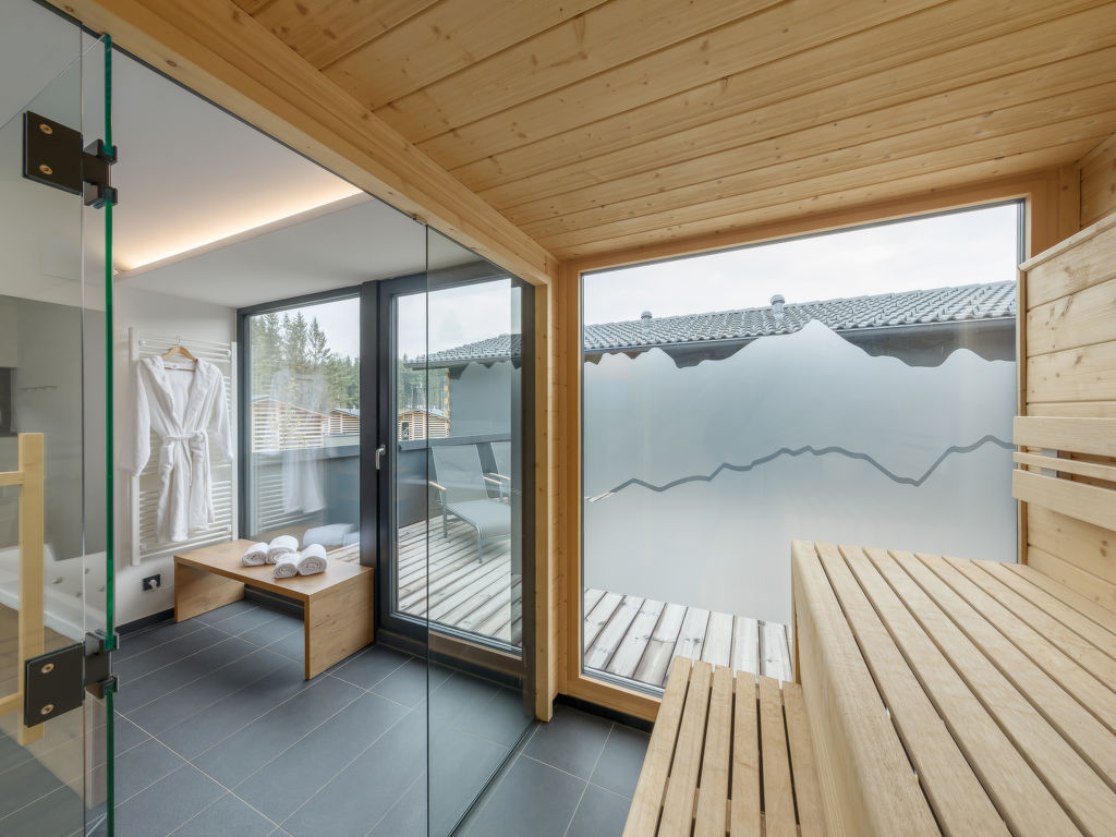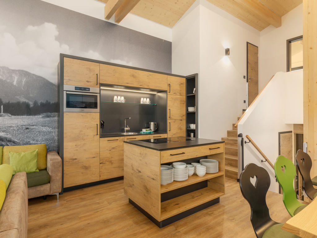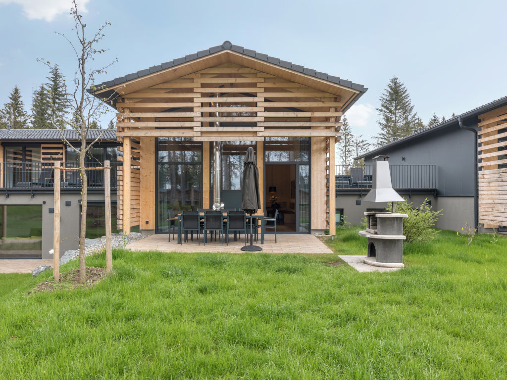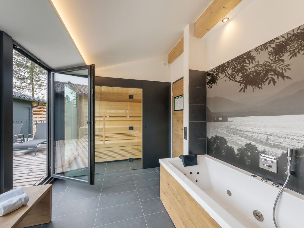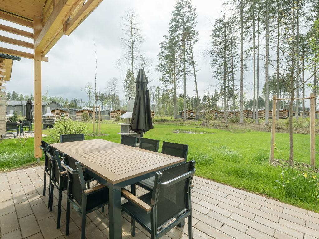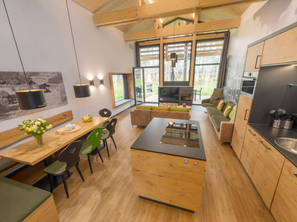 5-Zimmer-Chalet 123 m2 auf 2 Stockwerken, im Erdgeschoss. Wohn-/Esszimmer mit offenem Kamin und Sat-TV (Flachbildschirm). Ausgang zur Terrasse. 2 Zimmer, jedes Zimmer mit 2 Betten (90 cm, Länge 210 cm), Dusche und Sat-TV (Flachbildschirm). 1 Zimmer mit 2 Betten (90 cm, Länge 210 cm), Sat-TV (Flachbildschirm). Küche (Geschirrspüler, 4 Induktionskochplatten, Toaster, Wasserkocher, Mikrowelle, elektrische Kaffeemaschine, Kapseln für die Kaffeemaschine (Nescafe Dolce Gusto) extra). Dusche, sep. WC. Obergeschoss: 1 Zimmer mit 2 Betten (90 cm, Länge 210 cm), Sat-TV (Flachbildschirm). Bad/Dusche, sep. WC, Whirlbadewanne, Sauna. Fussbodenheizung. Terrassenmöbel, Balkonmöbel, Gartengrill, Loggia, Abstellkammer. Zur Verfügung: Waschmaschine, Wäschetrockner, Safe, Kinderhochstuhl, Babybett, Haartrockner, Holz (extra). Internet (Wireless LAN, gratis). Bitte beachten: Nichtraucher-Haus. Maximal 2 Haustiere/Hunde erlaubt. Rauchmelder. Relaxsessel im Wohn-/Esszimmer. Bluetooth-Soundbar im Wohn-/Ess-und Badezimmer. Regendusche. Fahrradparkplatz vor dem Haus. Ferienhaus in Holzbauweise mit offener Loggia im Obergeschoss. EUR 19.50 pro Haustier bei Kurzaufenthalten unter 1 Woche (zahlbar vor Ort).