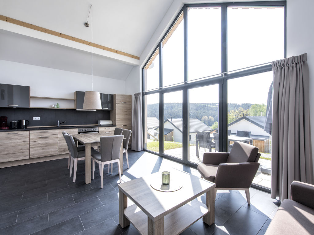 Obernsees 7 km von Mistelgau: Kinderfreundliche, moderne Ferienanlage "Feriendorf an der Therme Obernsees". Ausserhalb des Ortes, 2 km vom Zentrum von Obernsees, ruhige, sonnige, erhöhte Lage am Hang, 100 m vom Waldrand, in einer Sackgasse. Zur Mitbenutzung: Kinderspielplatz (Rutschbahn, Schaukel, Sandkasten). Zur Alleinbenutzung: kleiner Garten mit Rasen. In der Anlage: Empfang, Zentralheizung. Einkaufsgeschäft 6 km, Lebensmittelgeschäft 6 km, Supermarkt 6 km, Restaurant 2 km, Bar 6 km, Bäckerei 750 m, Café 6 km, Freibad 12 km, Thermalbad "Therme Obernsees" 1 km. Wanderwege ab Haus, Radweg 100 m. Bekannte Skigebiete sind gut erreichbar: Fichtelgebirge 38 km. Bitte beachten: Fahrzeug empfohlen. Das Foto ist nur ein Hausbeispiel. Das Foto ist nur ein Wohnungsbeispiel. Alle Häuser/Wohnungen sind individuell eingerichtet. Direkt am in der Fränkischen Schweiz liegenden Feriendorf verlaufen ein Radweg sowie Einstiegsmöglichkeiten in unzählige Kurz- und Weitwanderwege sowie Nordic-Walking-Strecken. REISEN UND SPAREN: Der Eintritt (täglich 2 Stunden, auch am An- und Abreisetag) in die Badewelt/Thermalbad der Therme Obernsees und die Erlebniscard mit zahlreichen Ermässigungen in der Region sind im Mietpreis bereits enthalten.