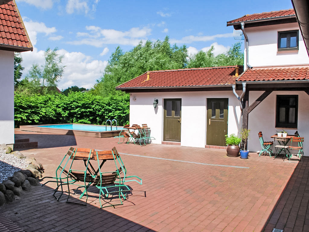 Barlin 3 km von Dargun: IDEAL FÜR NATURLIEBHABER: kleine Ferienanlage "Gästehaus Alte Schule". Am Ortsrand, ruhige, sonnige, erhöhte Lage, 3 km vom See, 3 km vom Strand, in einer Sackgasse, im Grünen. Zur Mitbenutzung: Garten, Liegewiese, Schwimmbad (8 x 4 m, saisonale Verfügbarkeit: 15.Mai.-15.Sep.). Terrasse (300 m2), Gartenmöbel, Grill, Kinderspielplatz. In der Anlage: Aufenthaltsraum, Zentralheizung, Waschmaschine, Wäschetrockner (zur Mitbenutzung, extra). Parkplatz beim Haus. Einkaufsgeschäft 3 km, Lebensmittelgeschäft 3 km, Restaurant 3 km, Bushaltestelle 100 m, Bahnstation "Demmin" 13 km, Sandstrand 3 km, Badebucht 6 km. Golfplatz 15 km, Tennis 15 km, Reitstall 200 m. Bekannte Seen in der Umgebung sind gut erreichbar: Klostersee 3 km, Kummerower See 6 km, Peene 6 km. Bitte beachten: Fahrzeug empfohlen. In diesem Haus sind weitere Ferienwohnungen mietbar. In 200m Entfernung können in einer Reitanlage (Mitglied in der FN) auf Wunsch und Voranmeldung Reitstunden genommen werden.