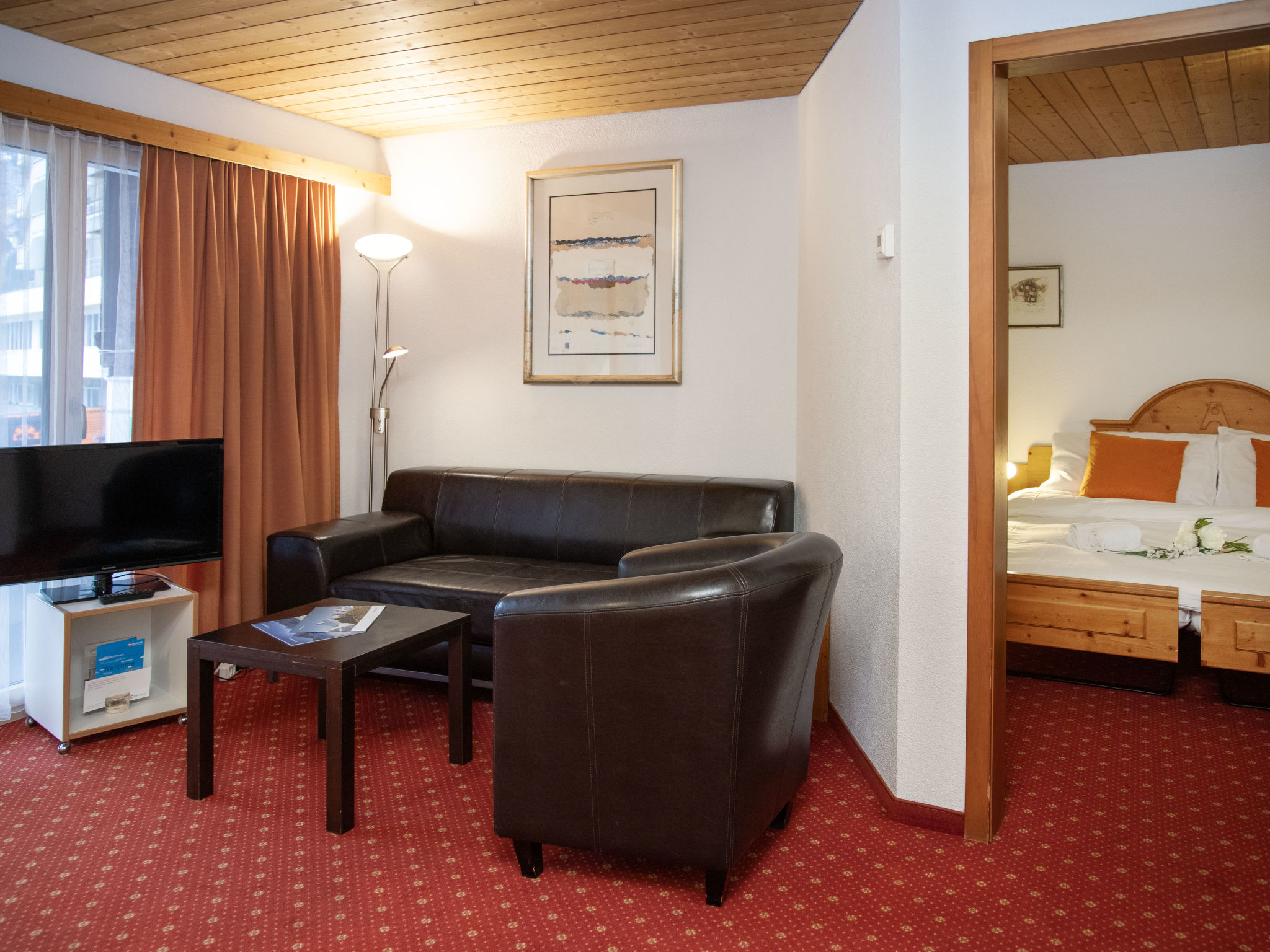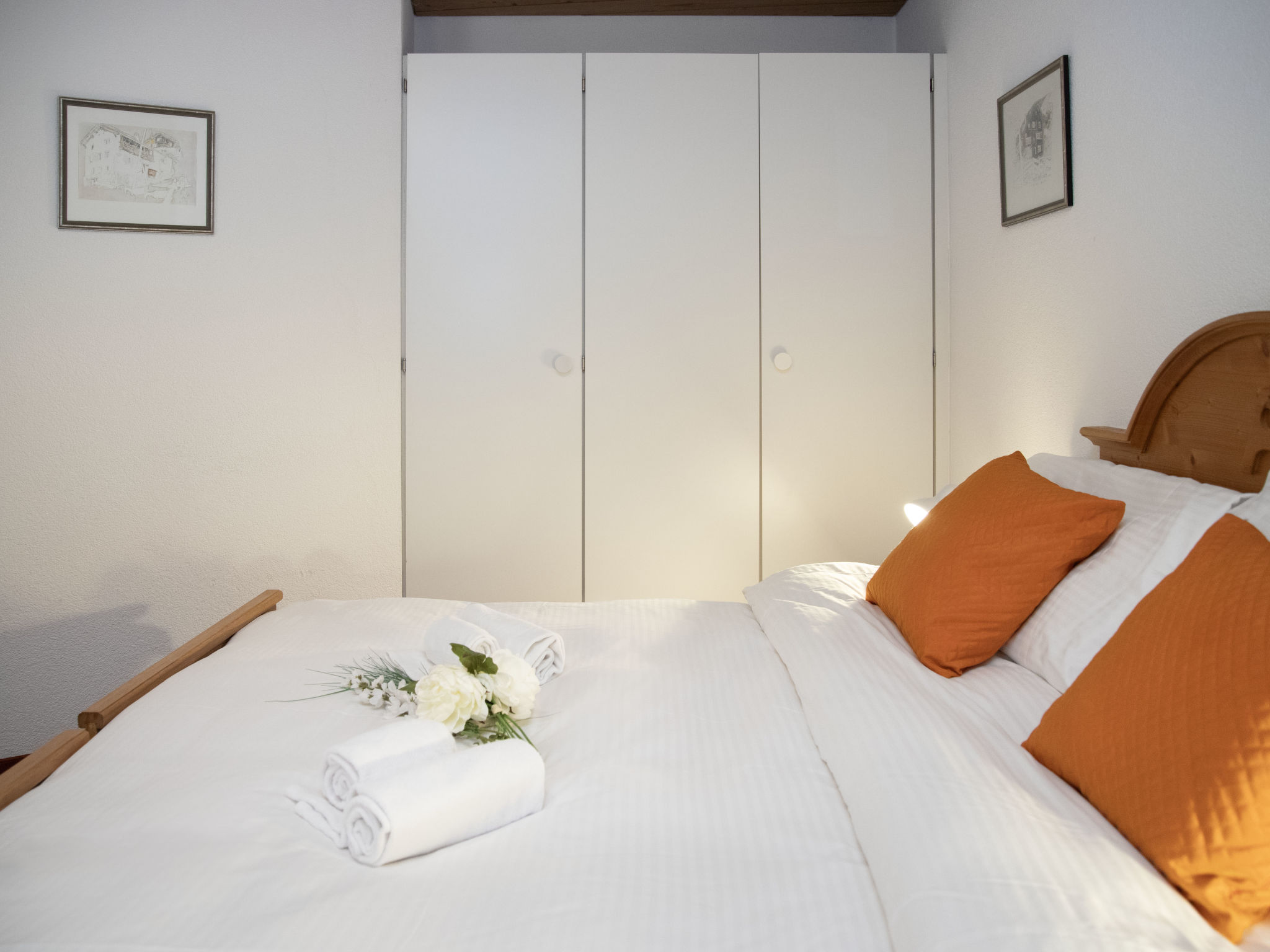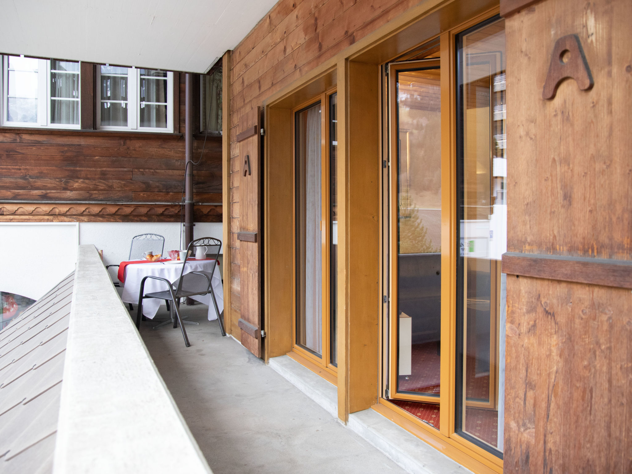 2-Zimmer-Wohnung 48 m2 im 1. Stock, Südlage. Wohn-/Esszimmer mit Kabel-TV (Flachbildschirm). Ausgang zum Balkon, Richtung Süden. 1 Doppelzimmer. Offene Küche (Backofen, 4 Glaskeramikherd Platten, Toaster, Wasserkocher, elektrische Kaffeemaschine). Bad/WC. Balkonmöbel. Schöne Sicht auf die Berge. Zur Verfügung: Haartrockner. Internet (Wireless LAN, gratis). Bitte beachten: Nichtraucher-Unterkunft. Maximal 1 Haustier/Hund erlaubt. Ein Fondue Set (Fleisch oder Käse) sowie ein Raclette Ofen kann an der Rezeption ausgeliehen werden.