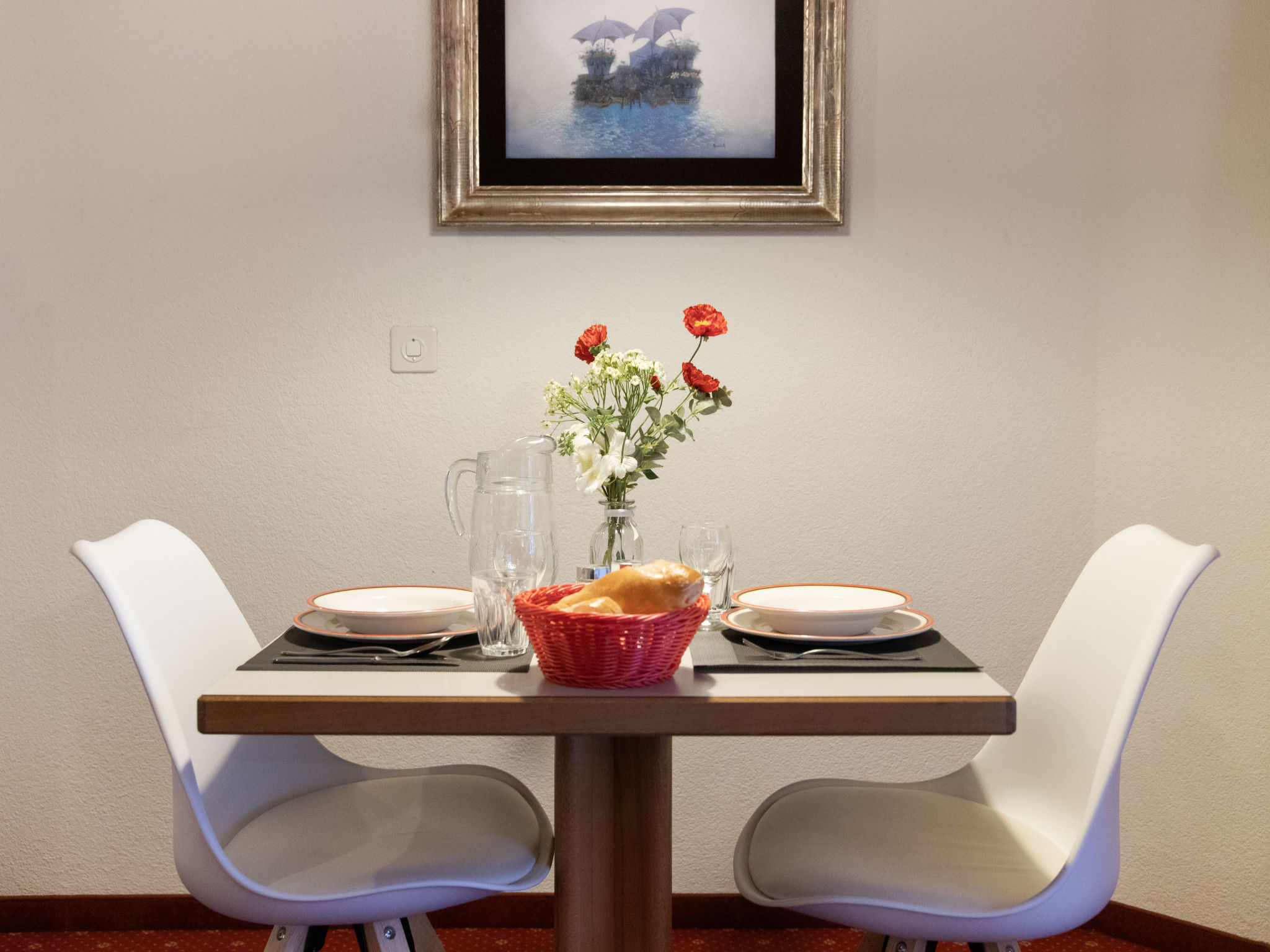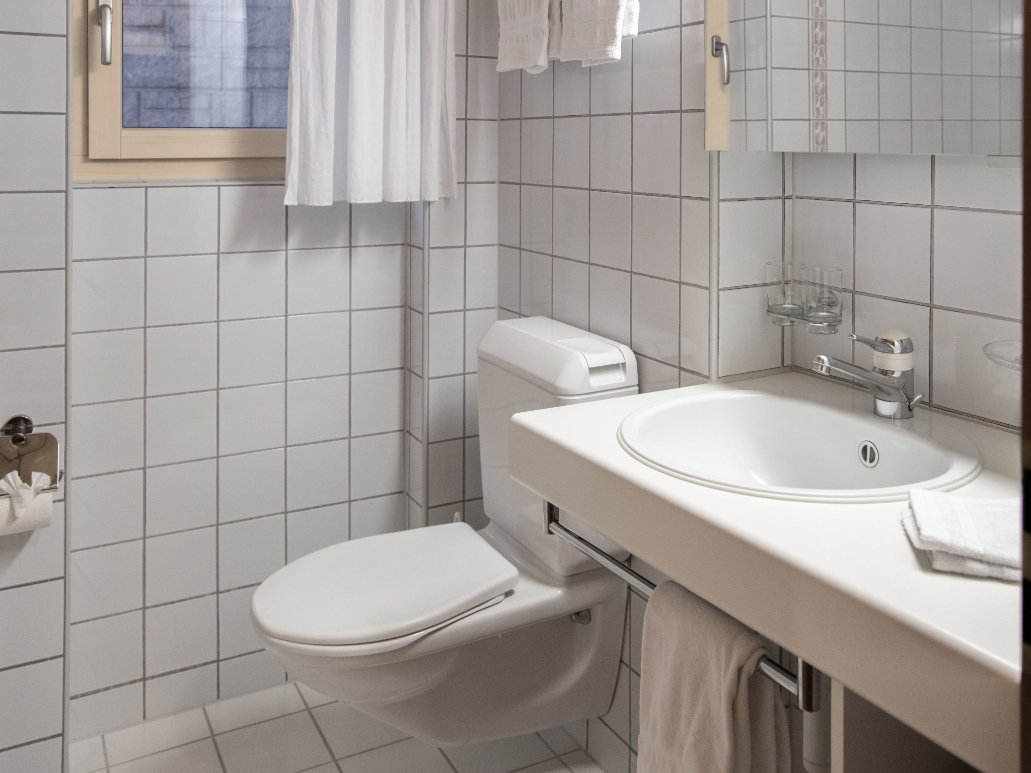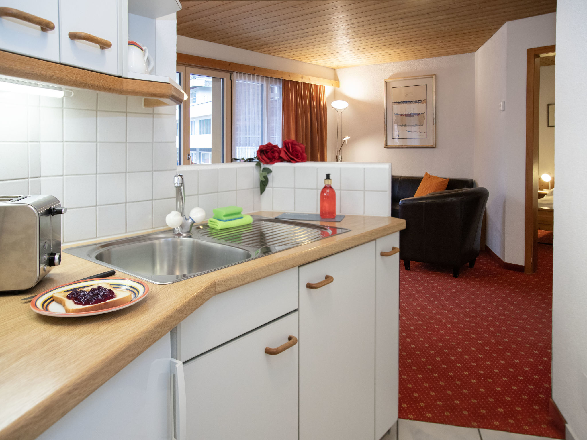 2-Zimmer-Wohnung 48 m2 im 1. Stock, Südlage. Wohn-/Esszimmer mit Kabel-TV (Flachbildschirm). Ausgang zum Balkon, Richtung Süden. 1 Doppelzimmer. Offene Küche (Backofen, 4 Glaskeramikherd Platten, Toaster, Wasserkocher, elektrische Kaffeemaschine). Bad/WC. Balkonmöbel. Schöne Sicht auf die Berge. Zur Verfügung: Haartrockner. Internet (Wireless LAN, gratis). Bitte beachten: Nichtraucher-Unterkunft. Maximal 1 Haustier/Hund erlaubt. Ein Fondue Set (Fleisch oder Käse) sowie ein Raclette Ofen kann an der Rezeption ausgeliehen werden.