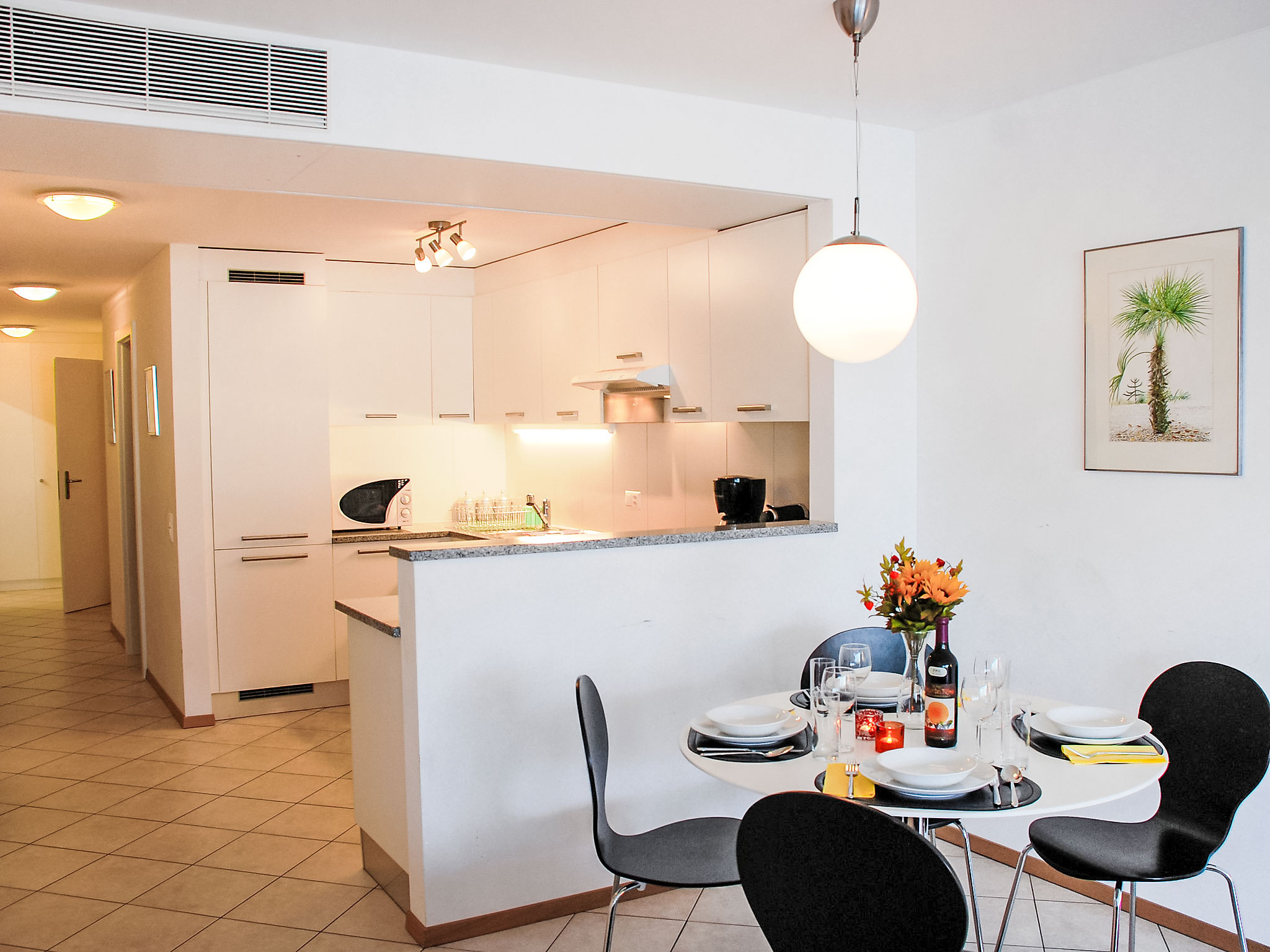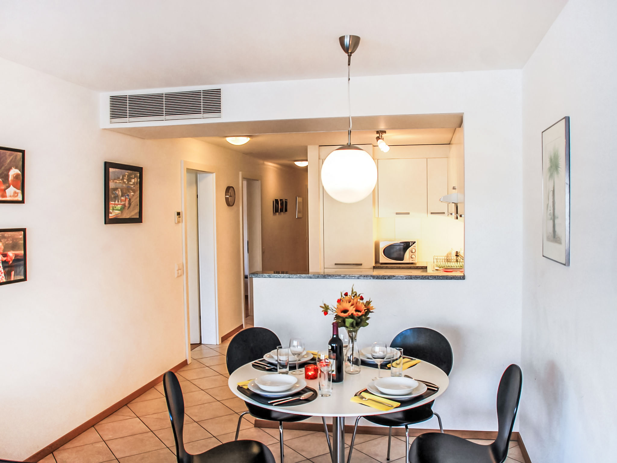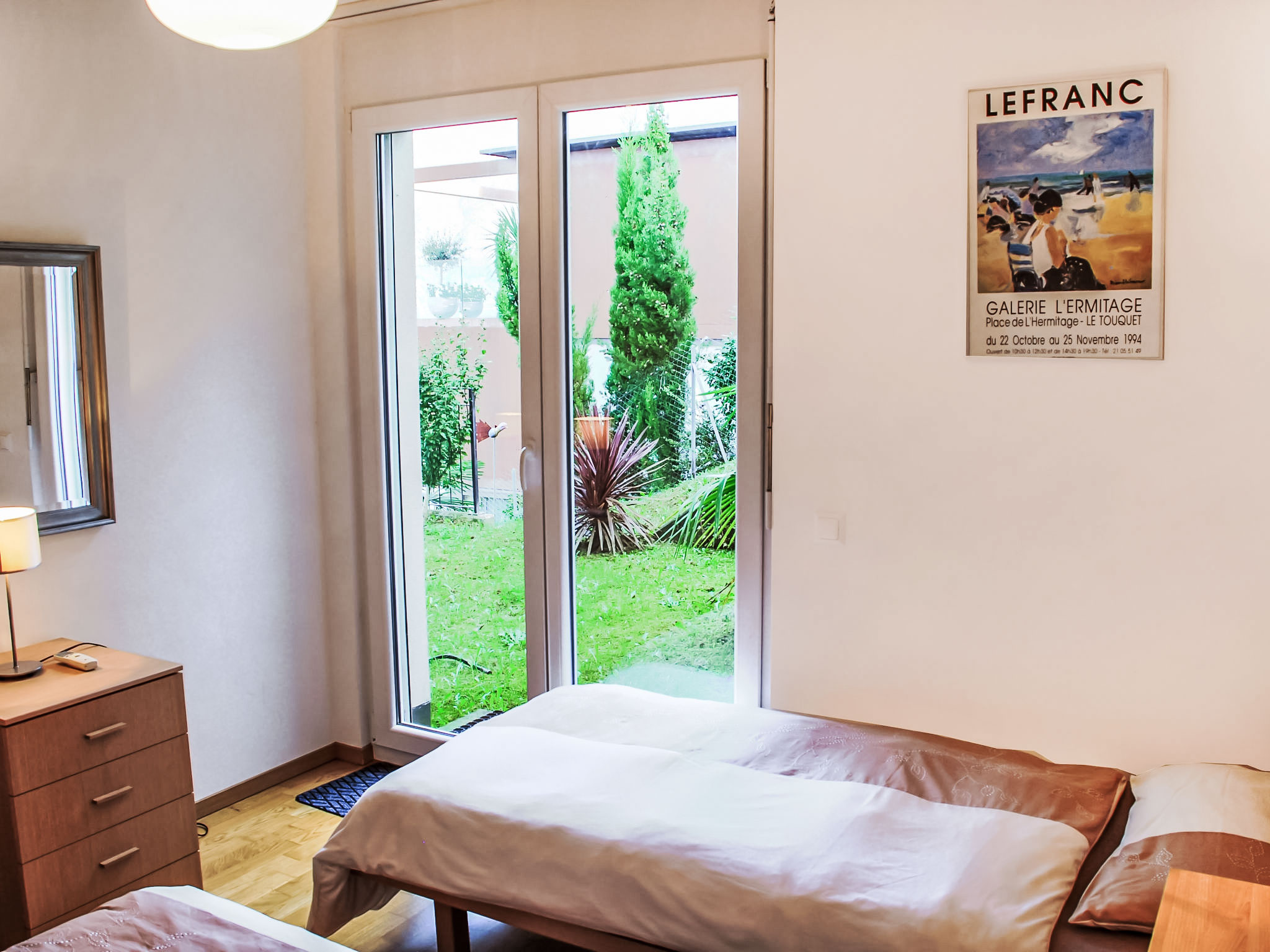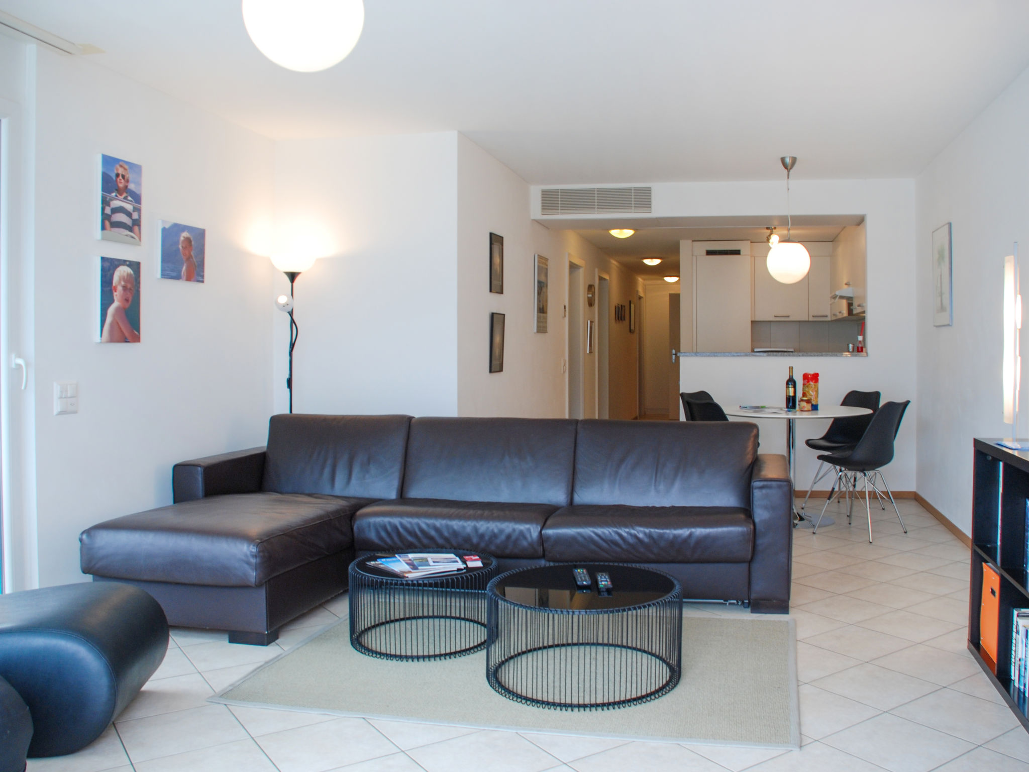 3-Zimmer-Wohnung 100 m2 im 3. Stock. Komfortabel und modern eingerichtet: offenes grosses Wohn-/Esszimmer mit Sat-TV, Flachbildschirm, Stereoanlage und DVD. Ausgang zur Terrasse. 1 Doppelzimmer mit 1 franz. Bett (160 cm), Sat-TV und Flachbildschirm. Ausgang zur Terrasse. 1 Zimmer mit 2 Betten (90 cm, Länge 200 cm), Sat-TV und Flachbildschirm. Ausgang zur Terrasse. Offene Küche (Backofen, Geschirrspüler, 4 Glaskeramikherd Platten, Toaster, Wasserkocher, Mikrowelle, Tiefkühler, elektrische Kaffeemaschine, Kapseln für die Kaffeemaschine (Nespresso) extra) mit Esstisch. Bad/WC, Dusche/WC. Klimaanlage. Terrasse 40 m2, Gartensitzplatz 20 m2. Terrassenmöbel, Liegestühle (2). Herrliche Panoramasicht auf den See, die Berge und die Landschaft. Zur Verfügung: Waschmaschine, Wäschetrockner, Bügeleisen, Haartrockner. Internet (Wireless LAN, gratis). Blu-Ray Player. Garage Nr. 6, Höhe 200 cm, Breite 400 cm. Bitte beachten: Nichtraucher-Unterkunft. Boiler. Handtücher fürs Schwimmbad sind kostenlos.