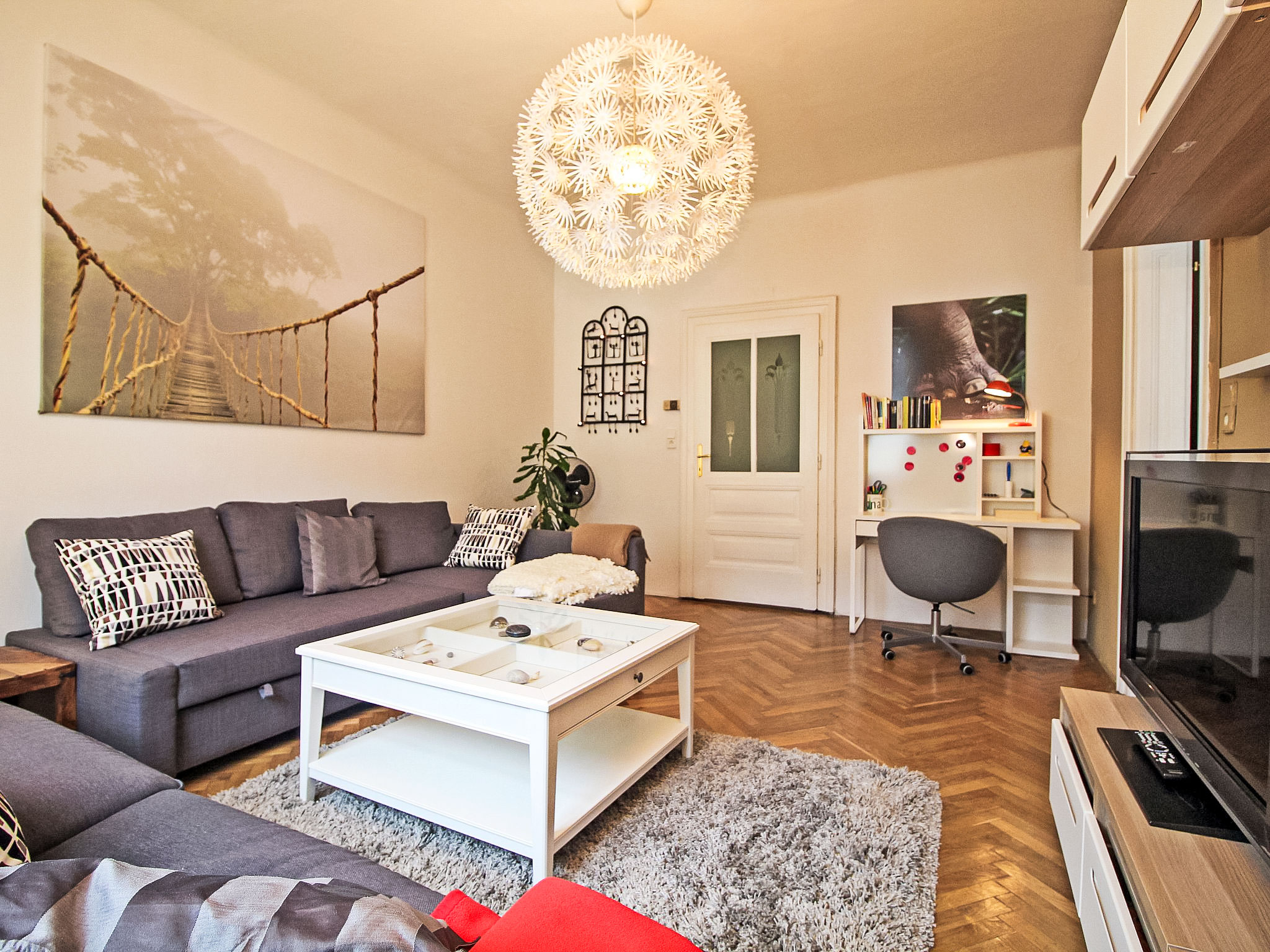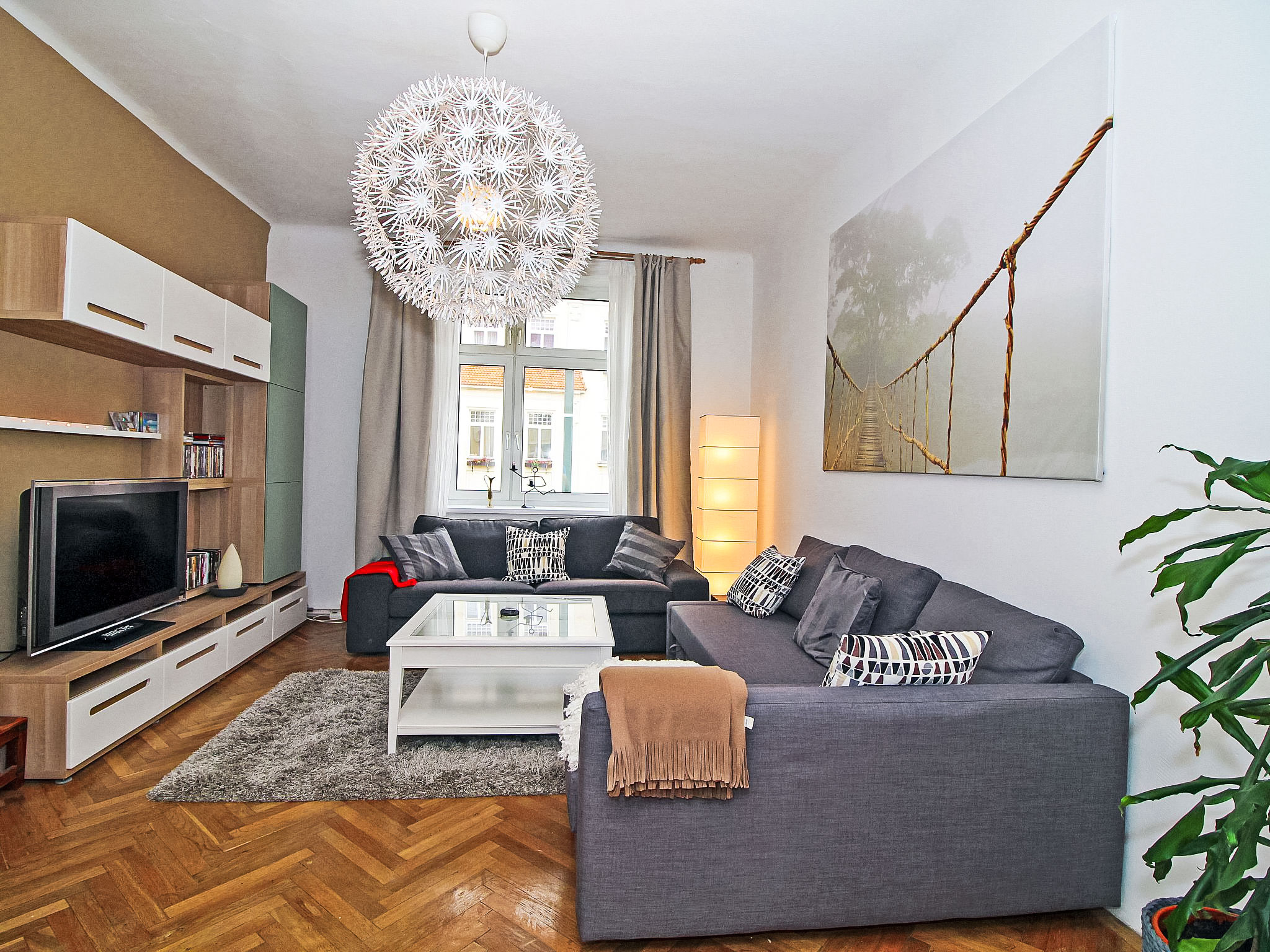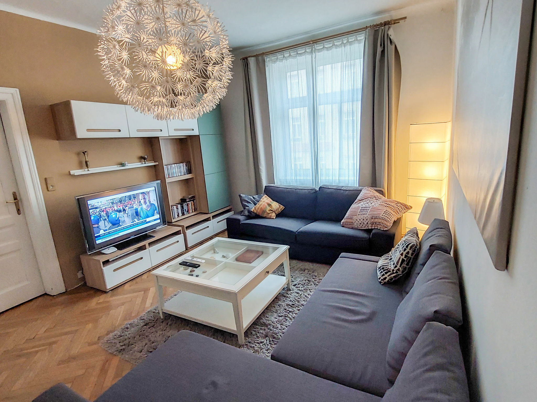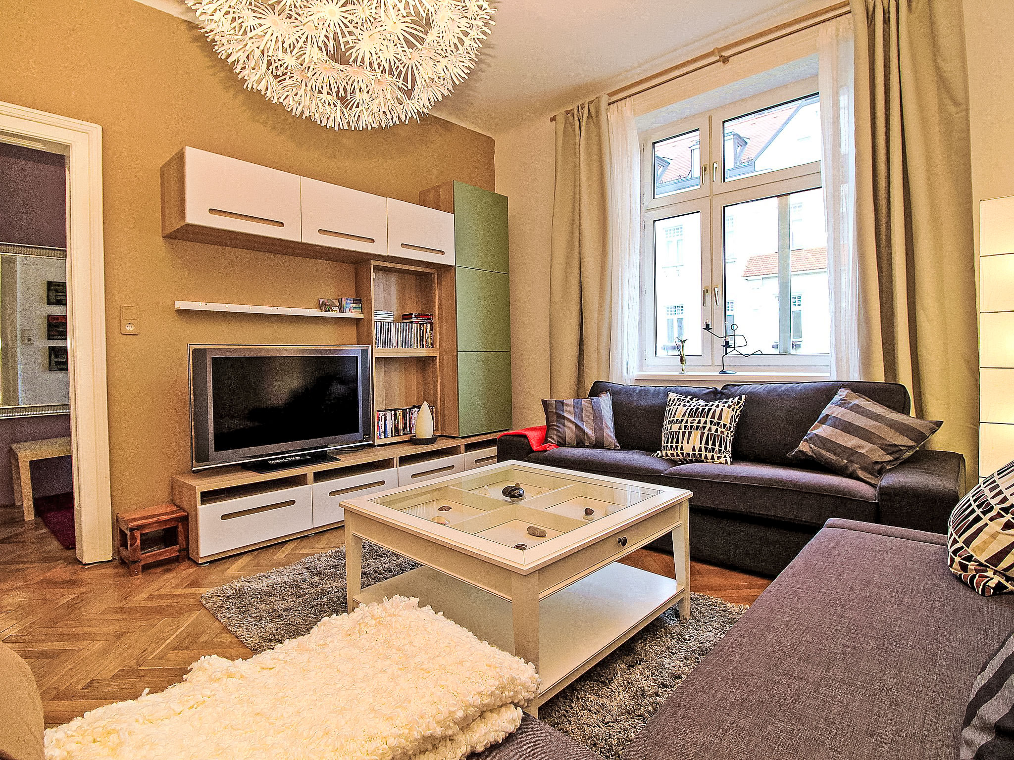 3-Zimmer-Wohnung 78 m2 im 3. Stock. Geräumig und hell, renoviert im Jahre 2017, komfortabel und gemütlich eingerichtet: offener grosser Eingang. Wohnzimmer mit 1 Doppeldiwanbett, Kabel-TV, Internationale TV-Sender, Flachbildschirm, Video, DVD, DVD Sammlung vorhanden und Ventilator. 1 kleines Doppelzimmer. 1 grosses Doppelzimmer mit Flachbildschirm und Ventilator. Grosse, offene Küche (4 Glaskeramikherd Platten, Tiefkühler, elektrische Kaffeemaschine) mit Esstisch. Bad/WC. Parkettböden. Seitliche Sicht auf Park. Zur Verfügung: Waschmaschine, Haartrockner. Internet (Wireless LAN, gratis). Bitte beachten: geeignet für Familien. Nichtraucher-Unterkunft.