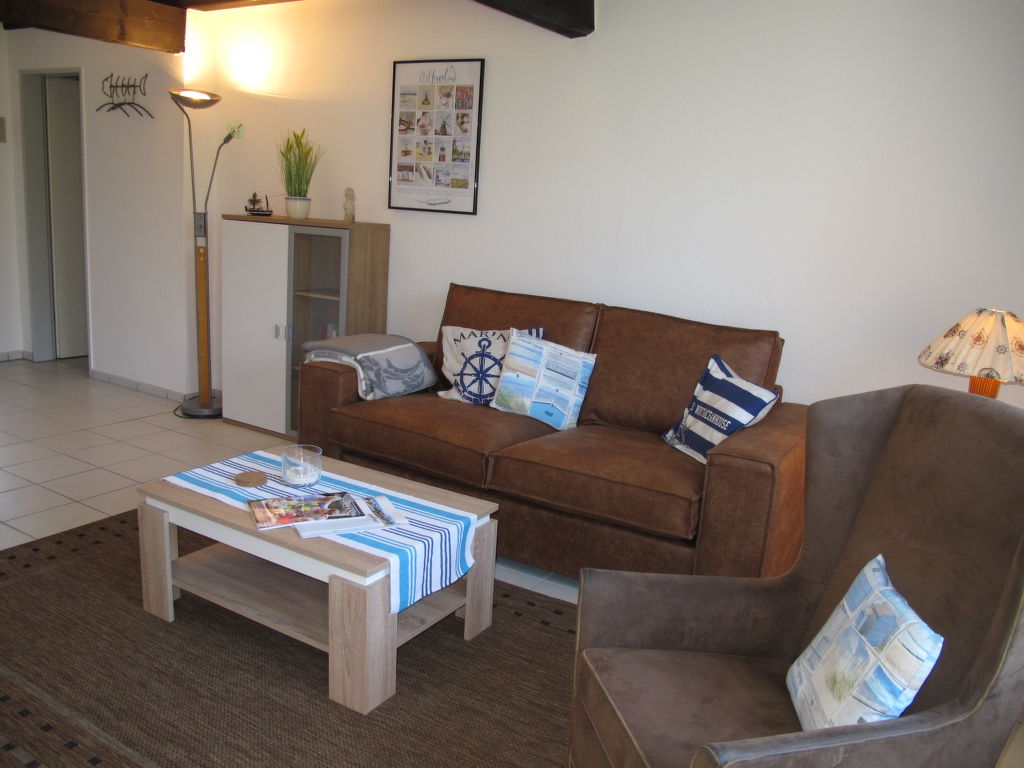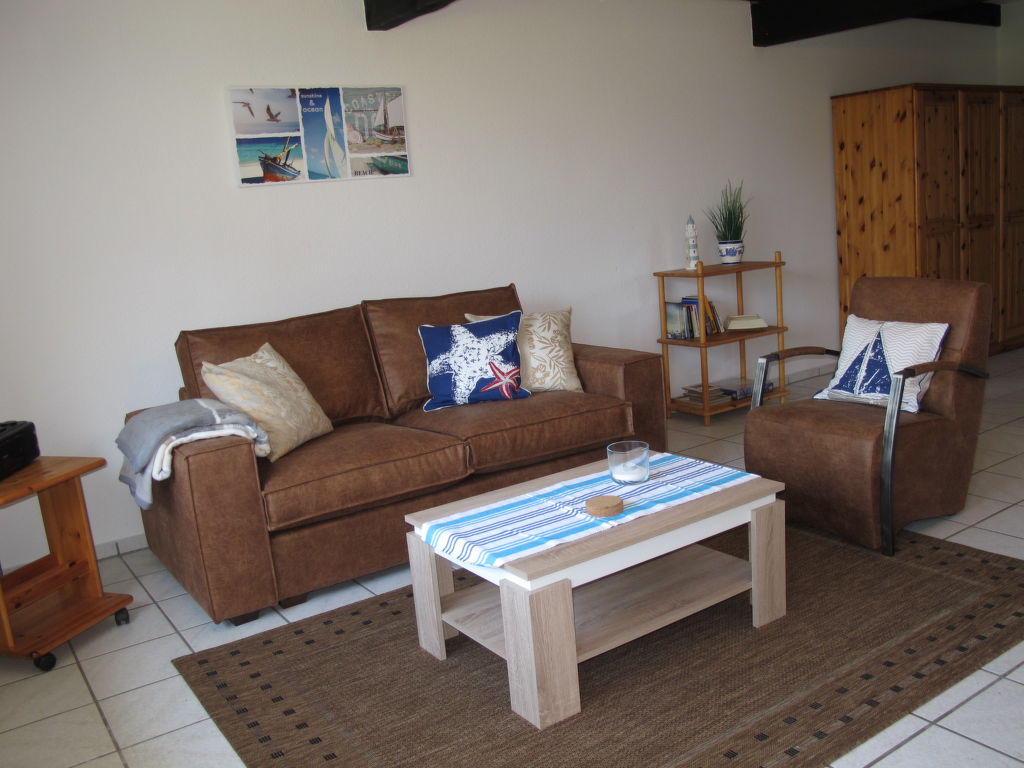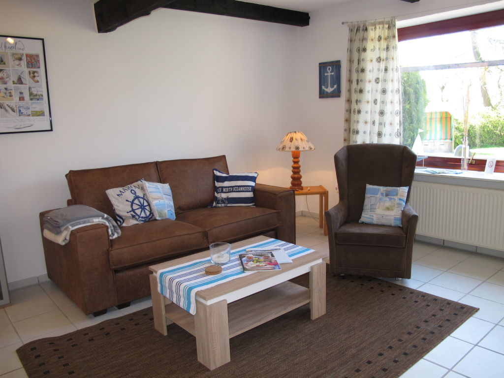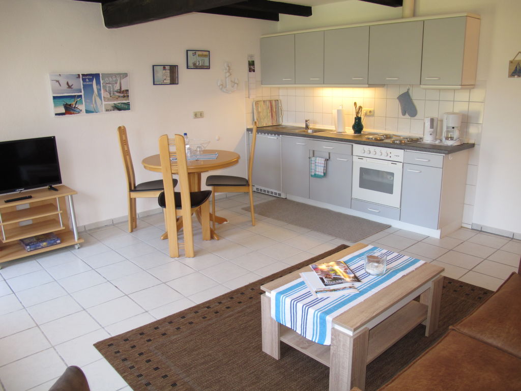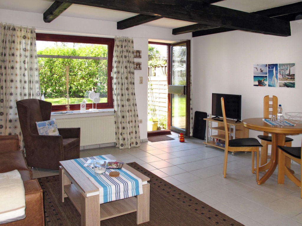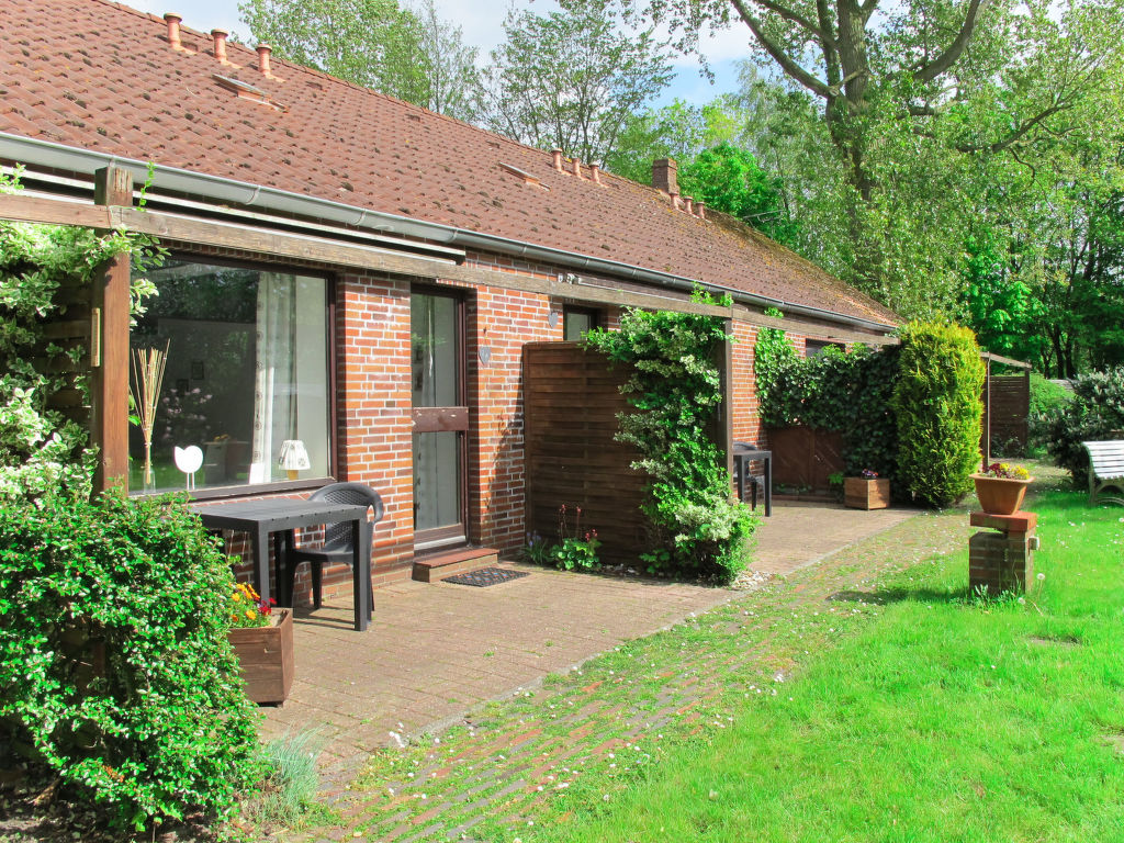 2-Zimmer-Reihenhaus 47 m2. Gemütlich eingerichtet: Wohn-/Esszimmer mit Sat-TV. Ausgang zur Terrasse. 1 Zimmer mit 1 Doppelbett. Offene Küche (4 Kochplatten, Backofen, Toaster, Wasserkocher, elektrische Kaffeemaschine). Dusche/WC. Terrassenmöbel. Bitte beachten: Nichtraucher-Haus. 1 Haustier/Hund erlaubt.