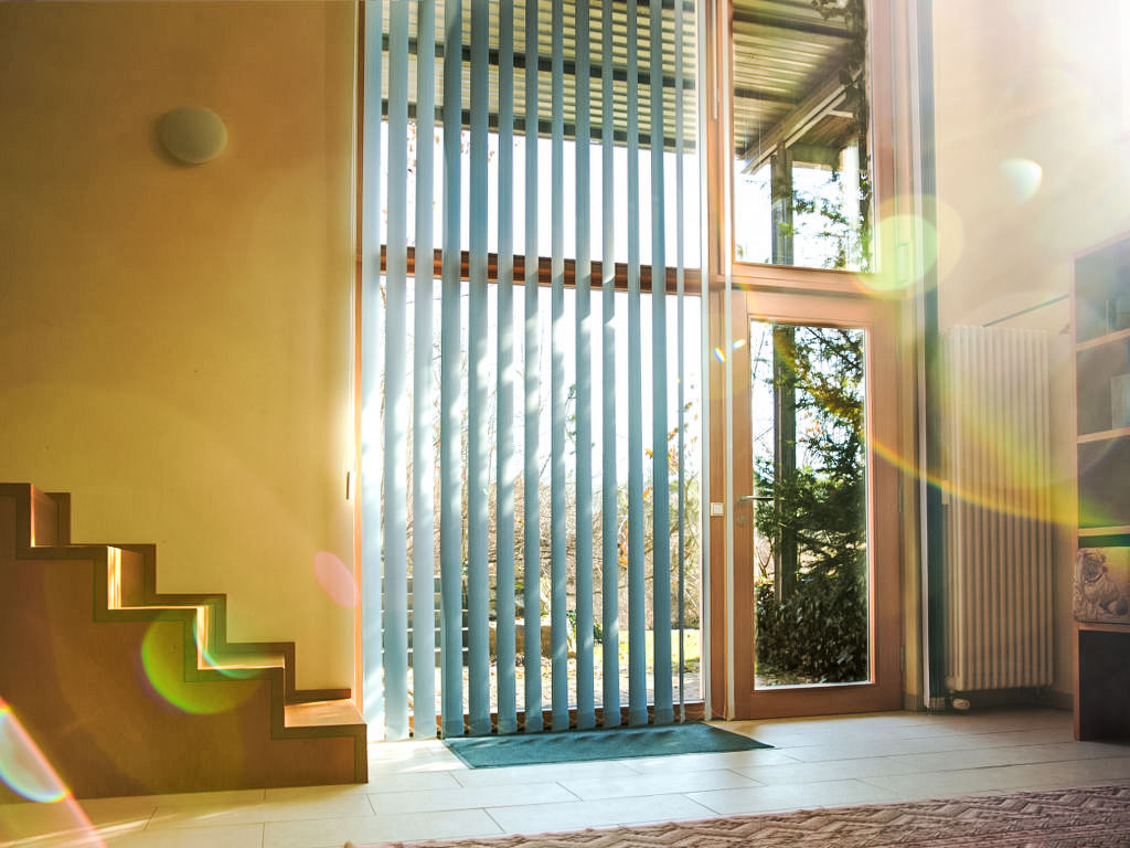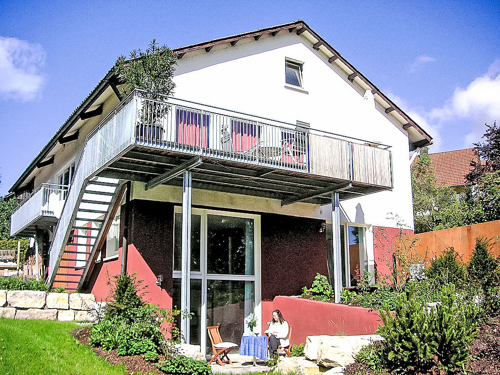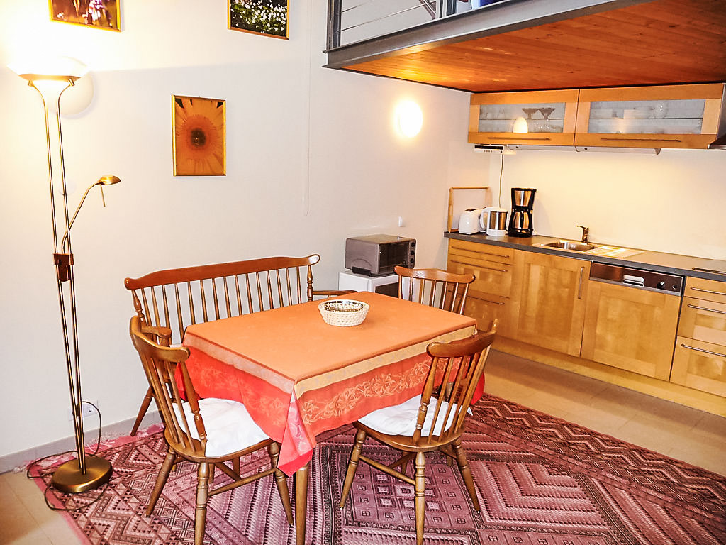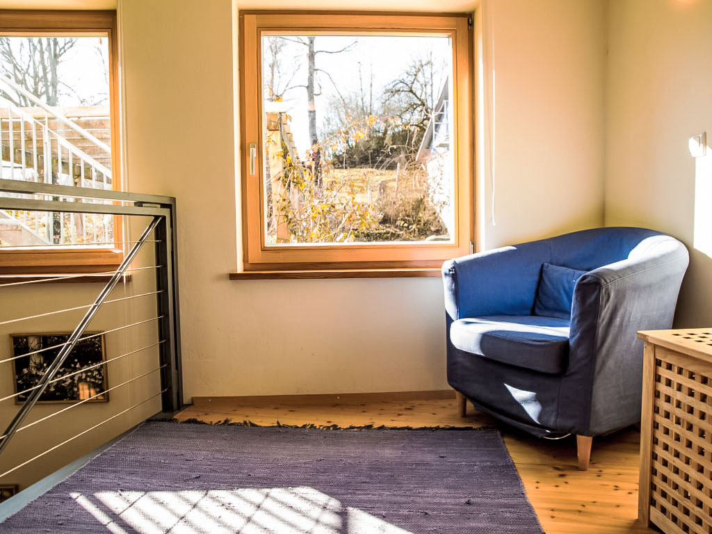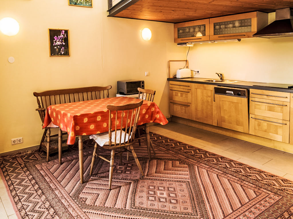 1-Zimmer-Einliegerwohnung 62 m2 auf 2 Stockwerken, im Erdgeschoss. Modern und geschmackvoll eingerichtet: Wohn-/Esszimmer mit Sat-TV (Flachbildschirm), Video, Radio und DVD. Ausgang zum Garten, zur Terrasse. Kochnische (Mini-Backofen, Geschirrspüler, 4 Glaskeramikherd Platten, Mikrowelle, Tiefkühler, elektrische Kaffeemaschine). Dusche, sep. WC. Bodenheizung. Obergeschoss: offene Galerie mit 1 Doppelbett. Terrasse. Terrassenmöbel. Zur Verfügung: Sauna (extra). Internet (Wireless LAN, gratis). Bitte beachten: Nichtraucher-Unterkunft. Maximal 1 Haustier/Hund erlaubt. Eigener Eingang. Grosszügige Dusche mit Ausgang auf blickgeschützten Freisitz. Grosser Wildrosengarten.