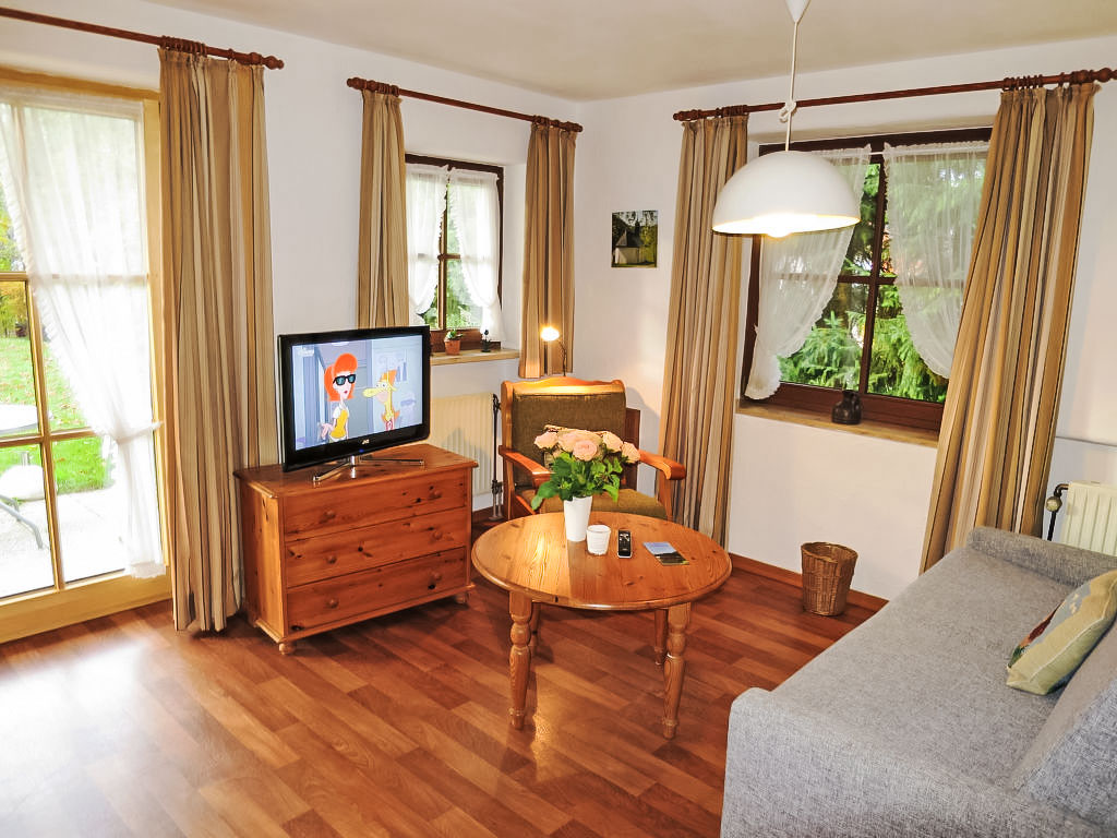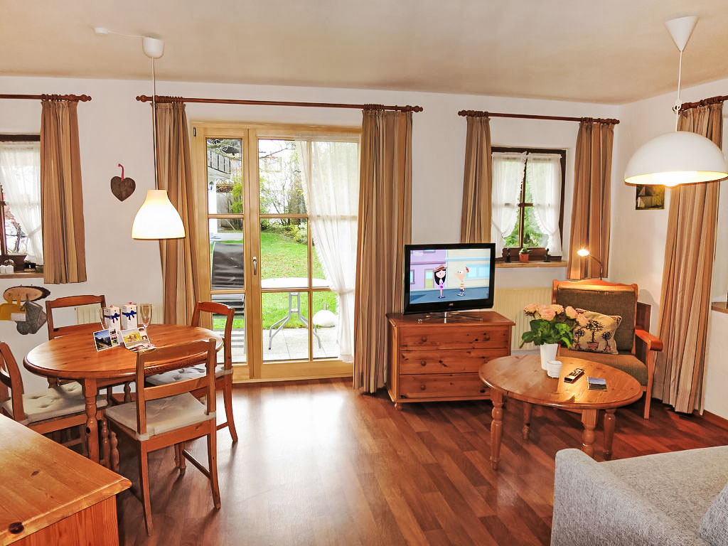 Mehrfamilienhaus "Am Sonneneck". Im Ort, 800 m vom Zentrum von Ruhpolding, in einem Wohnquartier, 150 m vom Fluss. Im Hause: Sauna, Ruheraum, Skiraum, Zentralheizung, Waschmaschine (zur Mitbenutzung). Parkplatz beim Haus. Supermarkt 1 km, Bar, Bäckerei, Café 800 m, Bahnstation "Ruhpolding", Hallenbad 800 m. Golfplatz (18 Loch) 2.5 km, Skilift 2 km, Langlaufloipe 400 m. Nahe gelegene Sehenswürdigkeiten: Chiemgau Coaster (Rodelbahn) 1.7 km, Freizeitpark Ruhpolding 5 km, Salzburg 50 km, München 110 km. Bekannte Skigebiete sind gut erreichbar: Reit im Winkl Steinplatte 18 km. Bekannte Seen in der Umgebung sind gut erreichbar: Chiemsee 23 km, Königssee 44 km. Fluss "Weisse Traun" 150 m. Sauna, Ruheraum und ein kleiner Kinderspielbereich stehen zur kostenlosen Mitbenutzung zur Verfügung.