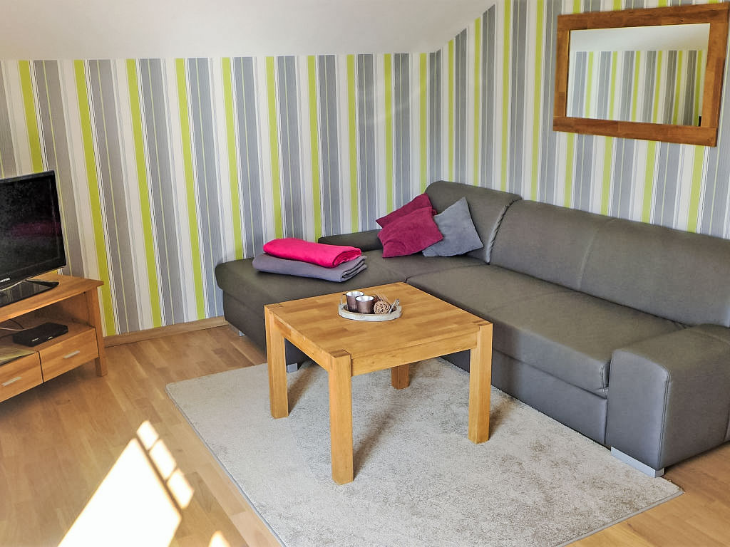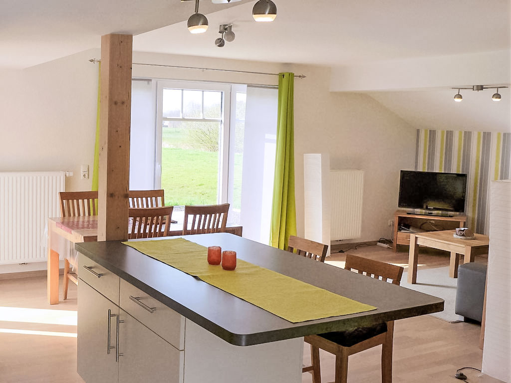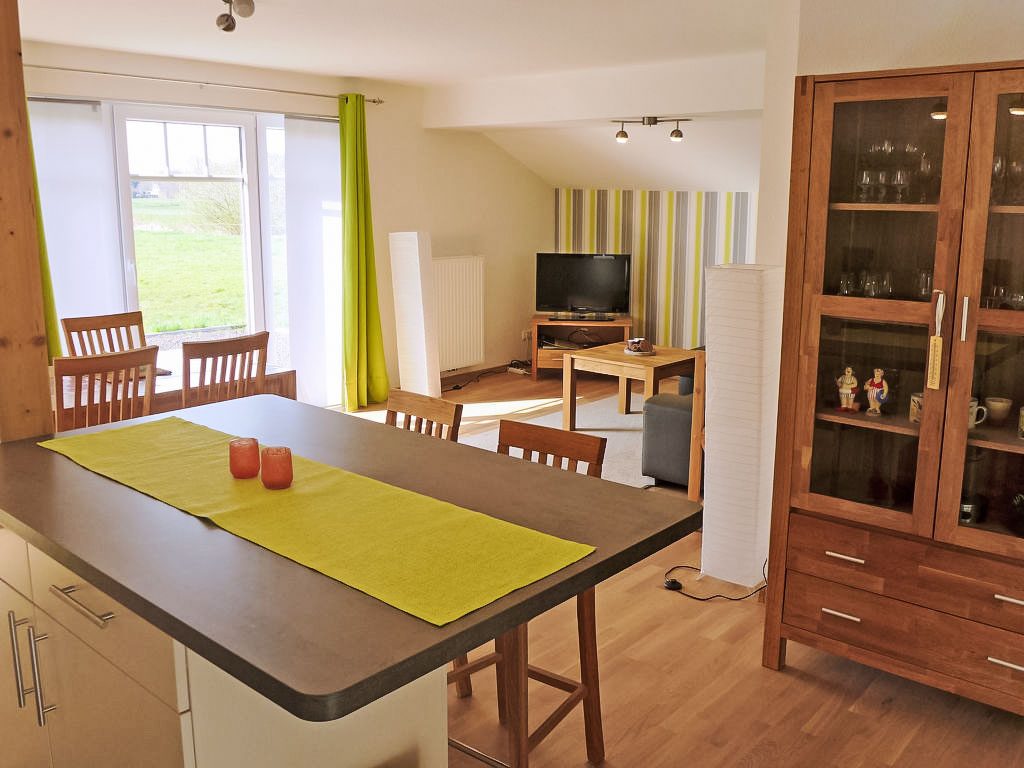 2-Zimmer-Wohnung 45 m2, im Erdgeschoss. Modern und geschmackvoll eingerichtet: Wohn-/Esszimmer 30 m2 mit Sat-TV (Flachbildschirm), Radio und CD. Ausgang zur Terrasse. 1 Zimmer 9 m2 mit 1 Doppelbett (2 x 90 cm, Länge 200 cm). Offene Küche (Backofen, 4 Glaskeramikherd Platten, elektrische Kaffeemaschine). Dusche/WC. Kleine Terrasse. Terrassenmöbel. Sicht auf die Landschaft. Zur Verfügung: Haartrockner. Internet (Wireless LAN, gratis). Bitte beachten: Nichtraucher-Unterkunft.