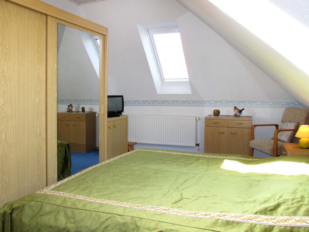 4-Zimmer-Wohnung 140 m2 auf 2 Stockwerken. Gemütlich eingerichtet: Obergeschoss: abgeschrägtes Wohnzimmer mit Kabel-TV und Radio. 2 abgeschrägte Zimmer, jedes Zimmer mit 1 Doppelbett. Offene Küche (4 Kochplatten, Backofen, Toaster, Wasserkocher, Mikrowelle, elektrische Kaffeemaschine). Bad/WC. Dachgeschoss: 1 abgeschrägtes Zimmer mit 2 Betten. Dusche/WC. Zur Verfügung: Kinderhochstuhl, Babybett. Internet (Wireless LAN, gratis). Bitte beachten: Nichtraucher-Unterkunft.