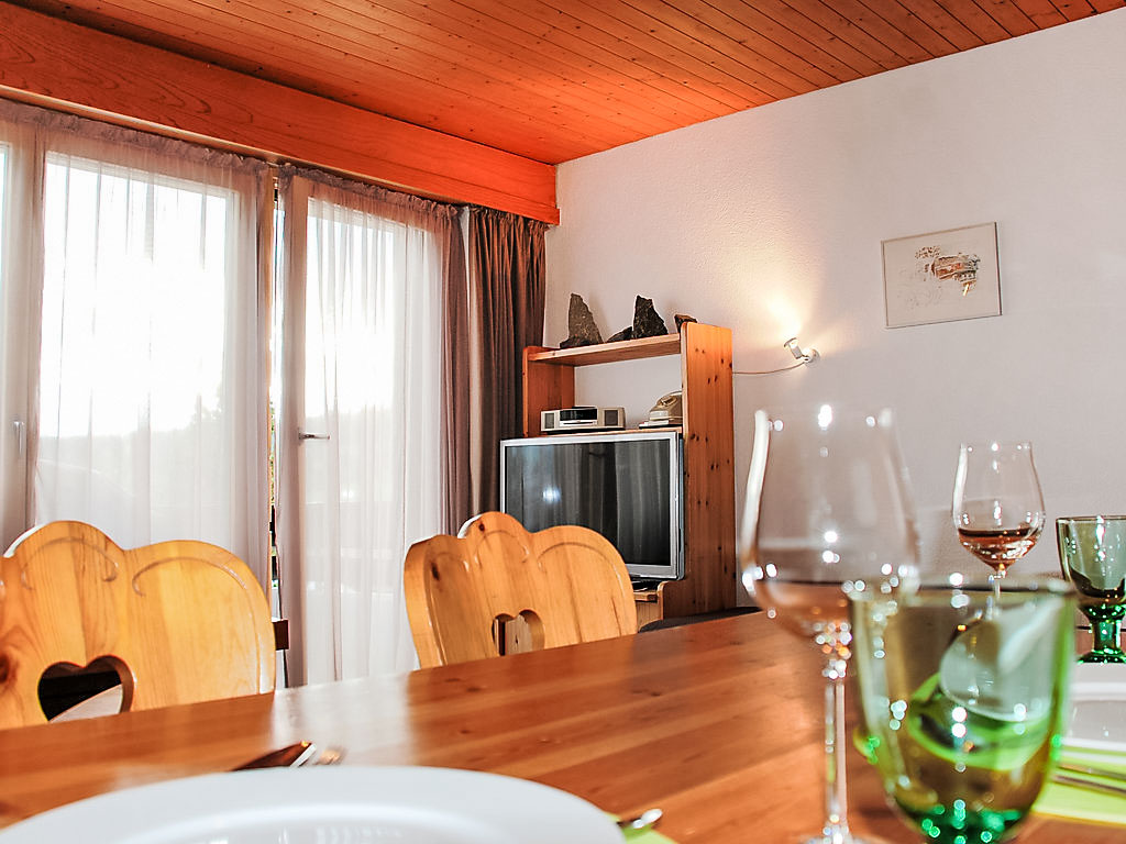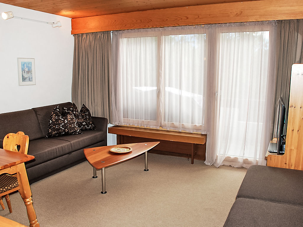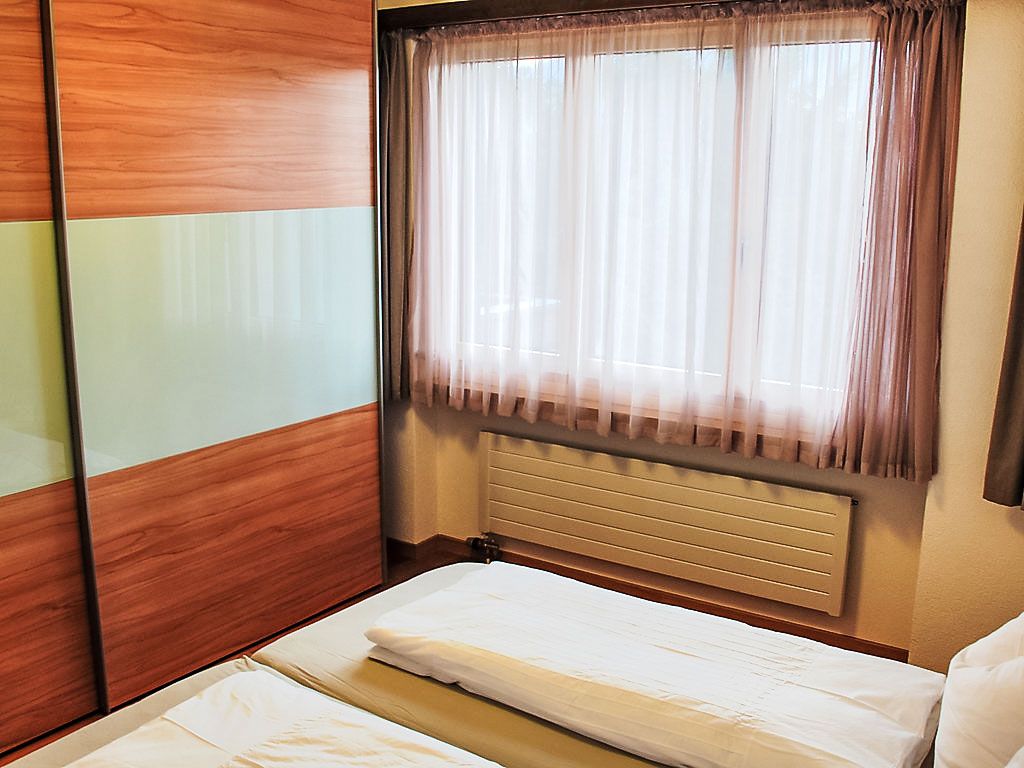 2-Zimmer-Wohnung 40 m2 im 2. Stock. Objekt geeignet für 2 Erwachsene + 2 Kinder. Zweckmässig und gemütlich eingerichtet: Wohn-/Esszimmer mit 1 Doppeldiwanbett und Kabel-TV (Flachbildschirm), Radio. Ausgang zum Balkon. 1 Doppelzimmer mit 1 Doppelbett (2 x 90 cm). Kleine Küche (Backofen, Geschirrspüler, 4 Glaskeramikherd Platten, elektrische Kaffeemaschine). Bad/WC. Balkon, Südlage. Sicht auf die Berge und die Landschaft. Zur Verfügung: Internet (Wireless LAN, gratis). Garage (1 Auto) beim Haus. Bitte beachten: Nichtraucher-Unterkunft.