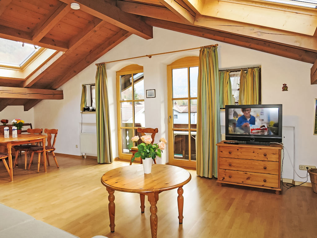 Mehrfamilienhaus "Am Sonneneck". Im Ort, 800 m vom Zentrum von Ruhpolding, in einem Wohnquartier, 150 m vom Fluss. Im Hause: Sauna, Ruheraum, Skiraum, Zentralheizung, Waschmaschine (zur Mitbenutzung). Parkplatz beim Haus. Supermarkt 1 km, Bar, Bäckerei, Café 800 m, Bahnstation "Ruhpolding", Hallenbad 800 m. Golfplatz (18 Loch) 2.5 km, Skilift 2 km, Langlaufloipe 400 m. Nahe gelegene Sehenswürdigkeiten: Chiemgau Coaster (Rodelbahn) 1.7 km, Freizeitpark Ruhpolding 5 km, Salzburg 50 km, München 110 km. Bekannte Skigebiete sind gut erreichbar: Reit im Winkl Steinplatte 18 km. Bekannte Seen in der Umgebung sind gut erreichbar: Chiemsee 23 km, Königssee 44 km. Fluss "Weisse Traun" 150 m. Sauna, Ruheraum und ein kleiner Kinderspielbereich stehen zur kostenlosen Mitbenutzung zur Verfügung.