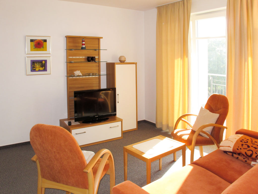 Residenz "Bellevue". 800 m vom Zentrum von Zinnowitz, am Ortsrand, 10 km vom Zentrum von Wolgast, 38 km vom Zentrum von Greifswald, in einem Wohnquartier, 800 m vom Meer. Treppenweg (7 Stufen) bis zum Haus. Supermarkt, Sandstrand 800 m, Hallenbad 2 km.