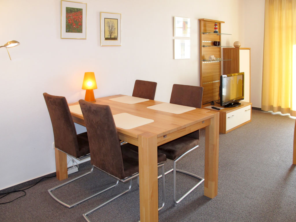 2-Zimmer-Wohnung 56 m2 im 1. Stock. Modern und gemütlich eingerichtet: Wohn-/Schlafzimmer mit 1 Doppeldiwanbett, Esstisch, Sat-TV und Radio. Ausgang zum Balkon. 1 Zimmer mit 1 franz. Bett (160 cm, Länge 200 cm). Offene Küche (4 Kochplatten, Backofen, Geschirrspüler, Toaster, Wasserkocher, elektrische Kaffeemaschine) mit Essecke. Bad/WC. Ölheizung. Teppichboden. Balkon. Balkonmöbel. Zur Verfügung: Kinderhochstuhl, Babybett. Internet (Wireless LAN, gratis). Garage (1 Auto). Bitte beachten: Nichtraucher-Unterkunft. Rauchmelder.