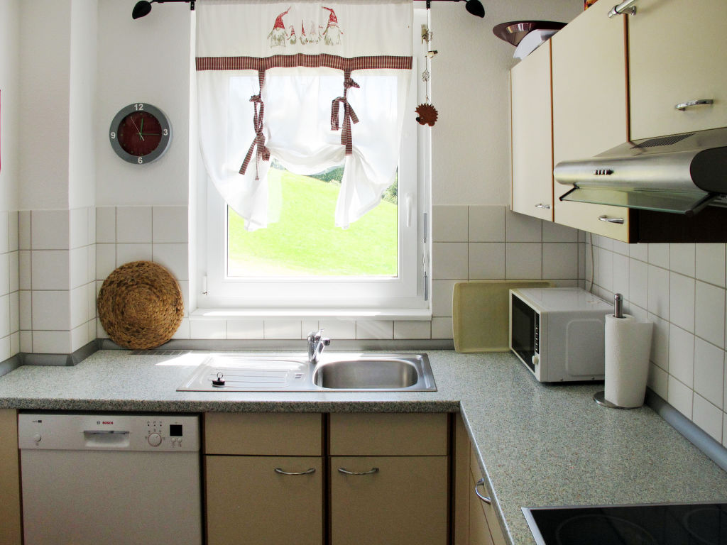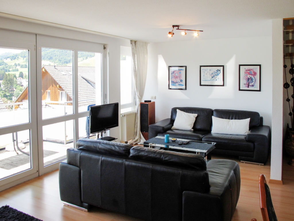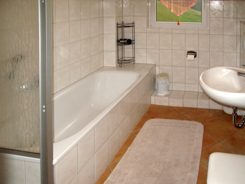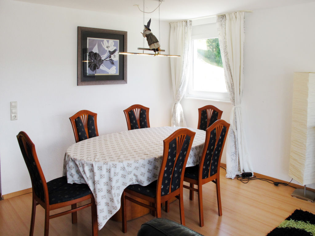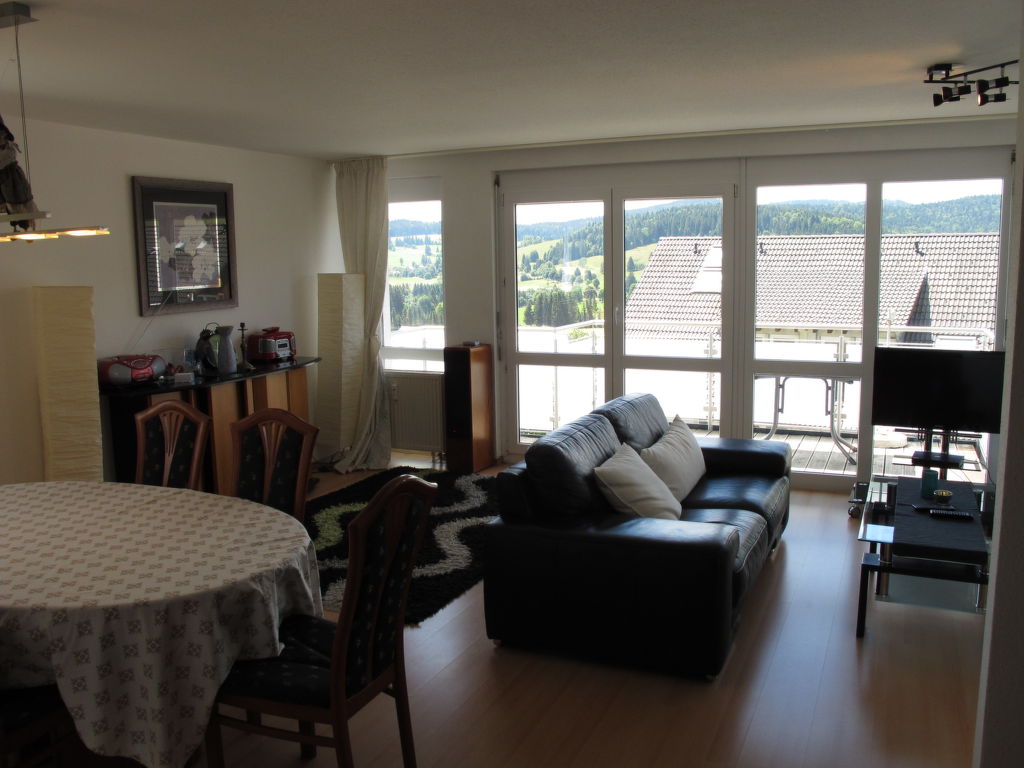 "Schwarzwaldblick", 5-Zimmer-Wohnung 120 m2 auf 2 Stockwerken. Objekt geeignet für 8 Erwachsene. Zweckmässig eingerichtet: Wohn-/Esszimmer mit Essecke. Ausgang zum Balkon. Küche (Backofen, Geschirrspüler, 4 Glaskeramikherd Platten, Toaster, Wasserkocher, Mikrowelle, elektrische Kaffeemaschine). Sep. WC. Obergeschoss: 2 Zimmer, jedes Zimmer mit 1 Doppelbett (1 x 160 cm, Länge 200 cm). 1 Zimmer mit 1 x 2 Etagenbetten (100 cm, Länge 200 cm). Bad/Dusche/WC. Heizung. Balkon. Balkonmöbel. Zur Verfügung: Kinderhochstuhl, Babybett. Internet (Wireless LAN). Parkplatz (überdacht, 1 Auto). Bitte beachten: Nichtraucher-Haus. Rauchmelder.