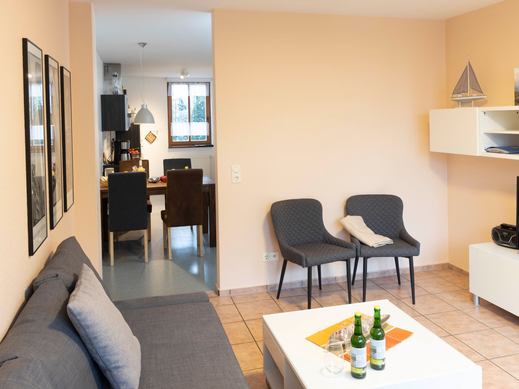 "Strandvilla (LUB116)", 3-Zimmer-Wohnung 75 m2 im 1. Stock. Modern eingerichtet: Wohnzimmer mit Kabel-TV, Radio und CD. Ausgang zur Terrasse. Offene Küche (Backofen, Geschirrspüler, 4 Glaskeramikherd Platten, Toaster, Wasserkocher, Mikrowelle, Tiefkühler, elektrische Kaffeemaschine) mit Esstisch. Obergeschoss: 1 Zimmer mit 1 Doppelbett und Kabel-TV. Ausgang zum Balkon. 1 Zimmer mit 2 Betten. Dusche/WC. Balkon, Terrasse teilweise überdacht, kleiner Garten. Terrassenmöbel, Abstellkammer. Zur Verfügung: Waschmaschine, Kinderhochstuhl, Babybett. Internet (Wireless LAN, gratis). Parkplatz. Bitte beachten: Nichtraucher-Haus. 1 Haustier/Hund erlaubt. Rauchmelder.